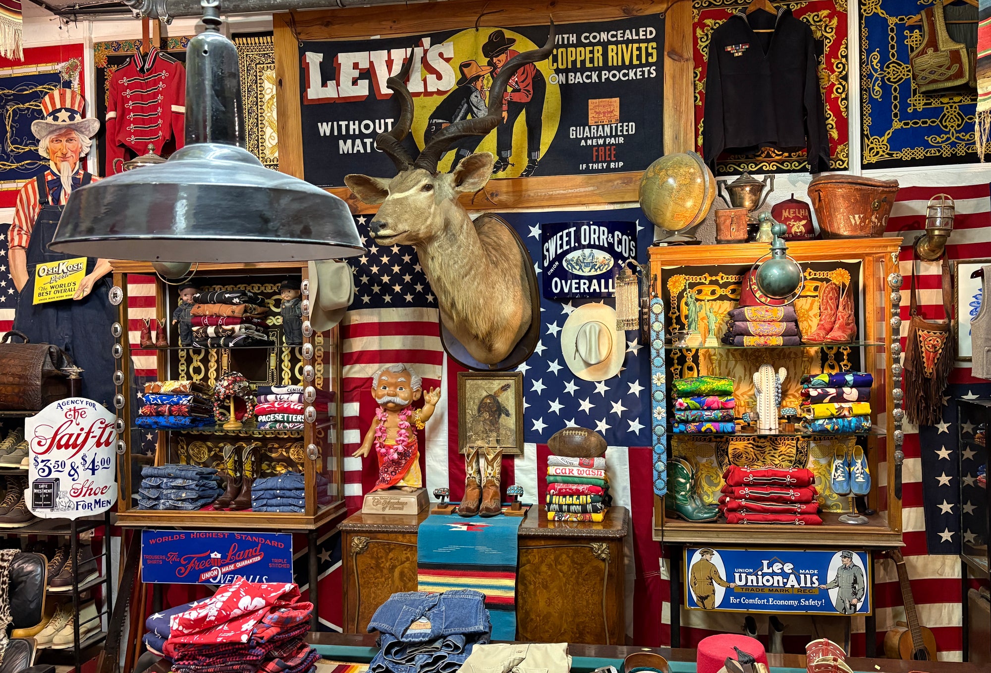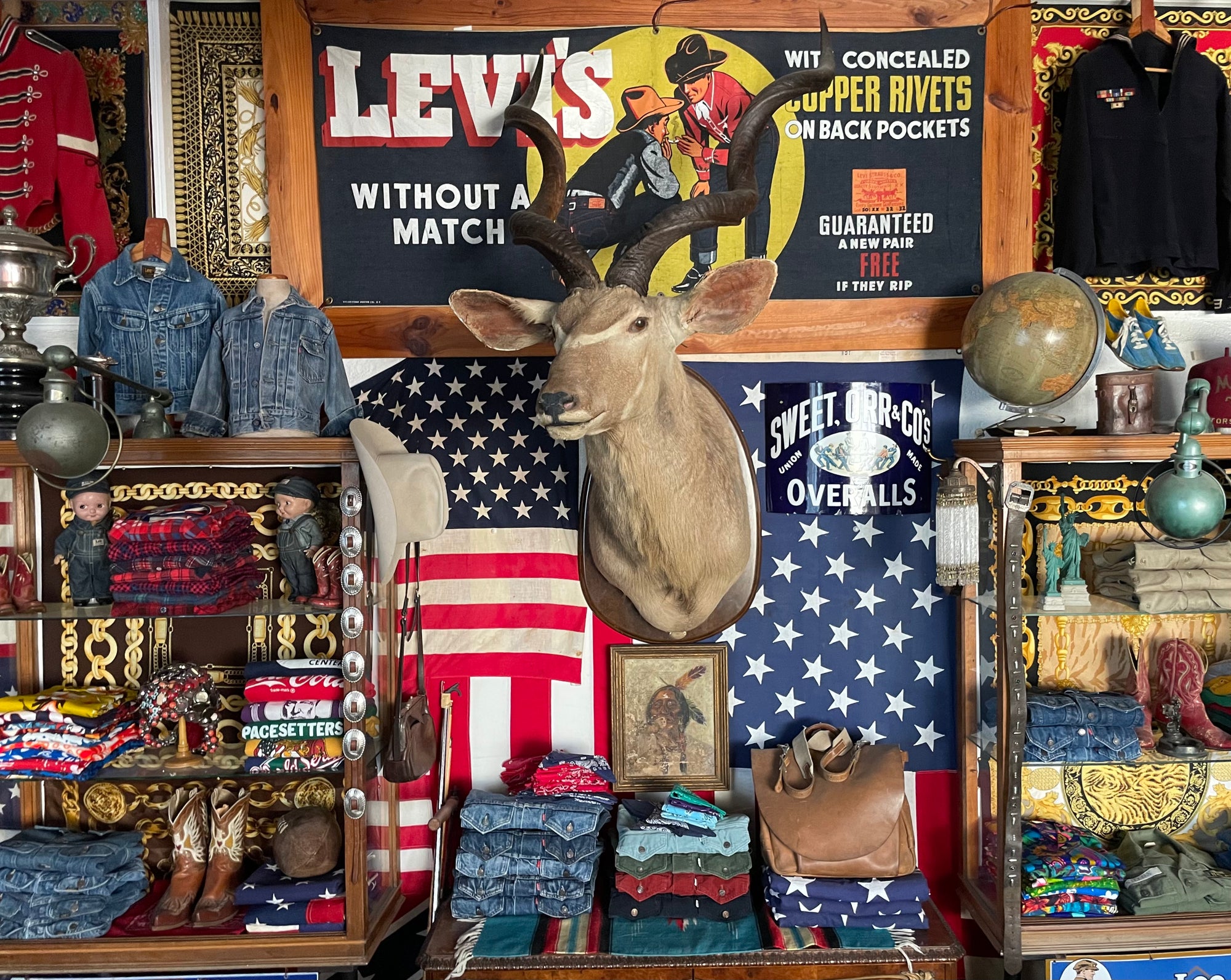 Vintage Levi’s 501 Made in USA jeans, Levi’s denim jackets, Lee vintage denim, and Wrangler vintage pieces form the core of the denim selection. Military staples include original Vietnam War era M65 Field Jackets, OG-107 fatigue shirts, Jungle Jackets, and authentic US military garments.