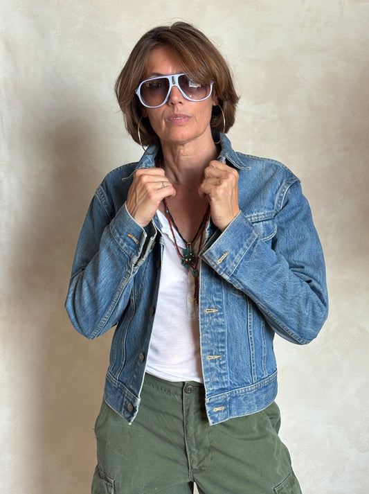 Vintage 80s Lee Denim Jacket | 2-Pocket Classic Blue Jean | Made in USA | Size 36US / 46EU | AJ357 Studio