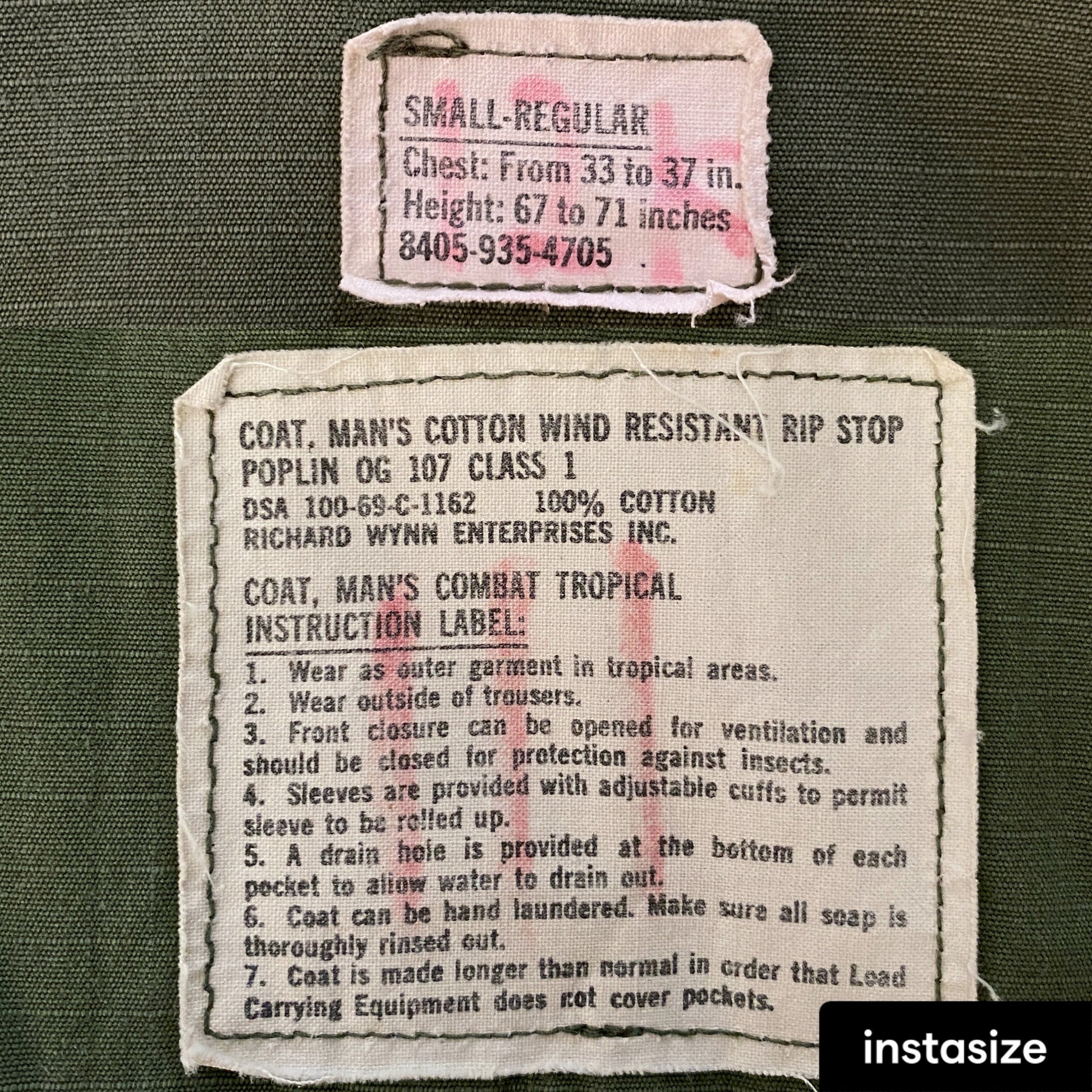 Small Reg. Authentic 1969 US Army Vintage Vietnam jungle jacket.