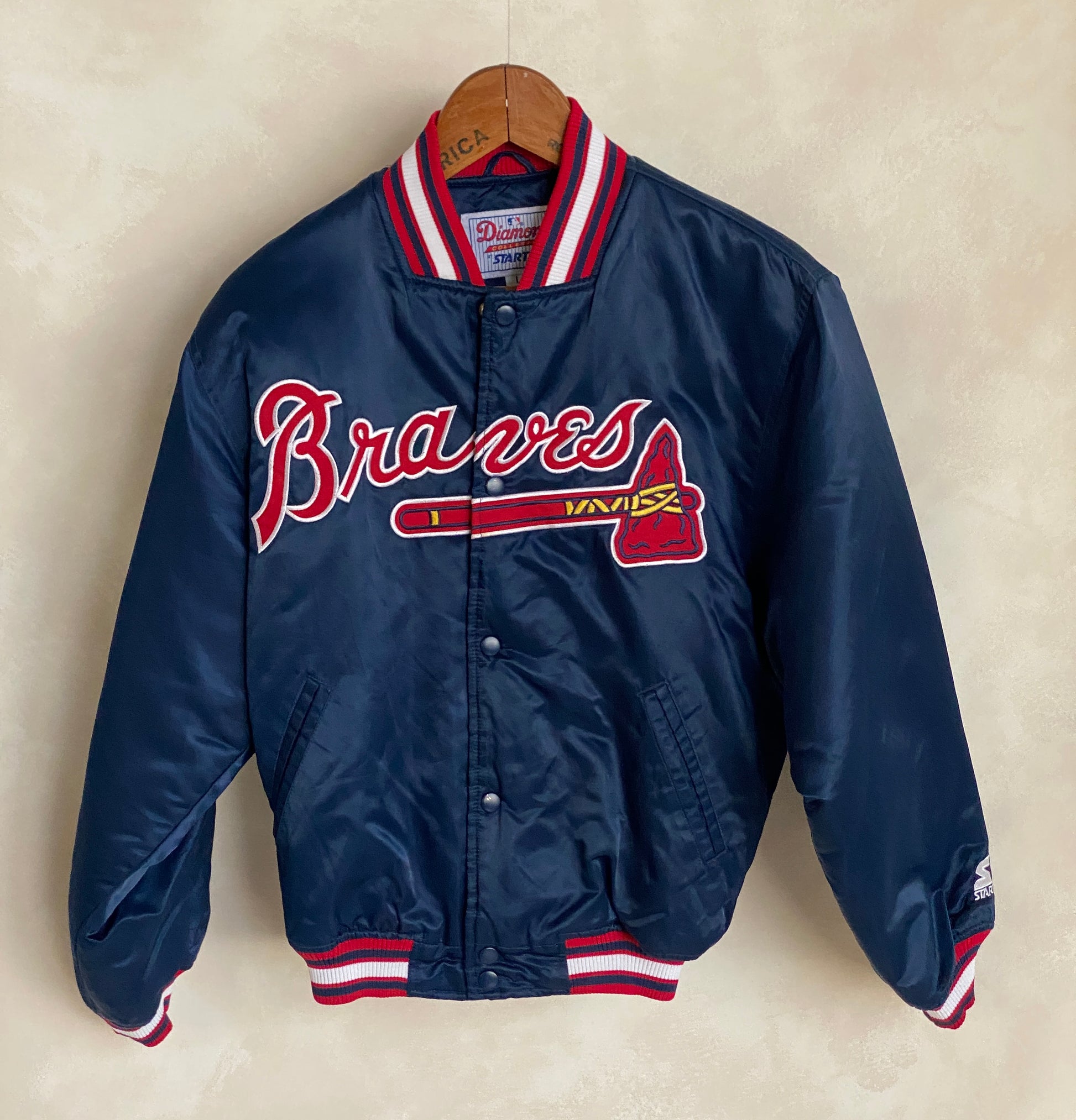 Description: 90s vintage Braves Starter jacket made in USA.