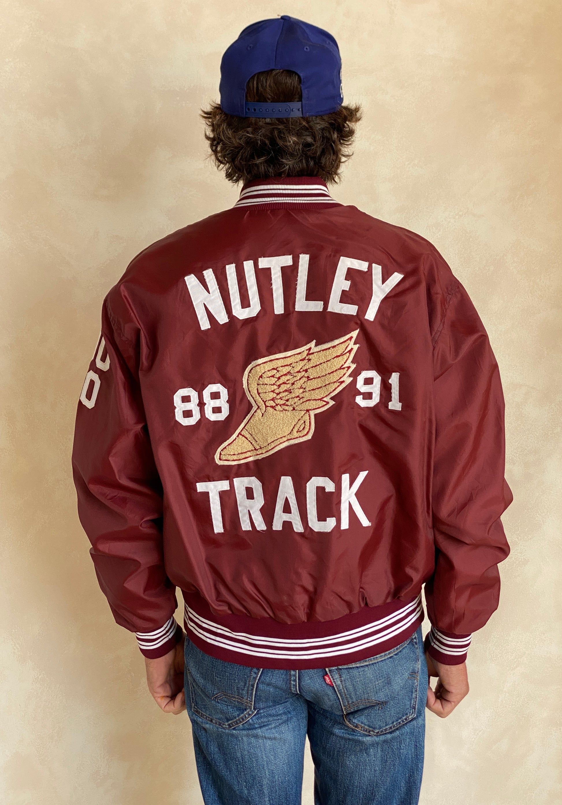 Large. 1991 Vintage Nylon track jacket / Varsity. Made in USA