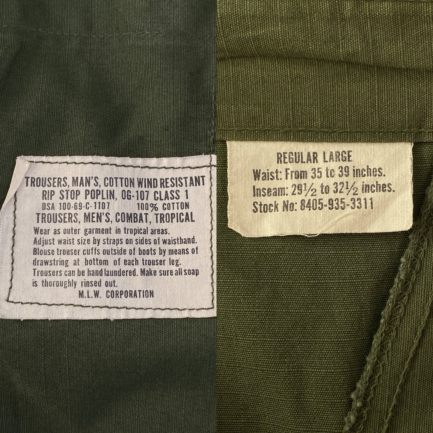 Large Reg. 1968 Authentic US Army Vietnam war era OG-107 jungle pants