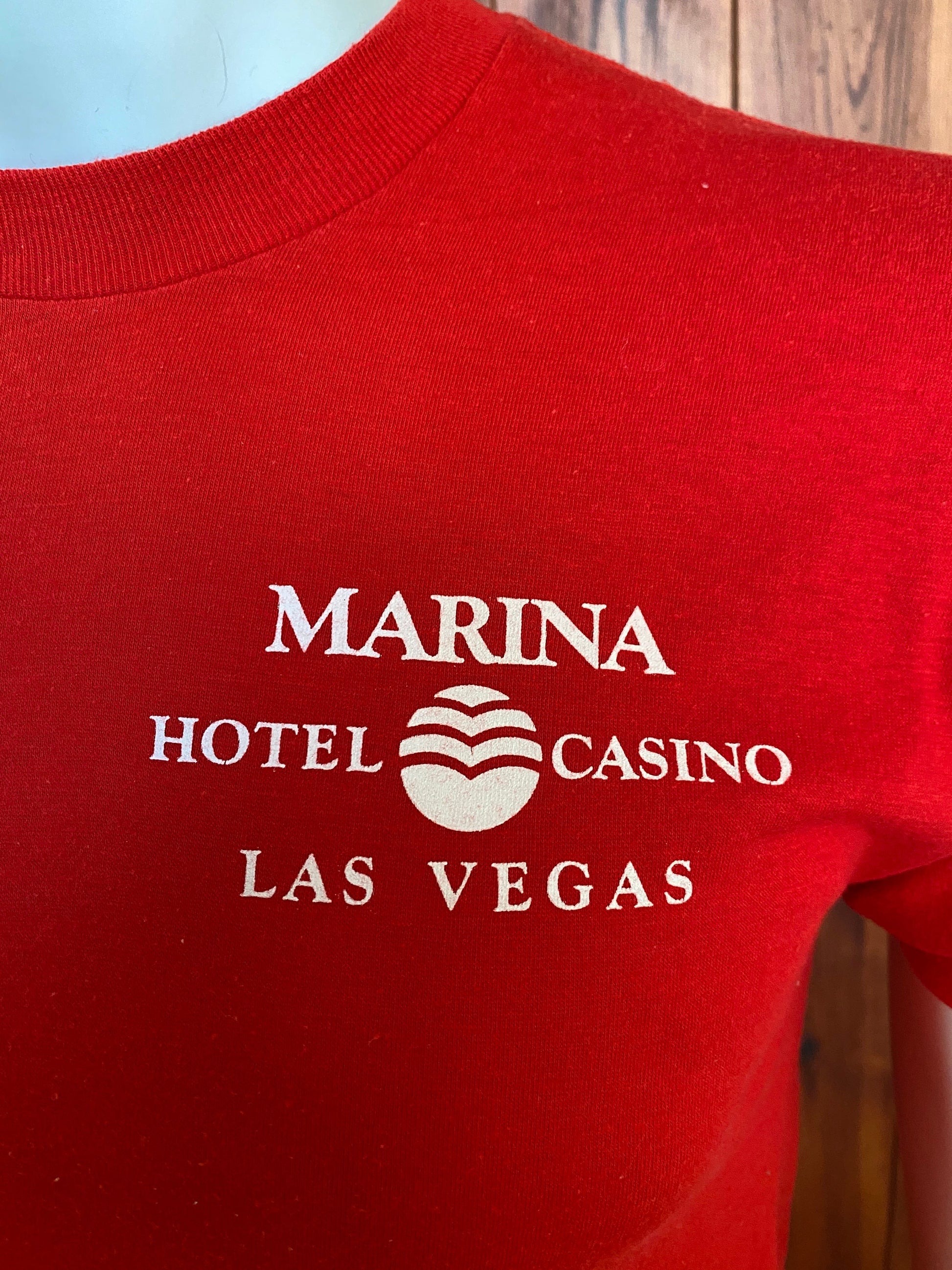 Description: Vintage 50/50 cotton 80s Las Vegas t-shirt Made In USA by California