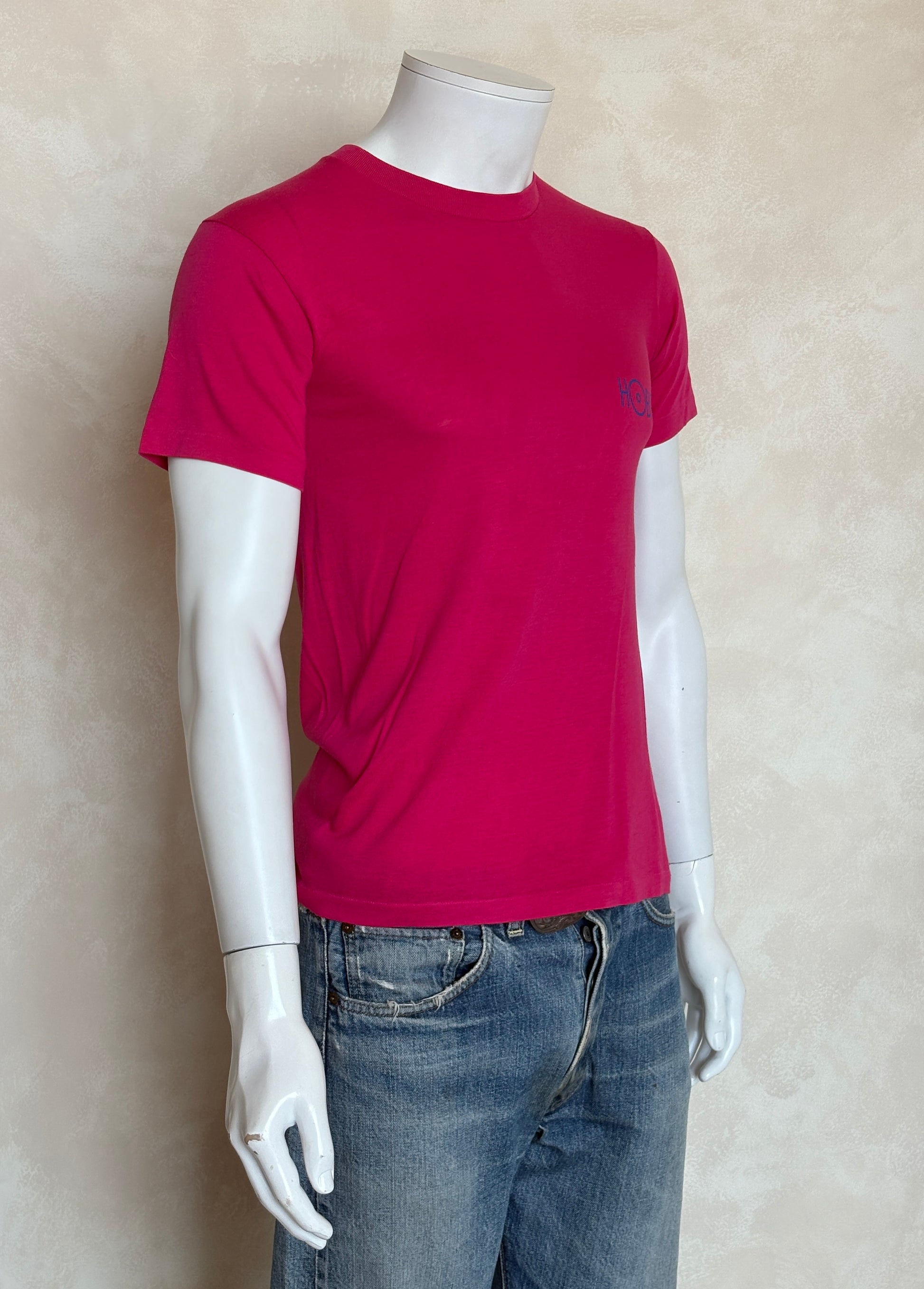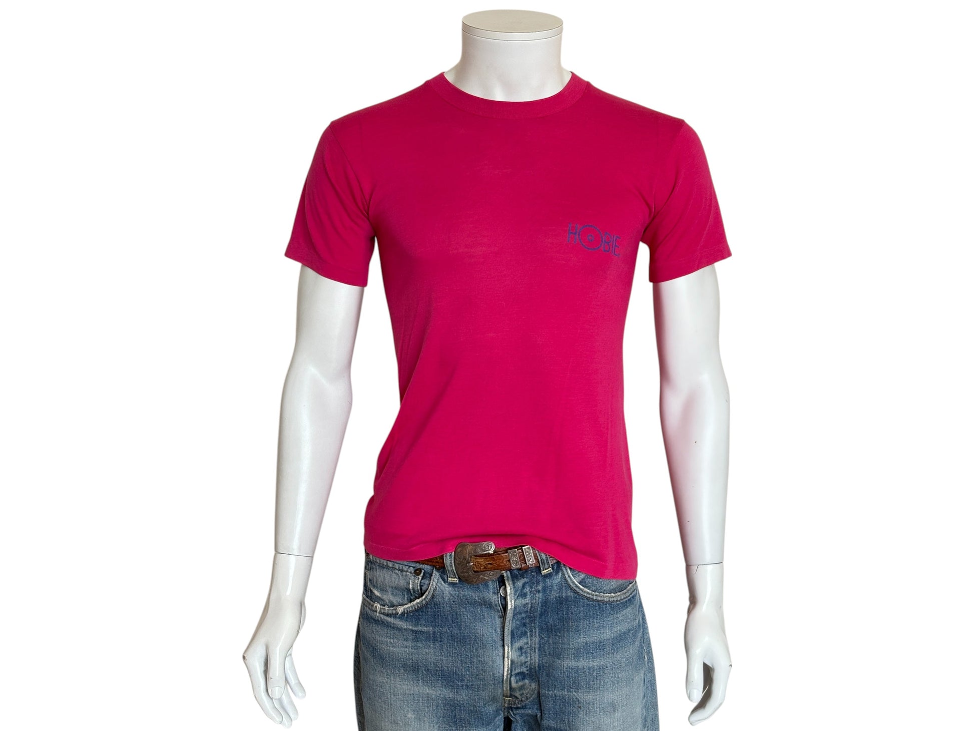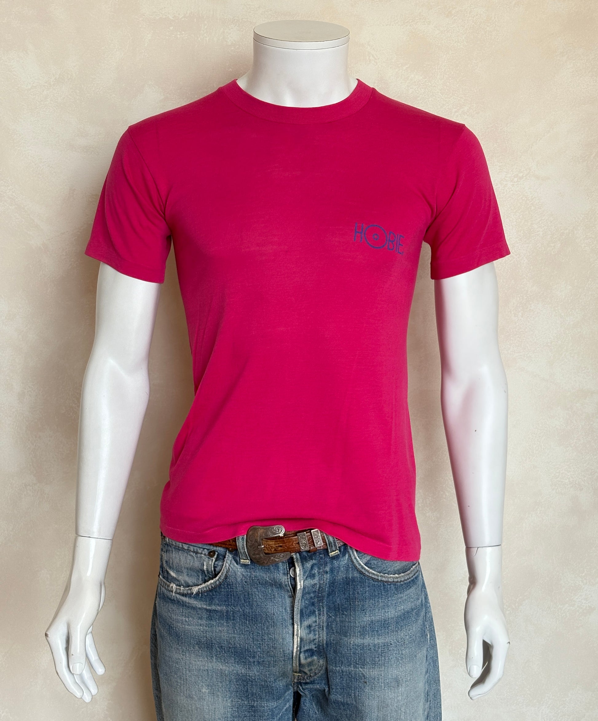 Description:Vintage 80s Hobie Surf T-Shirt — Bright Pink Single Stitch Tee with Colorful Graphic Back Print