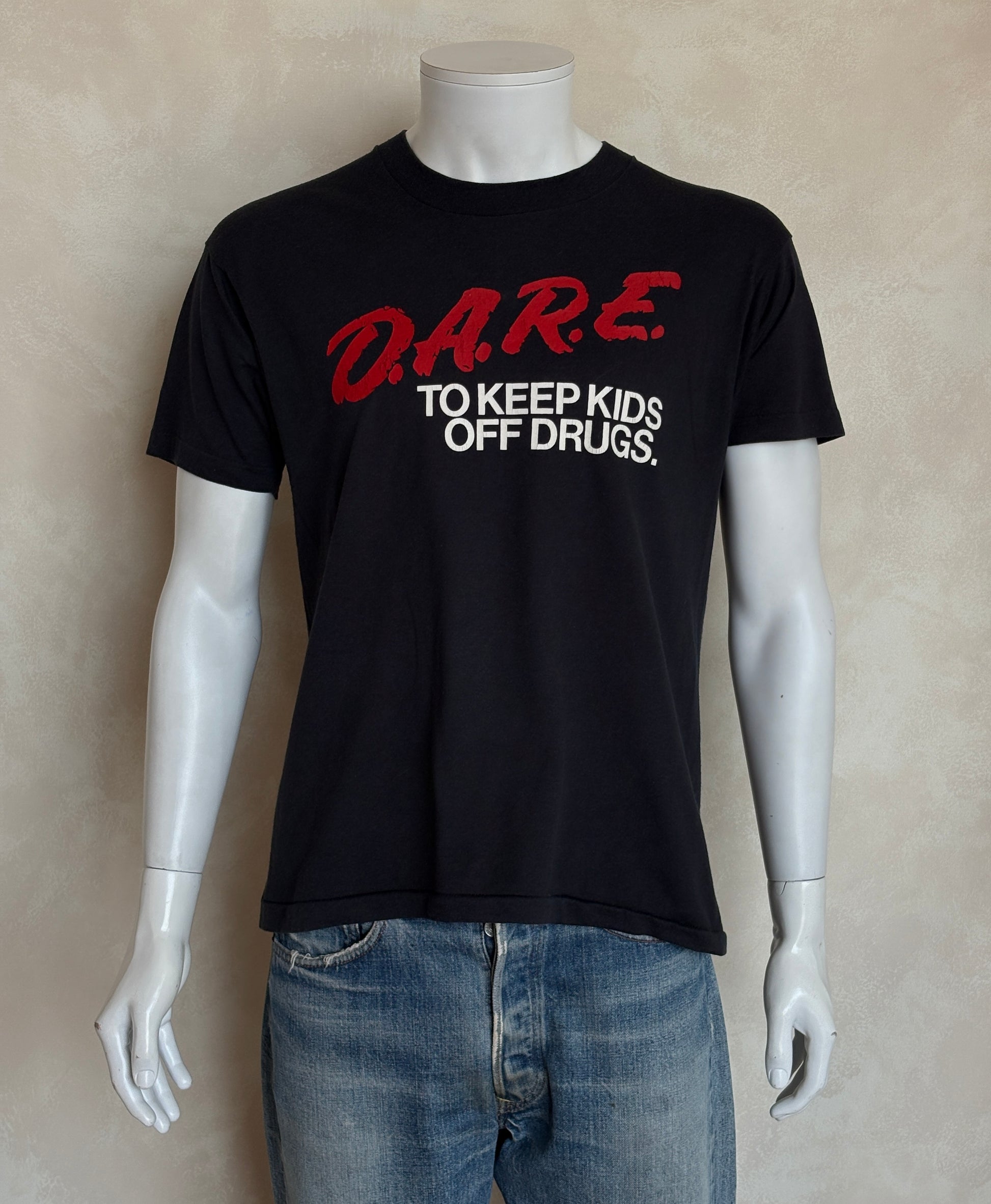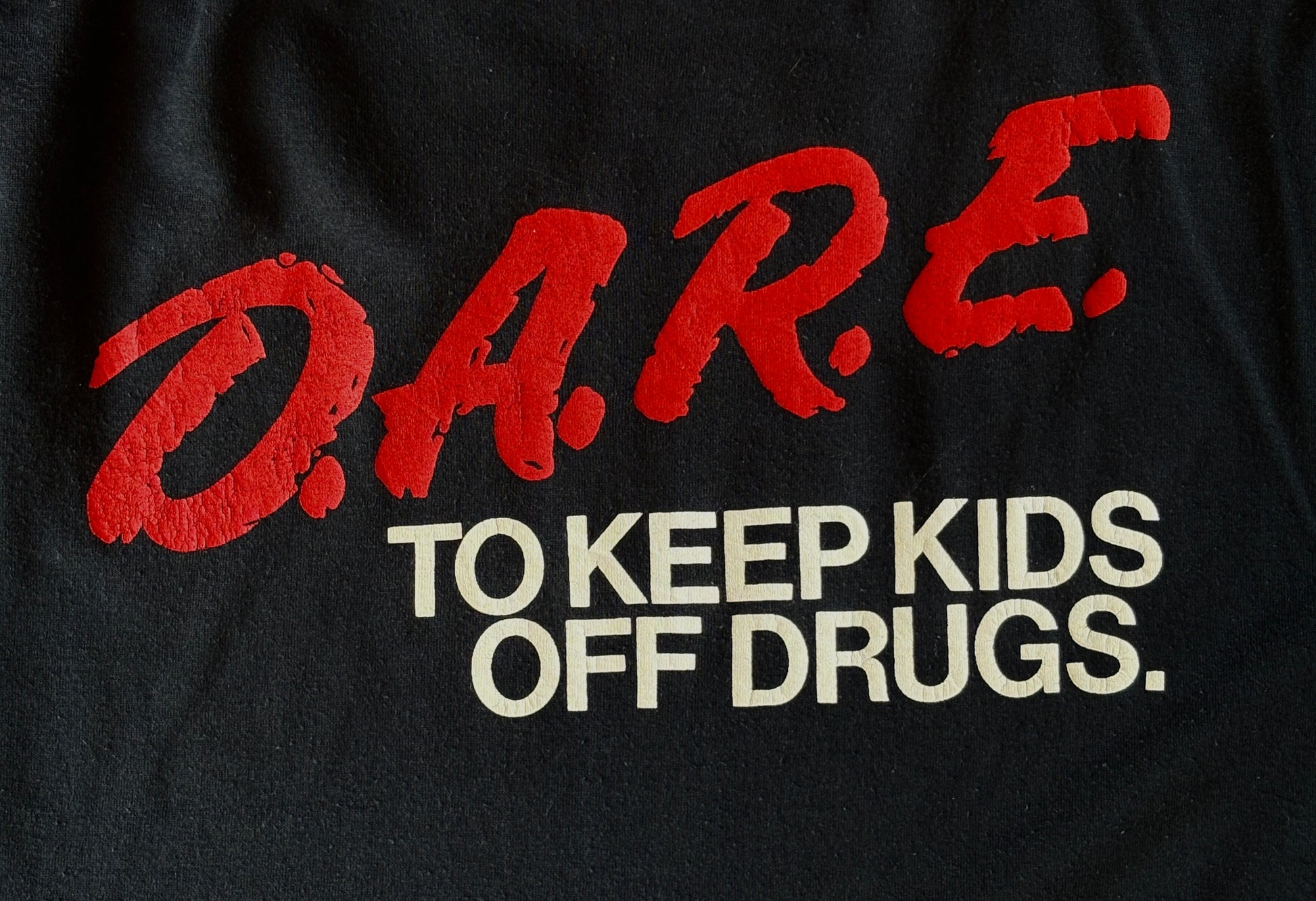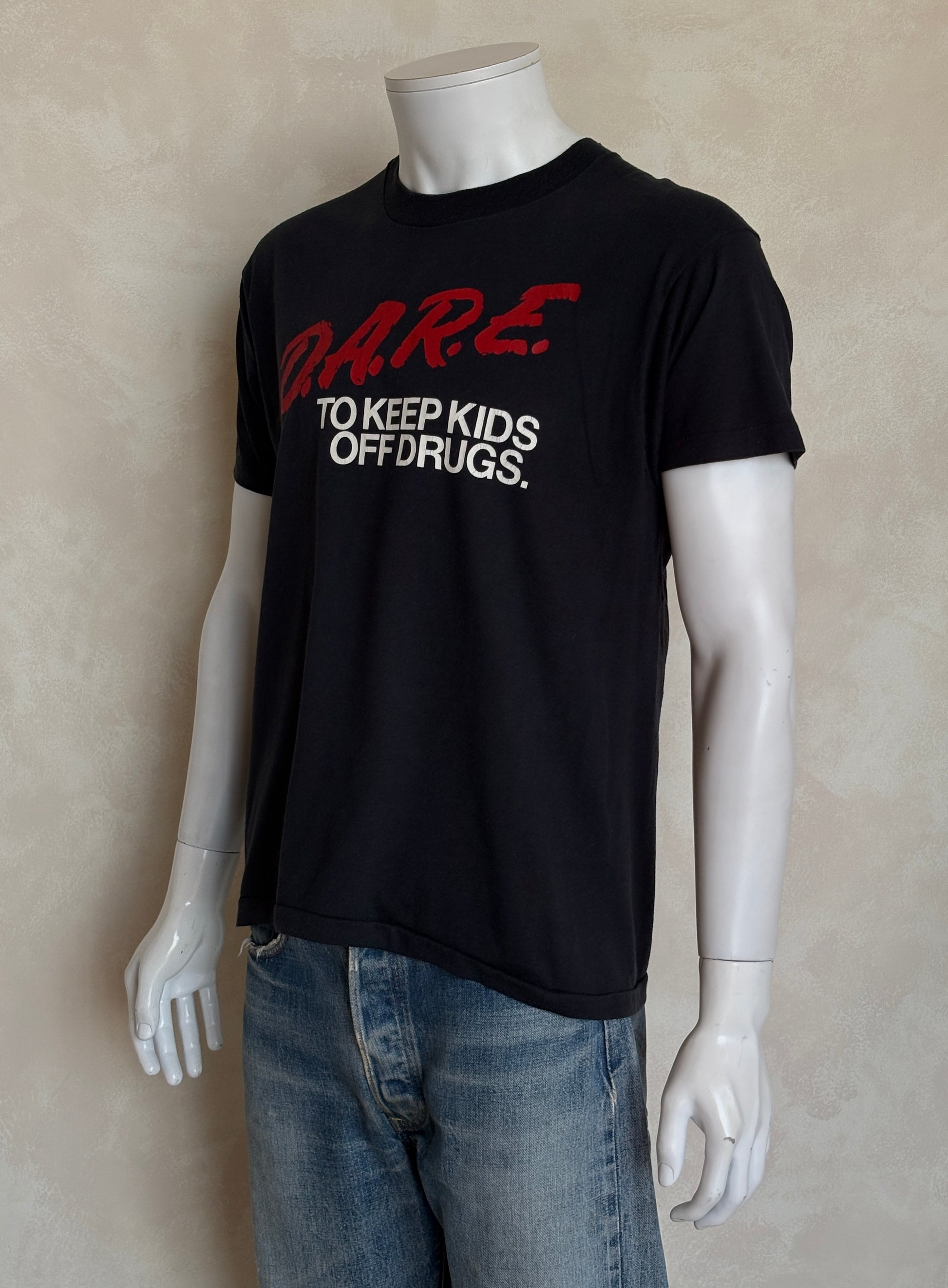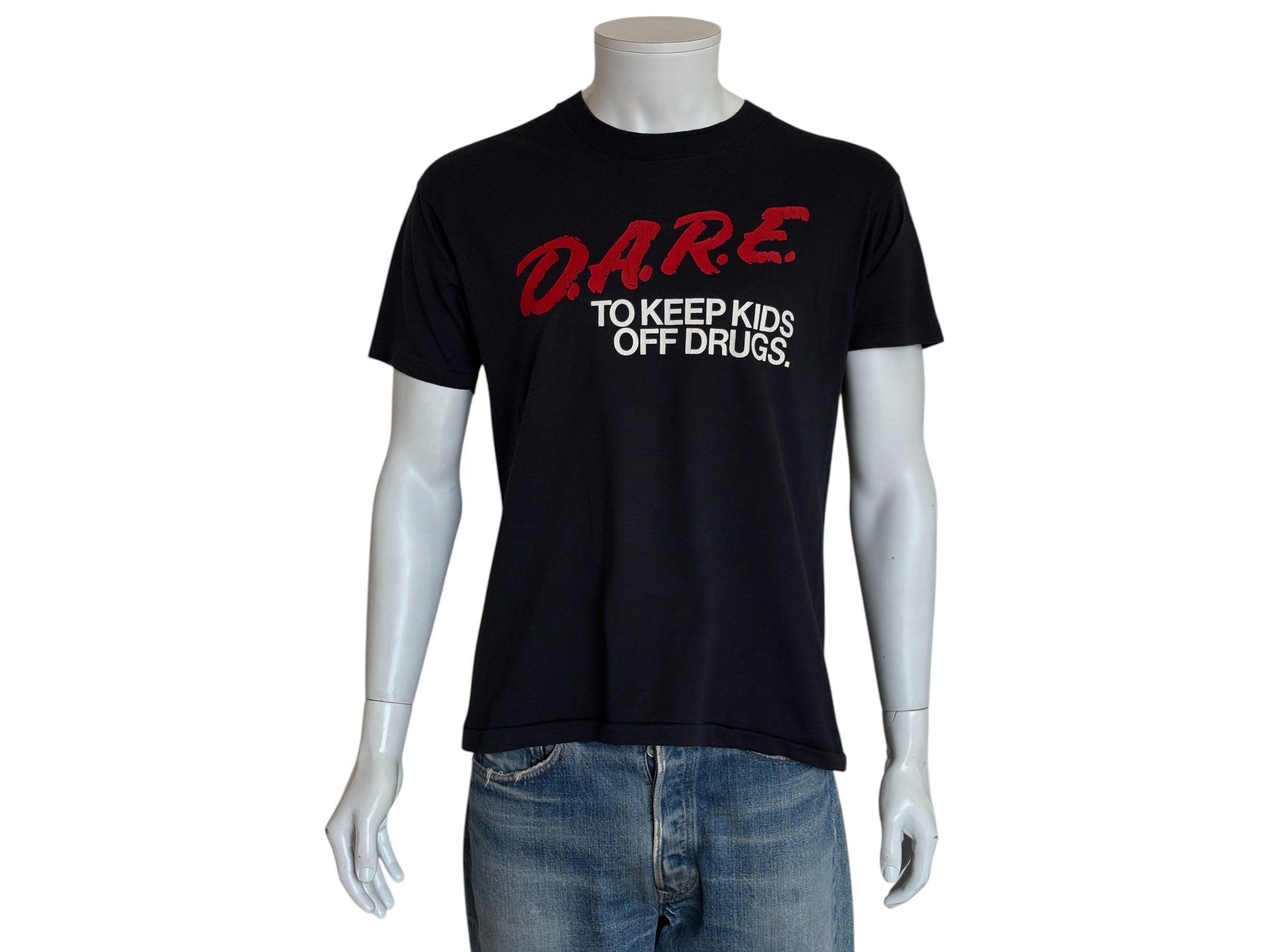 Vintage 80s D.A.R.E. T-Shirt 90s Black “To Keep Kids Off Drugs” Anti-Drug Program Tee Bold Red White Graphic. Large