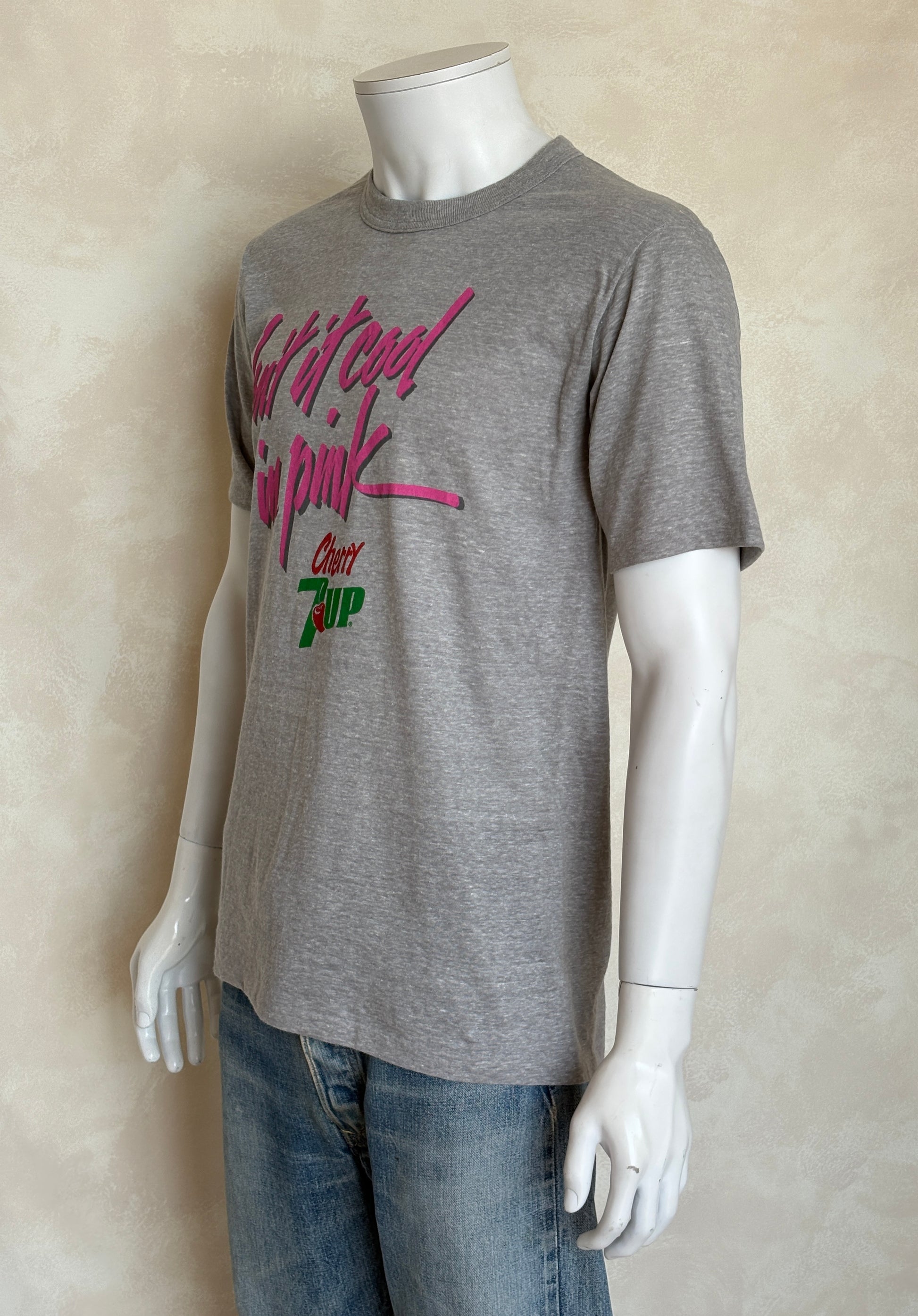Vintage Cherry 7UP T-Shirt 80s “Isn’t It Cool in Pink” Soda Graphic Tee. Soft Drink Promo. Large