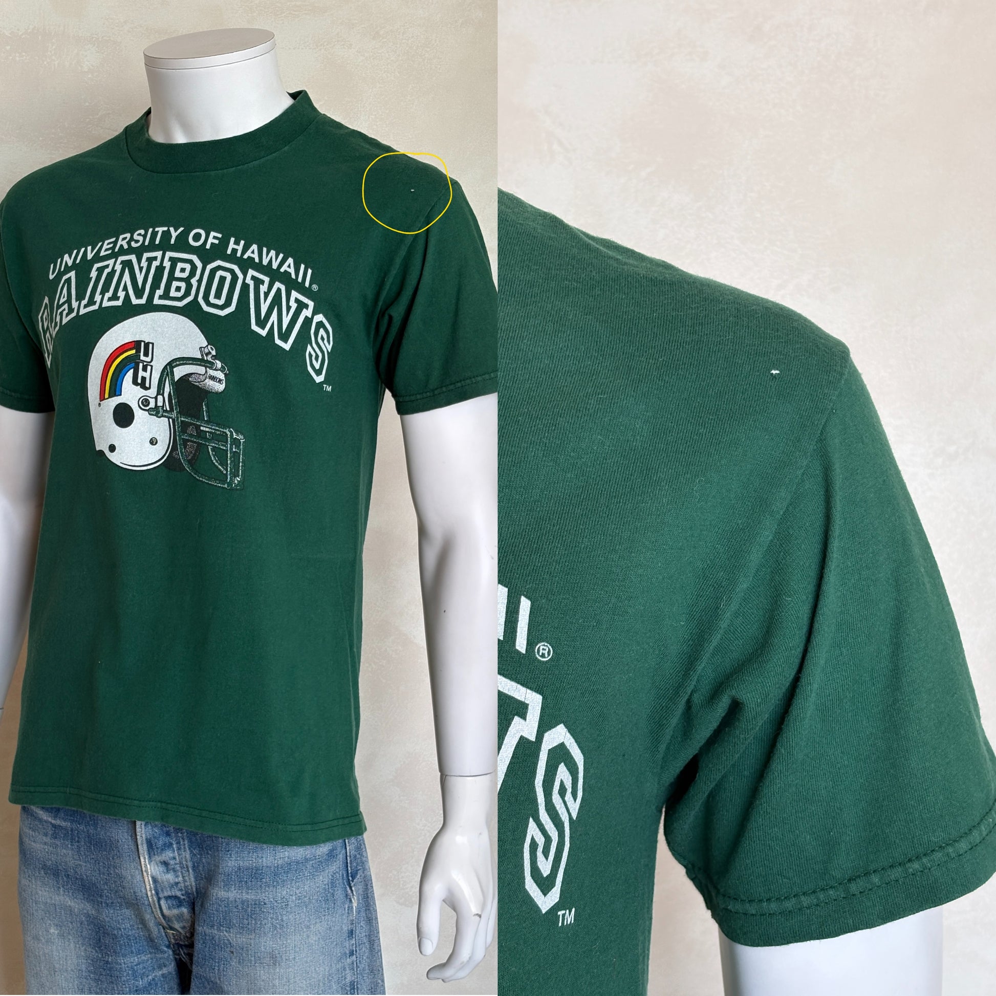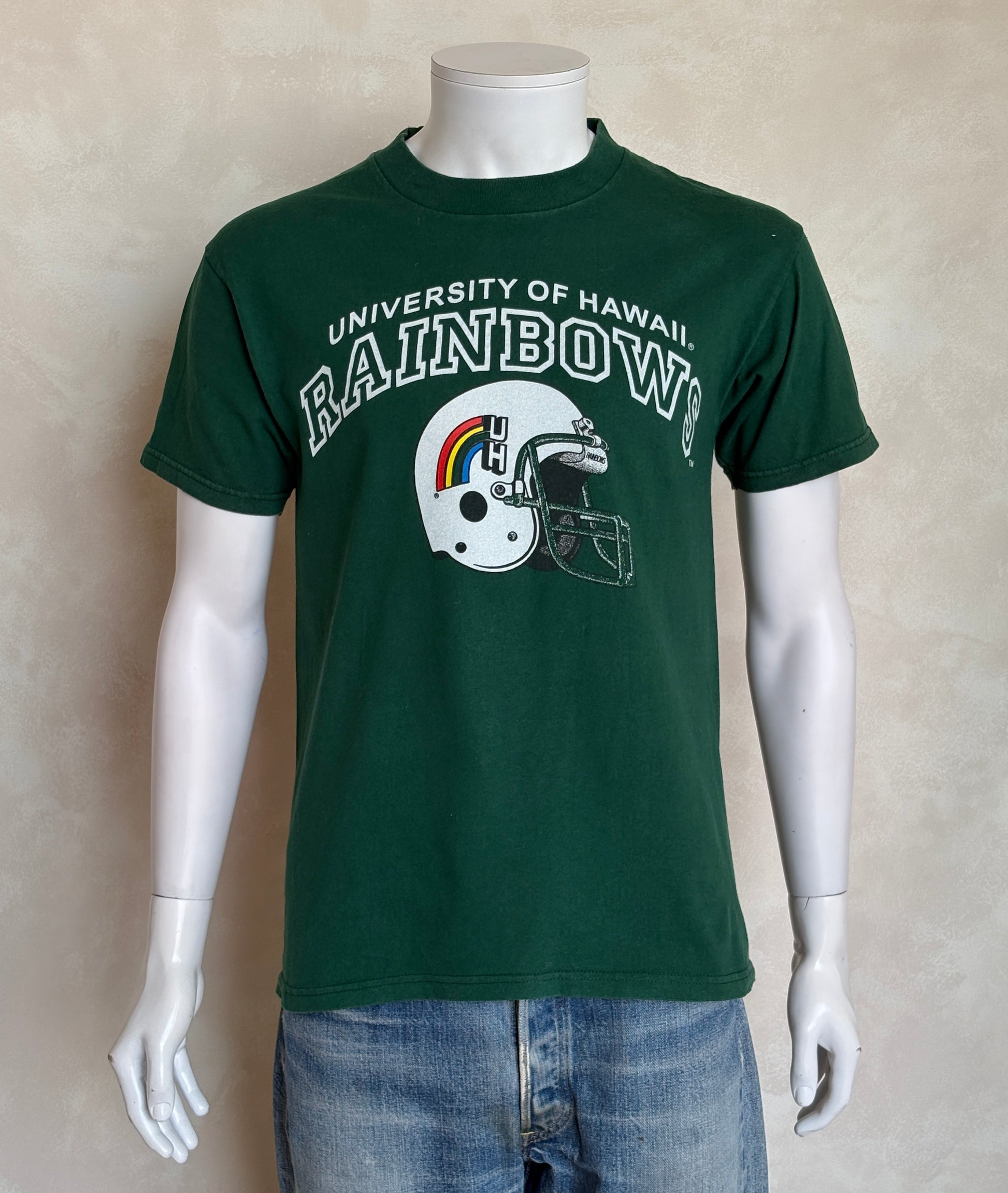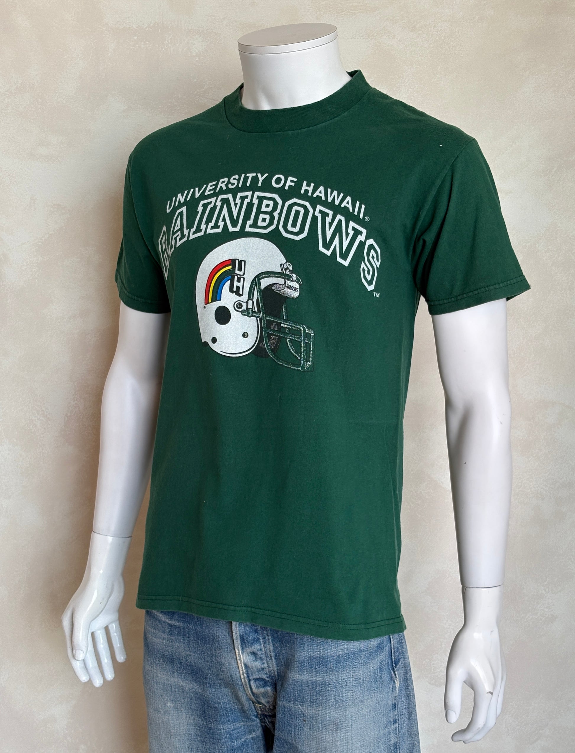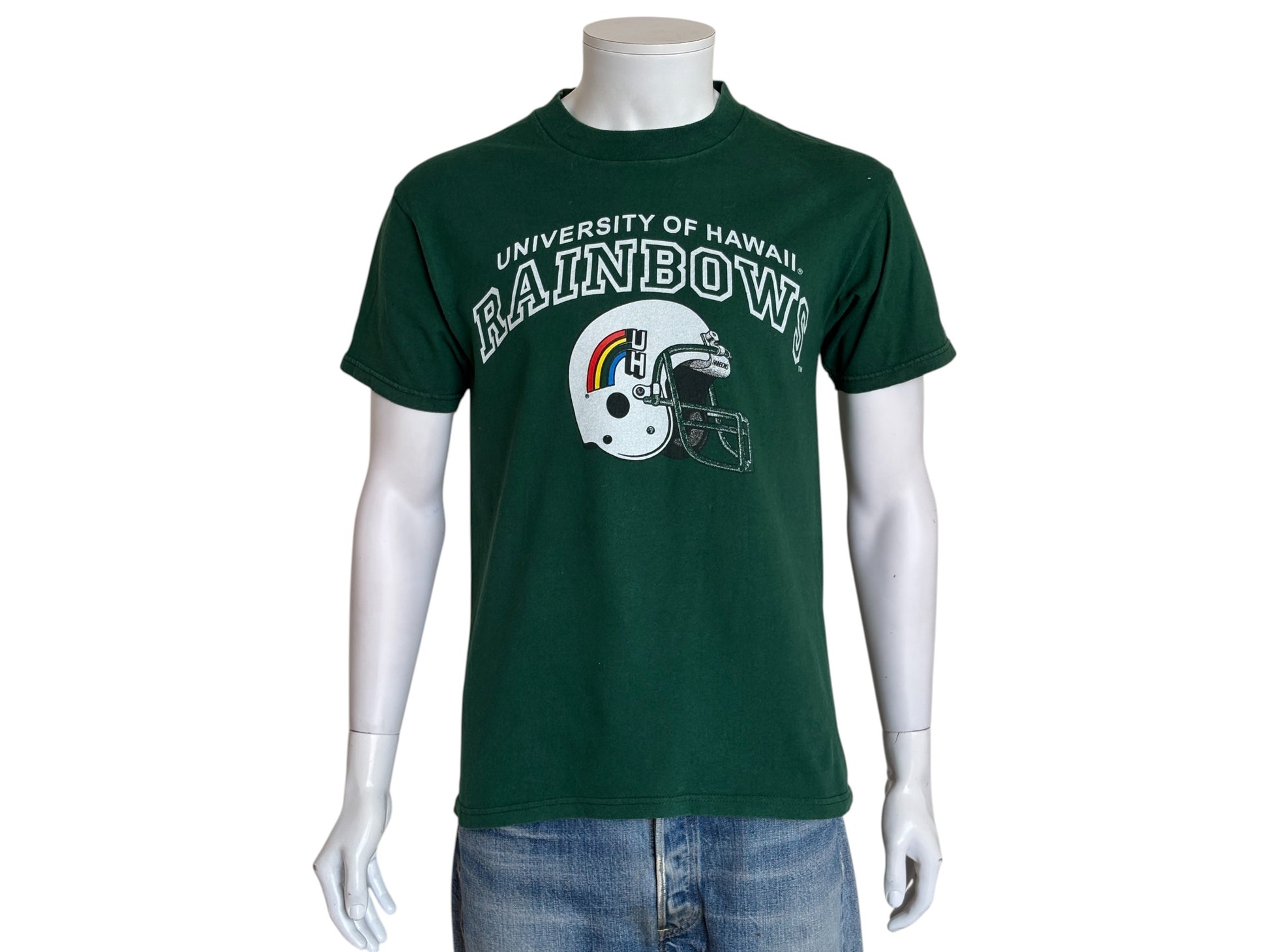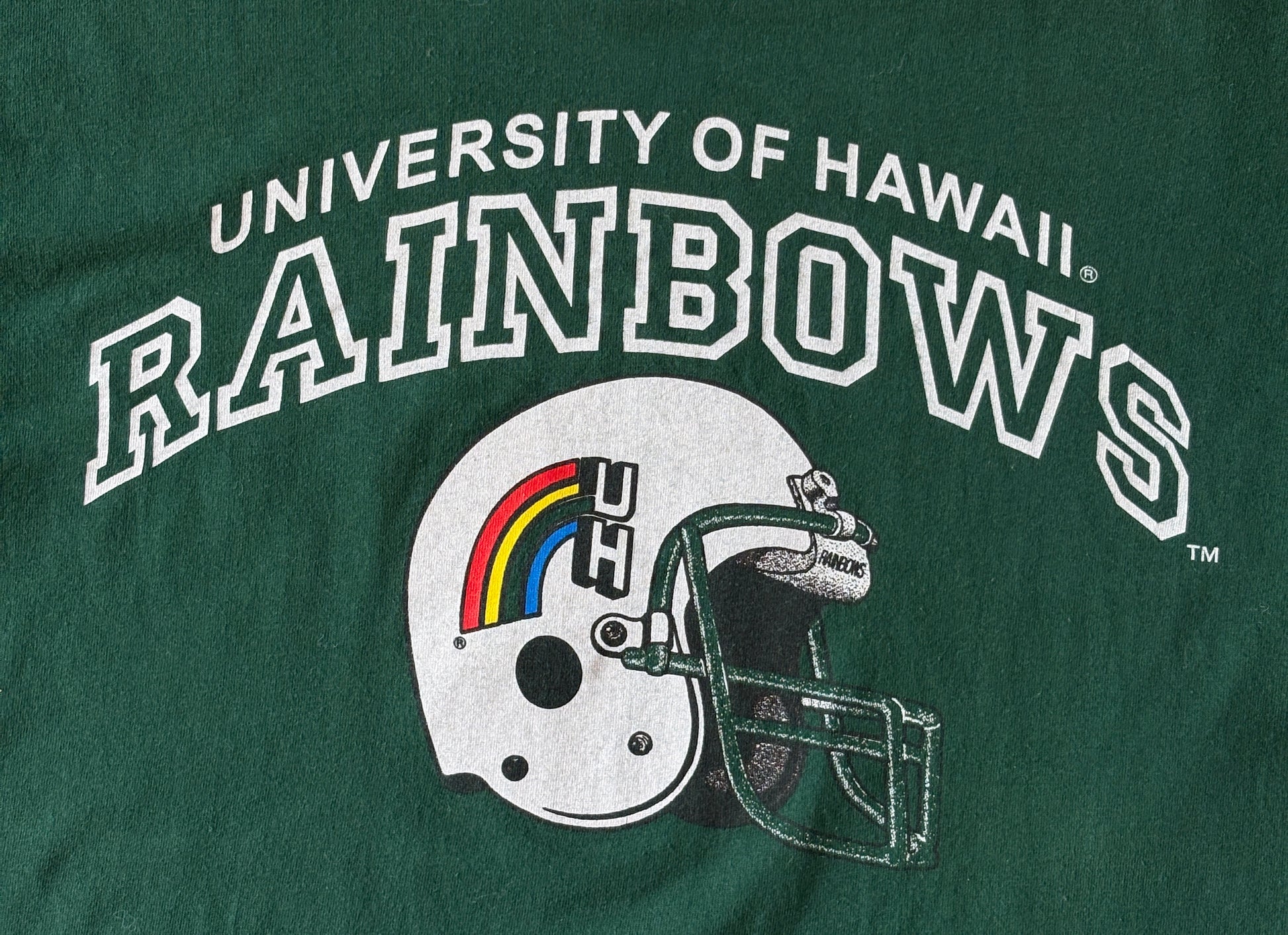Description: Vintage University of Hawaii Rainbows tee – bold NCAA football style with retro rainbow helmet graphic.