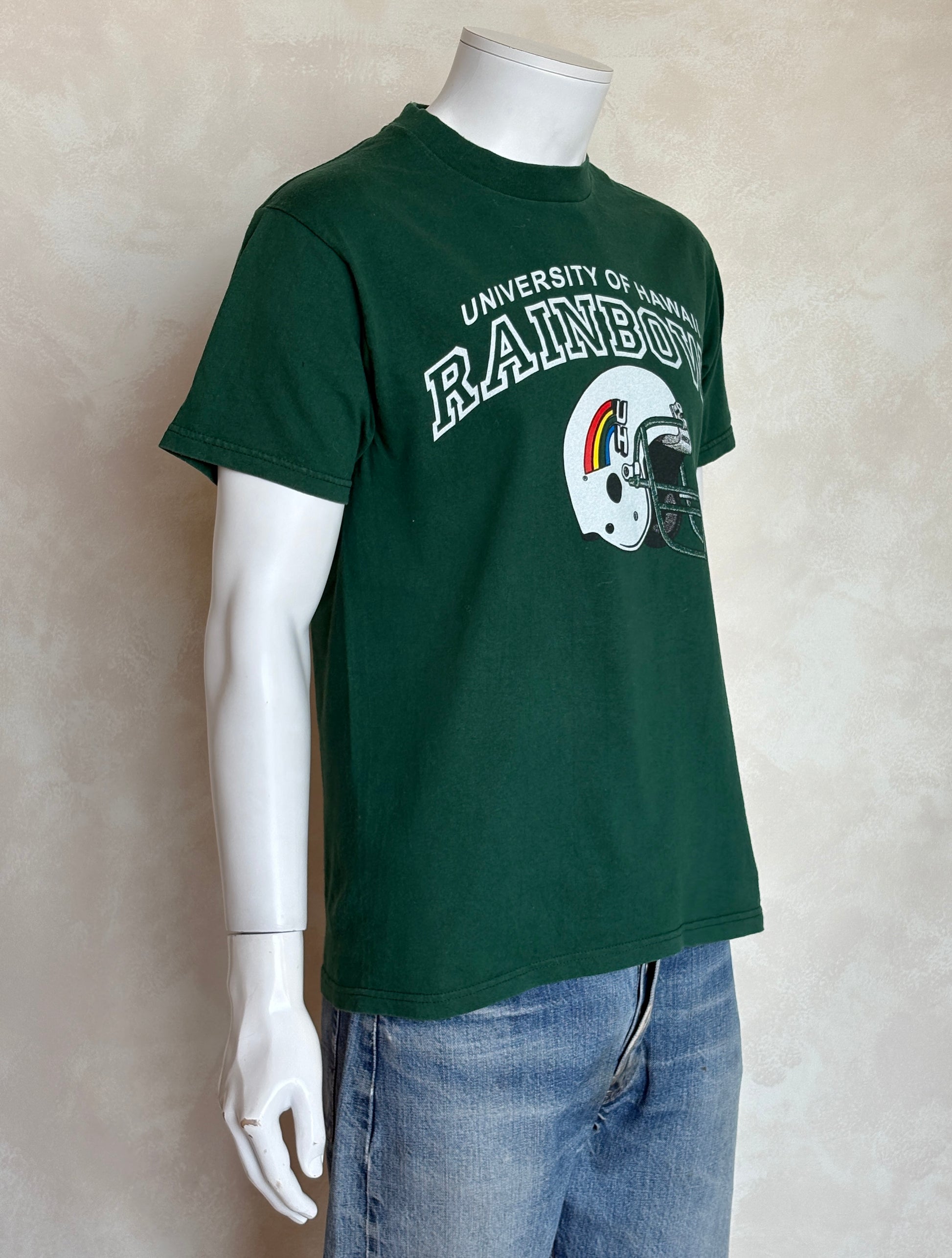 Vintage University of Hawaii Rainbows tee – bold NCAA football style with retro rainbow helmet graphic. Med