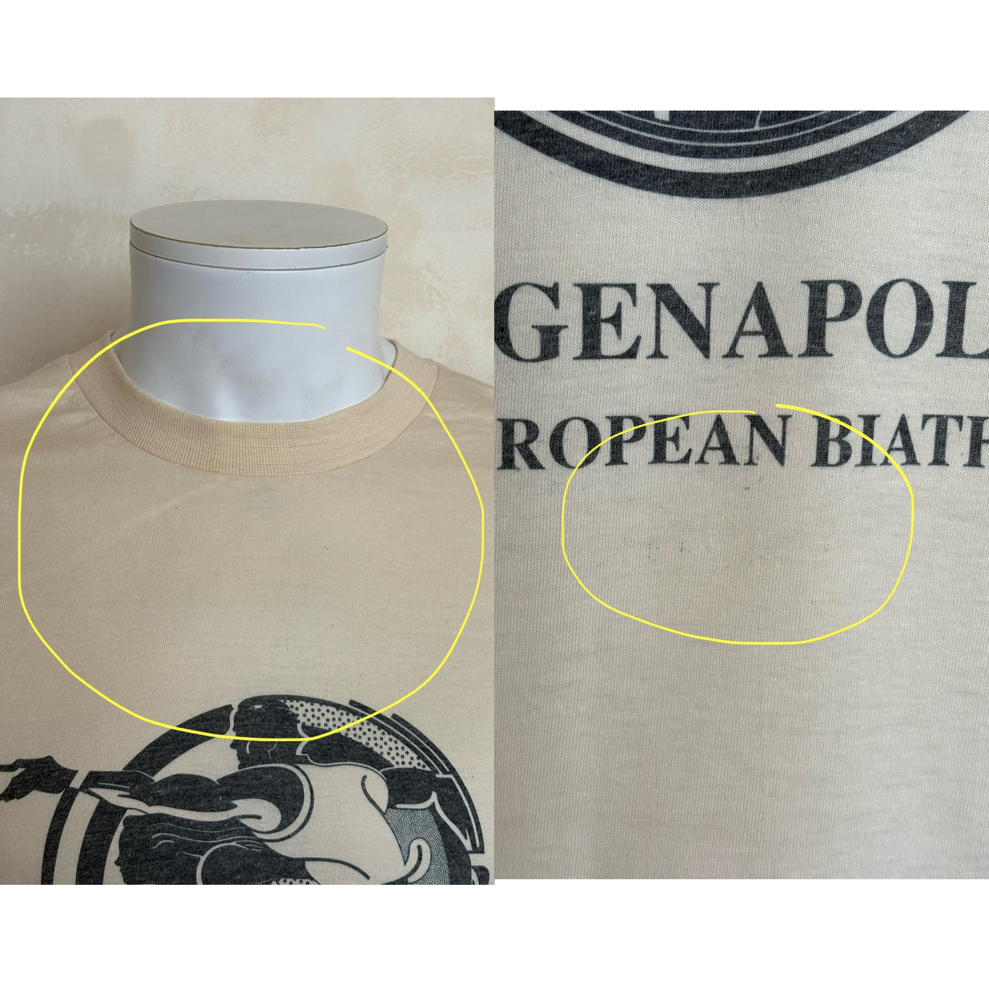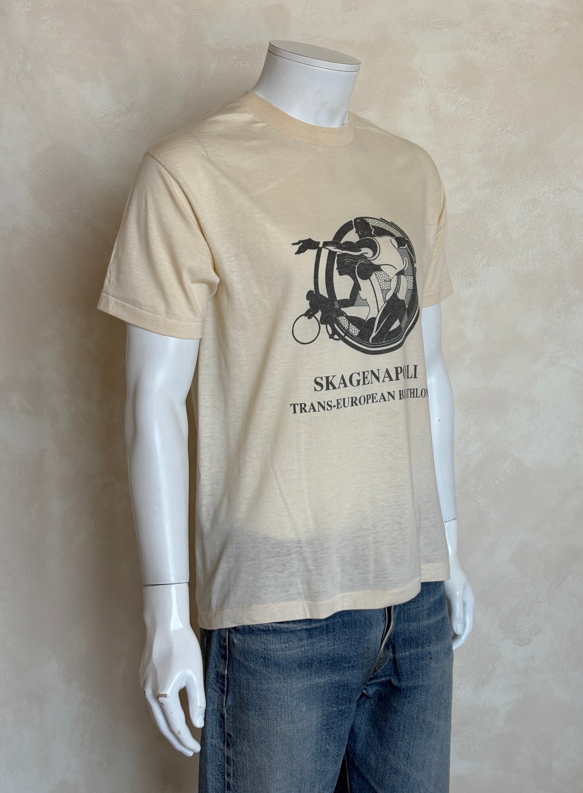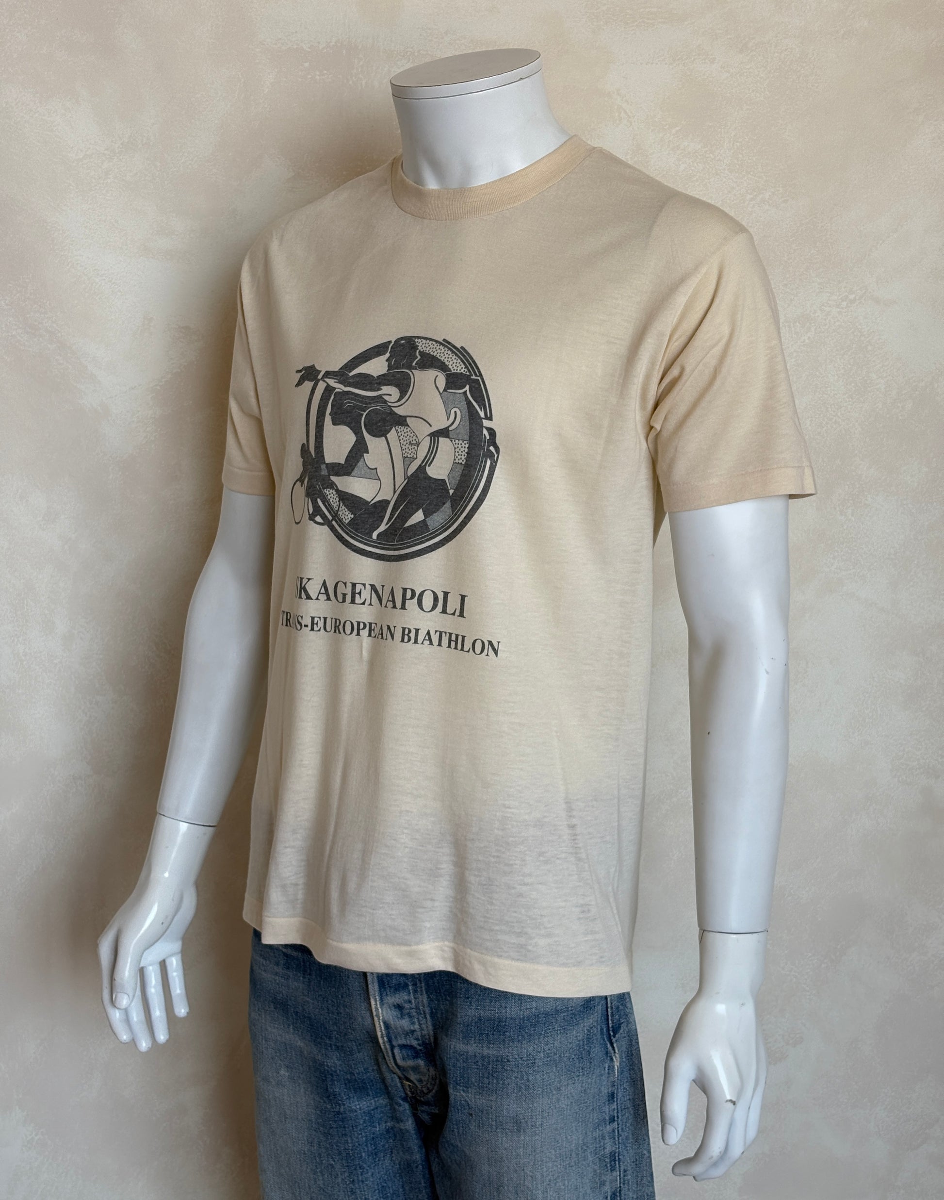 Vintage 1990 Skagenapoli Trans-European Biathlon T-Shirt – Denmark to Italy Route Map Tee. Large