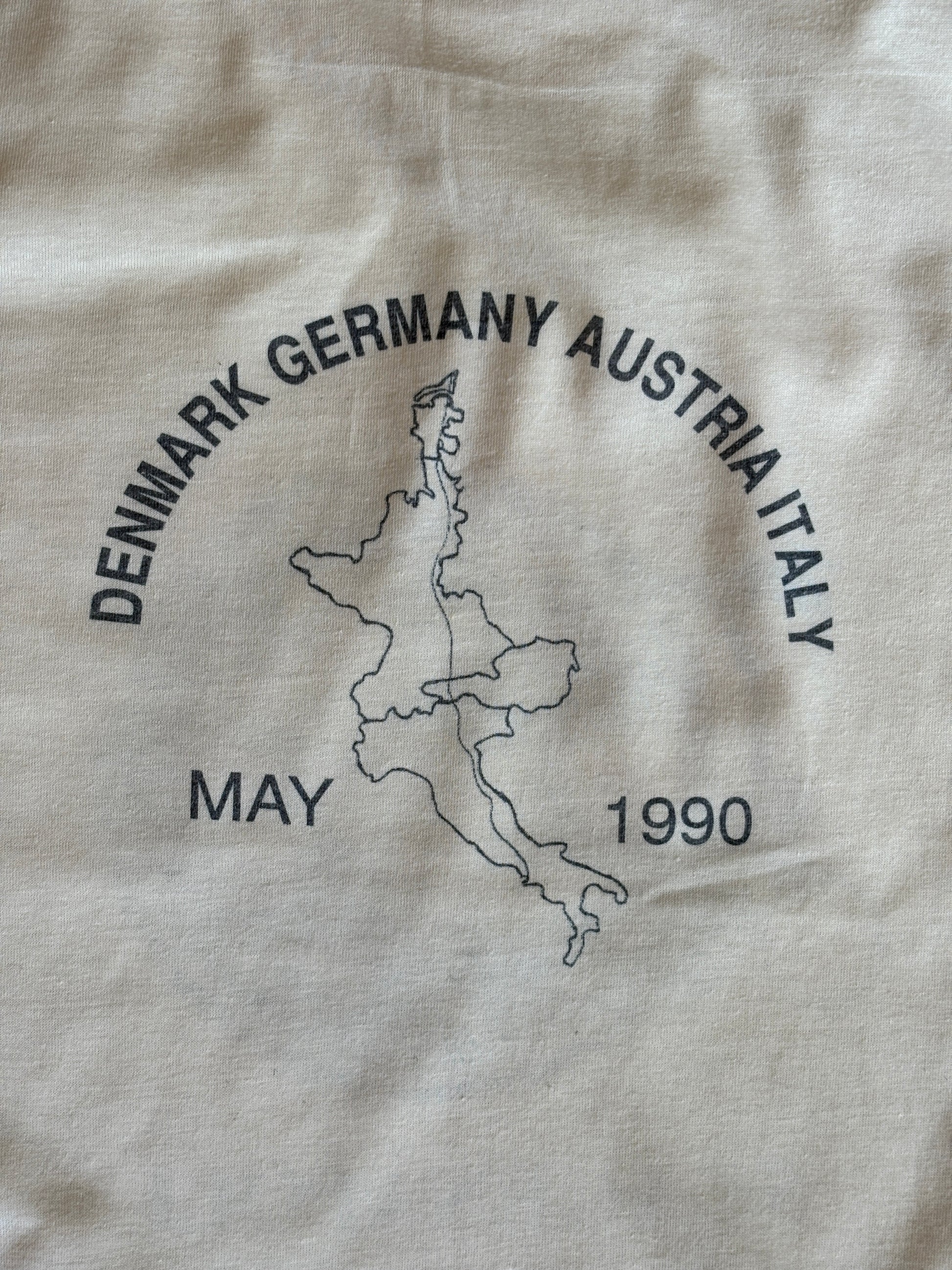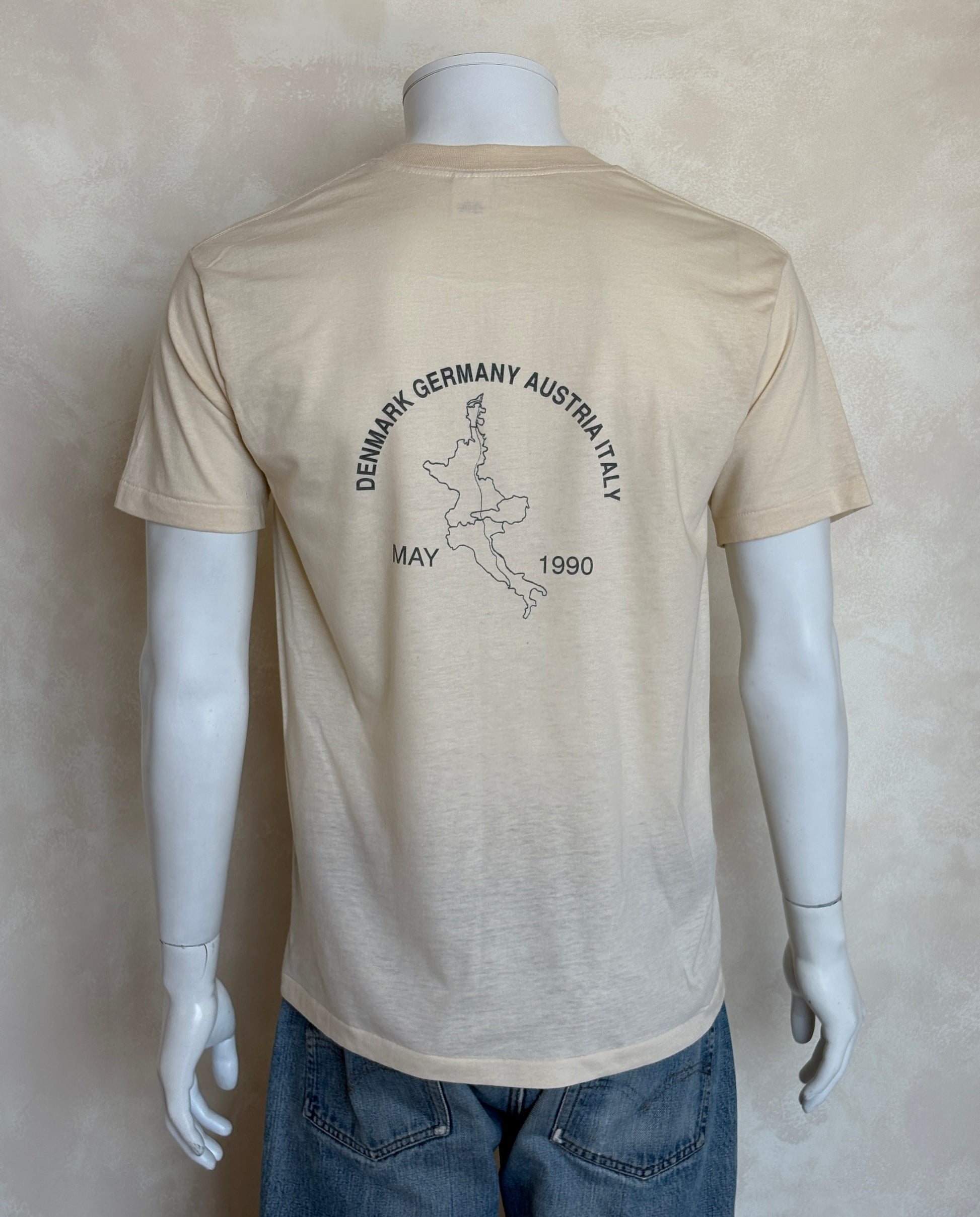 Description:Vintage 1990 Skagenapoli Trans-European Biathlon T-Shirt – Denmark to Italy Route Map Tee