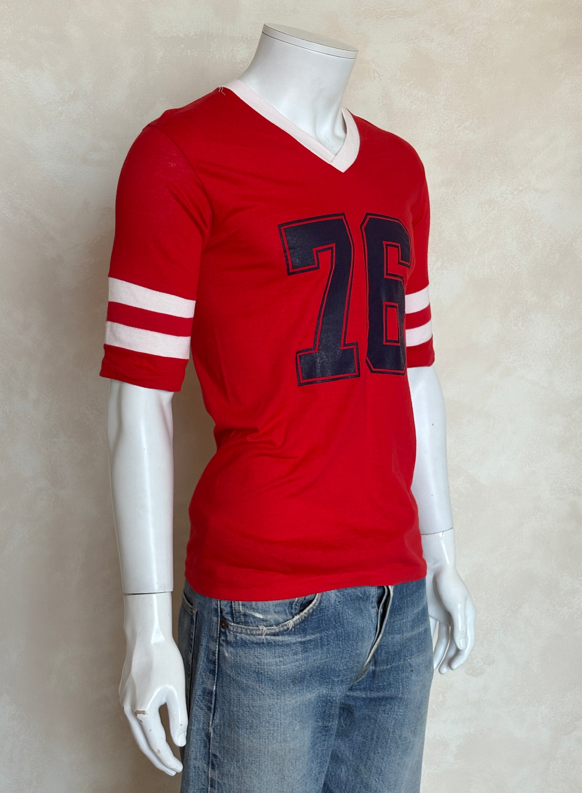 Vintage 70s Playboy 76 Jersey T-Shirt Red 70s Style Football Tee – Med