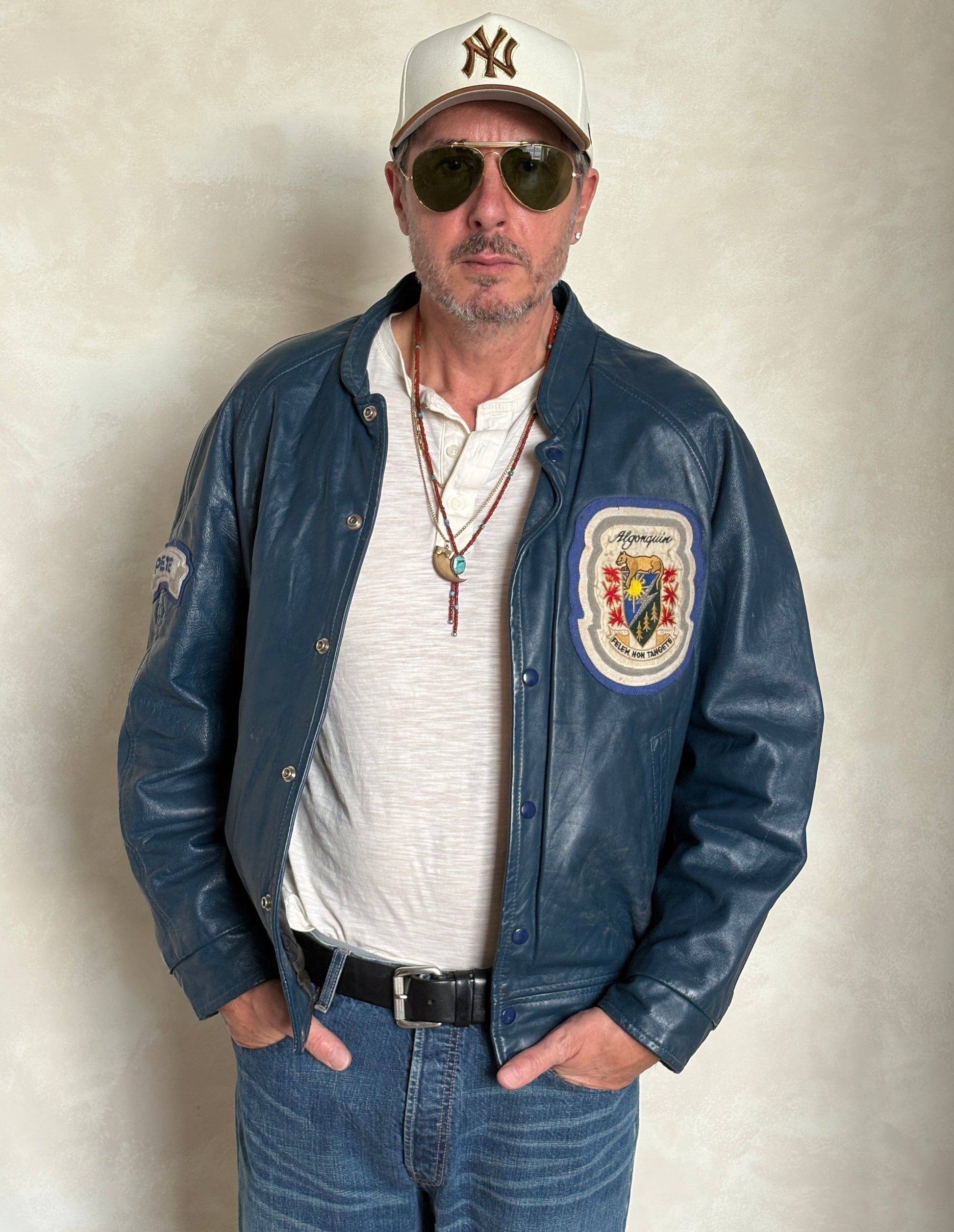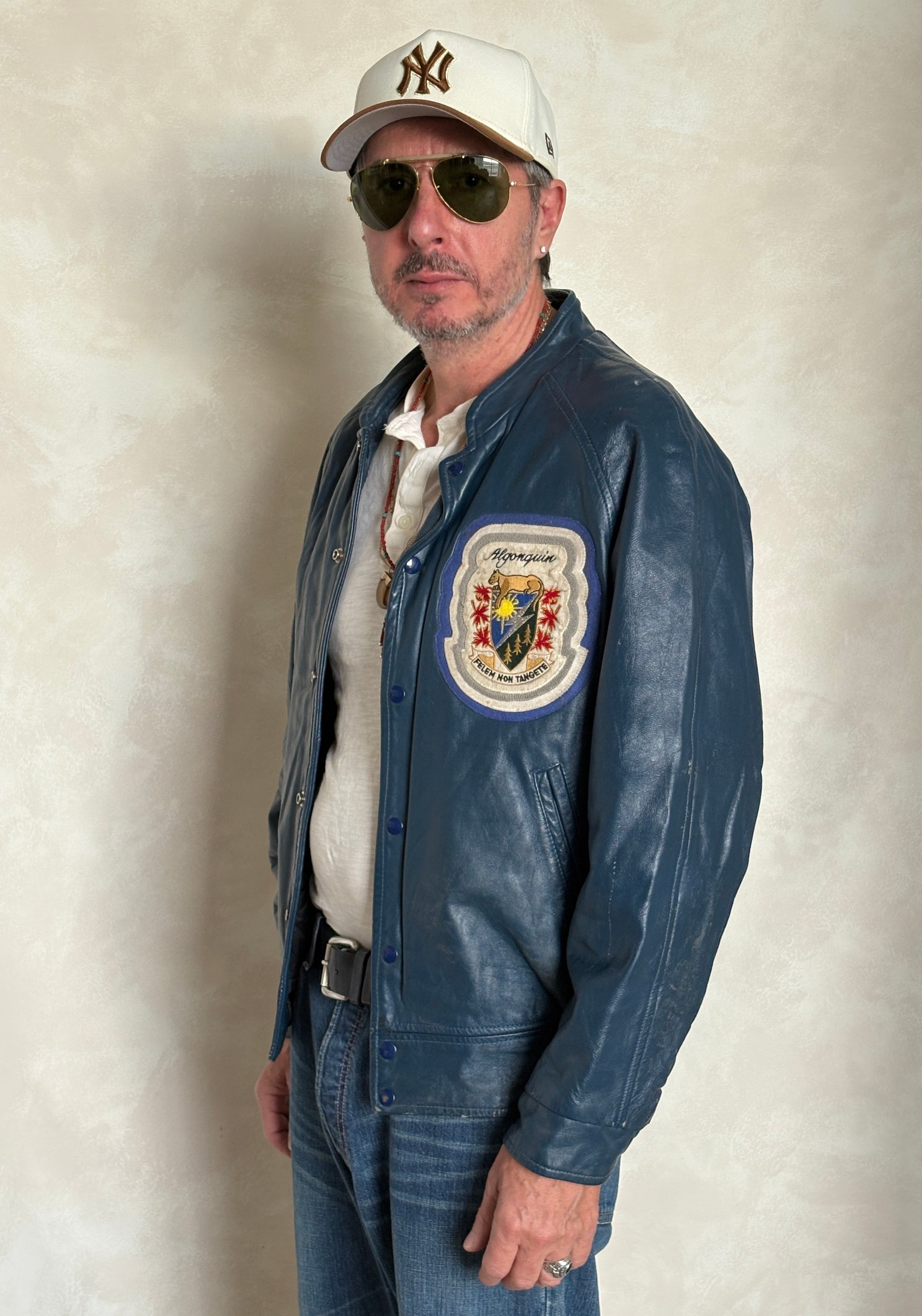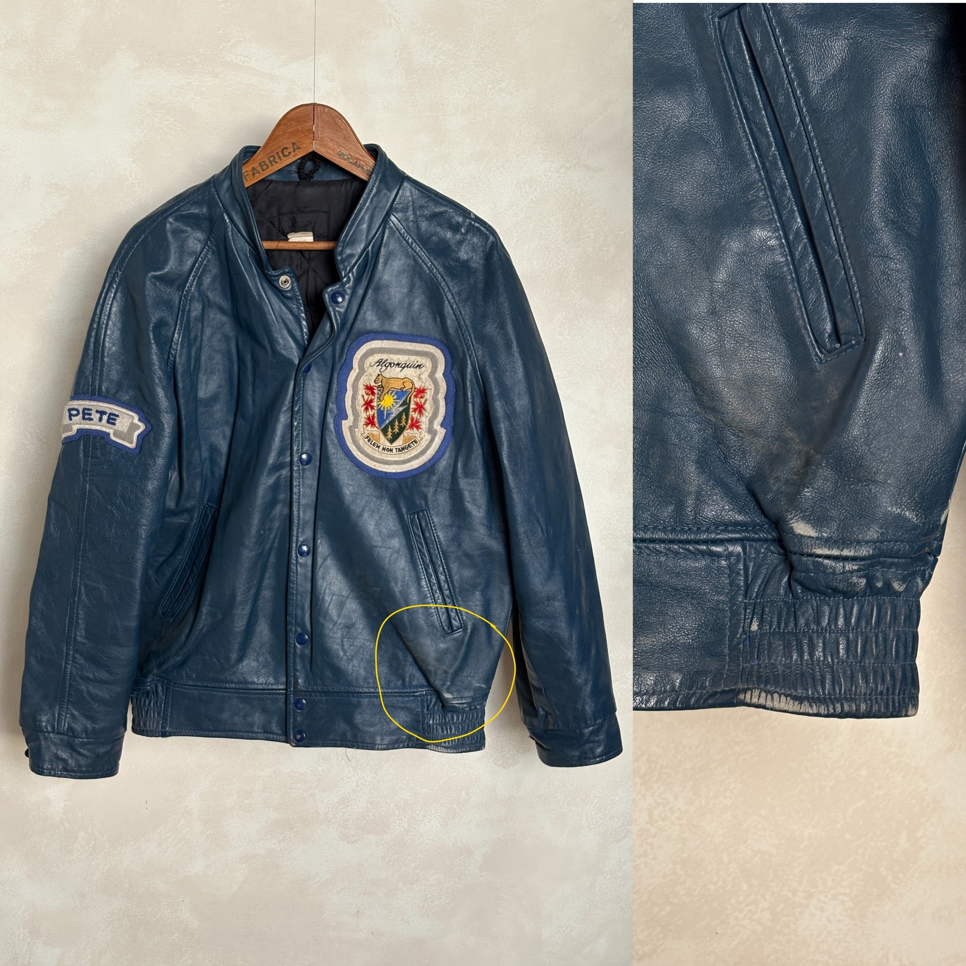 Soft leather, quilted lining, and bold patches make it a timeless collector’s item or statement vintage piece.