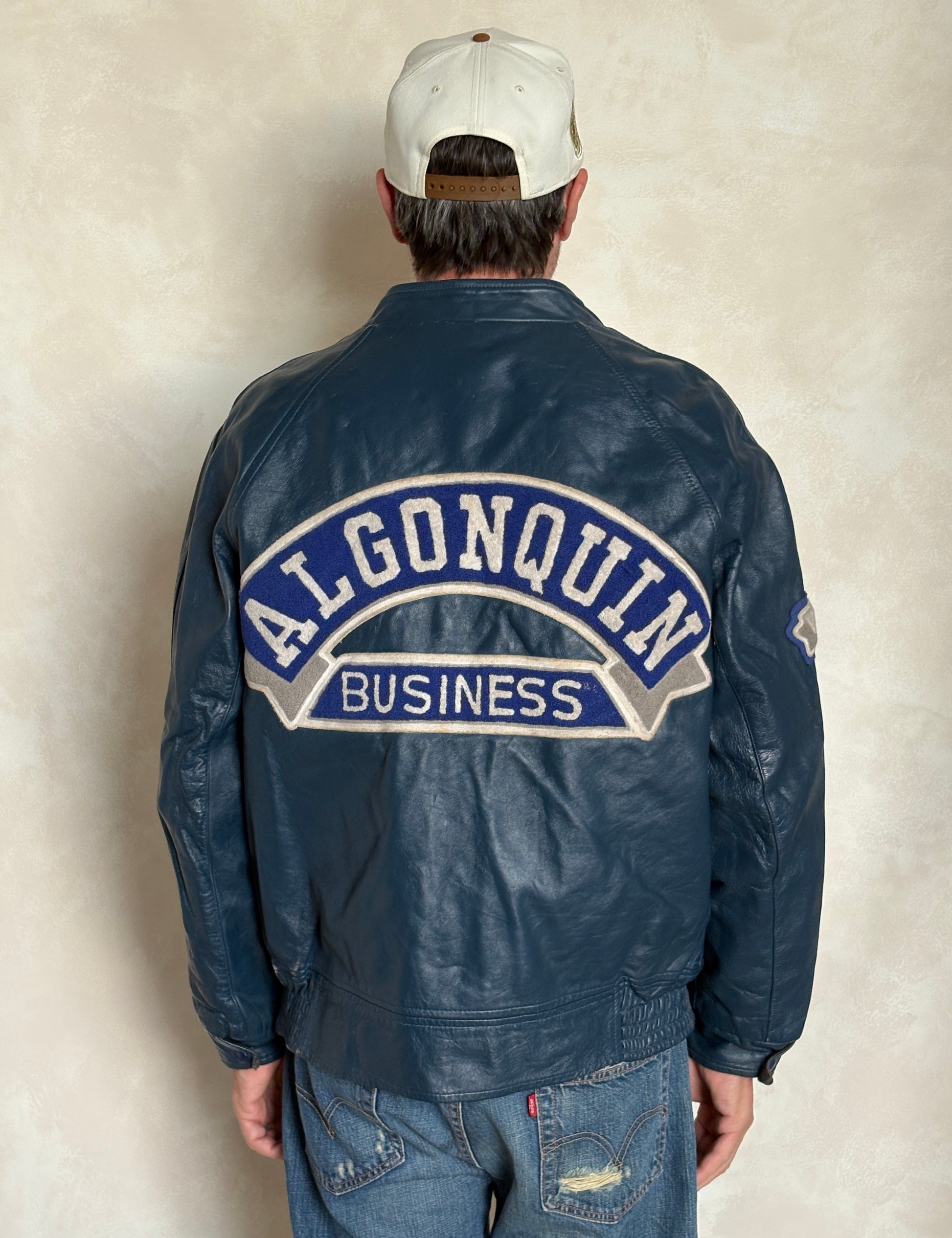 Authentic 1980s Algonquin College varsity leather jacket, from the Business Department in Ottawa, Canada.