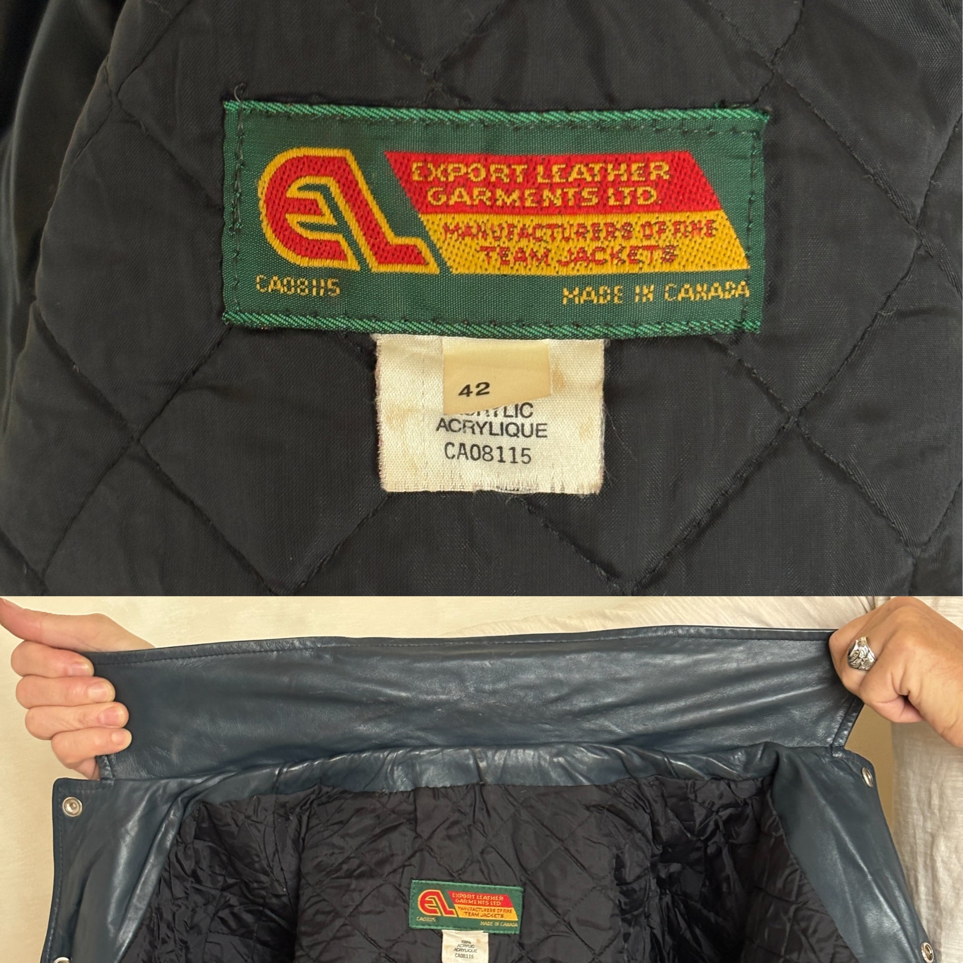 👉 Description: Vintage Leather Hockey Jacket – Soft Canadian Leather – Made in Canada