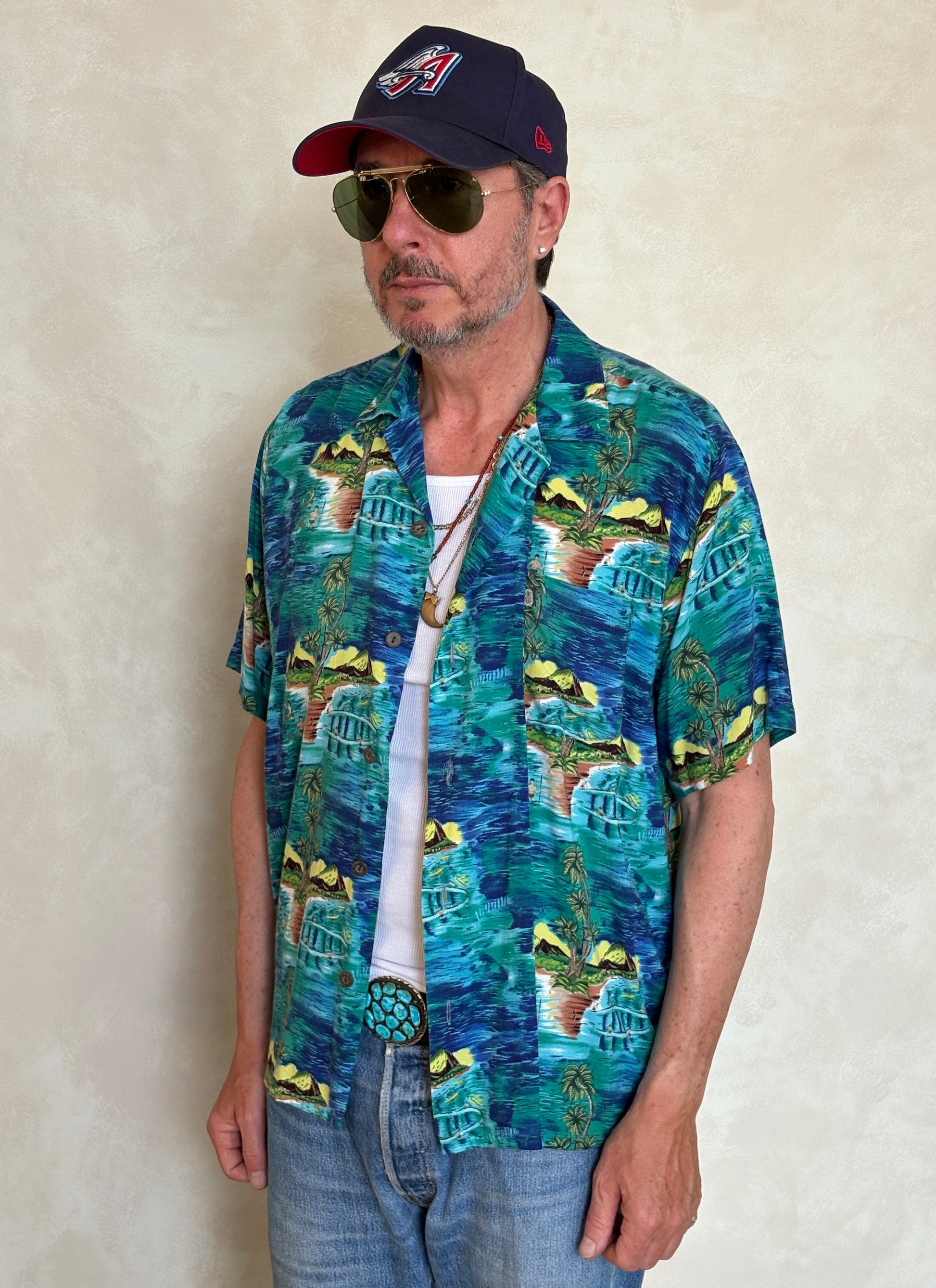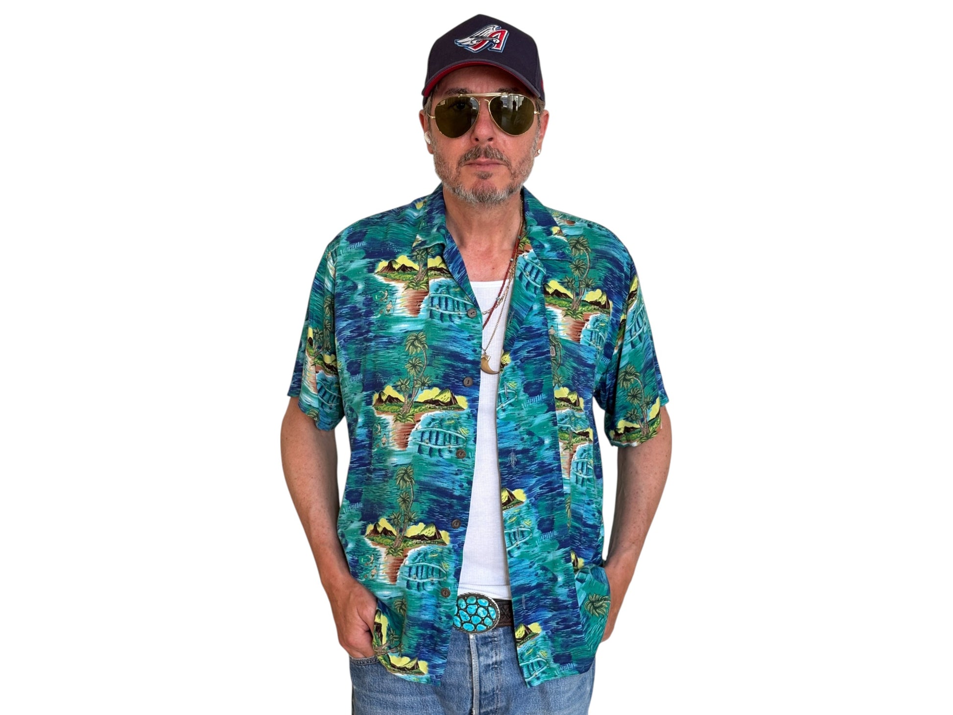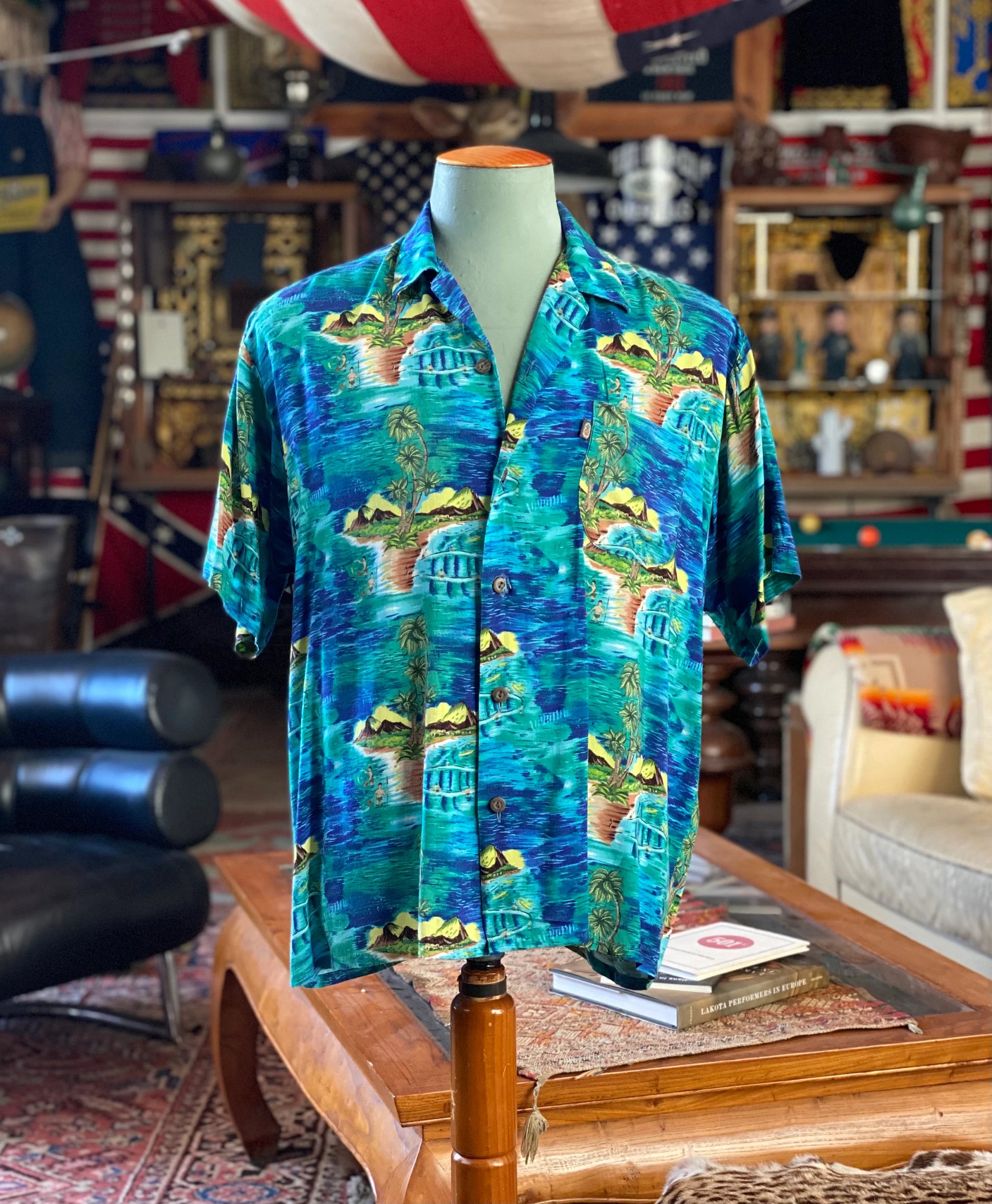 Vintage 90s Hawaiian Rayon Shirt by Ocean Current | Size Medium