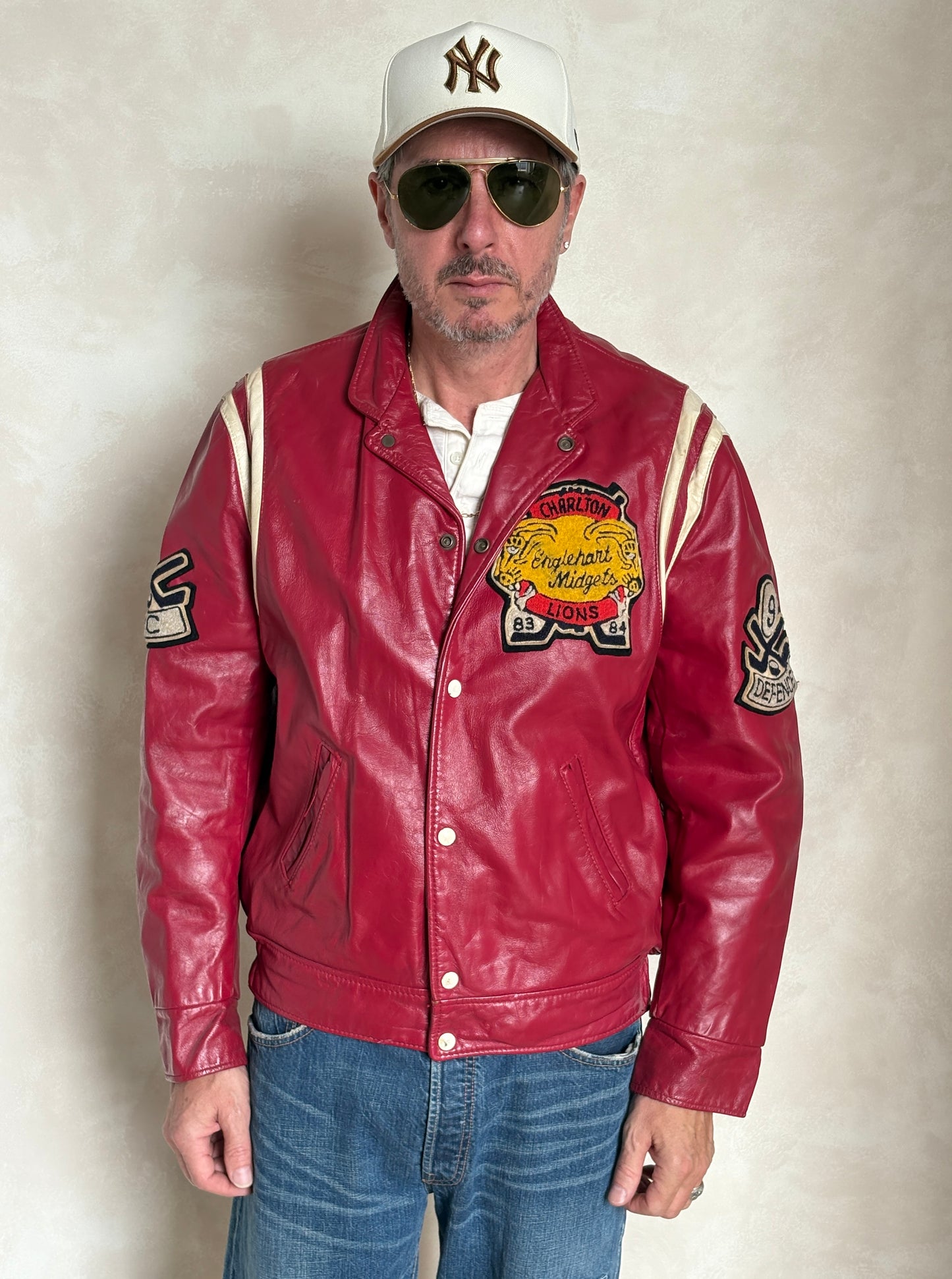 Description: Vintage 1984 Leather Lion Hockey Jacket