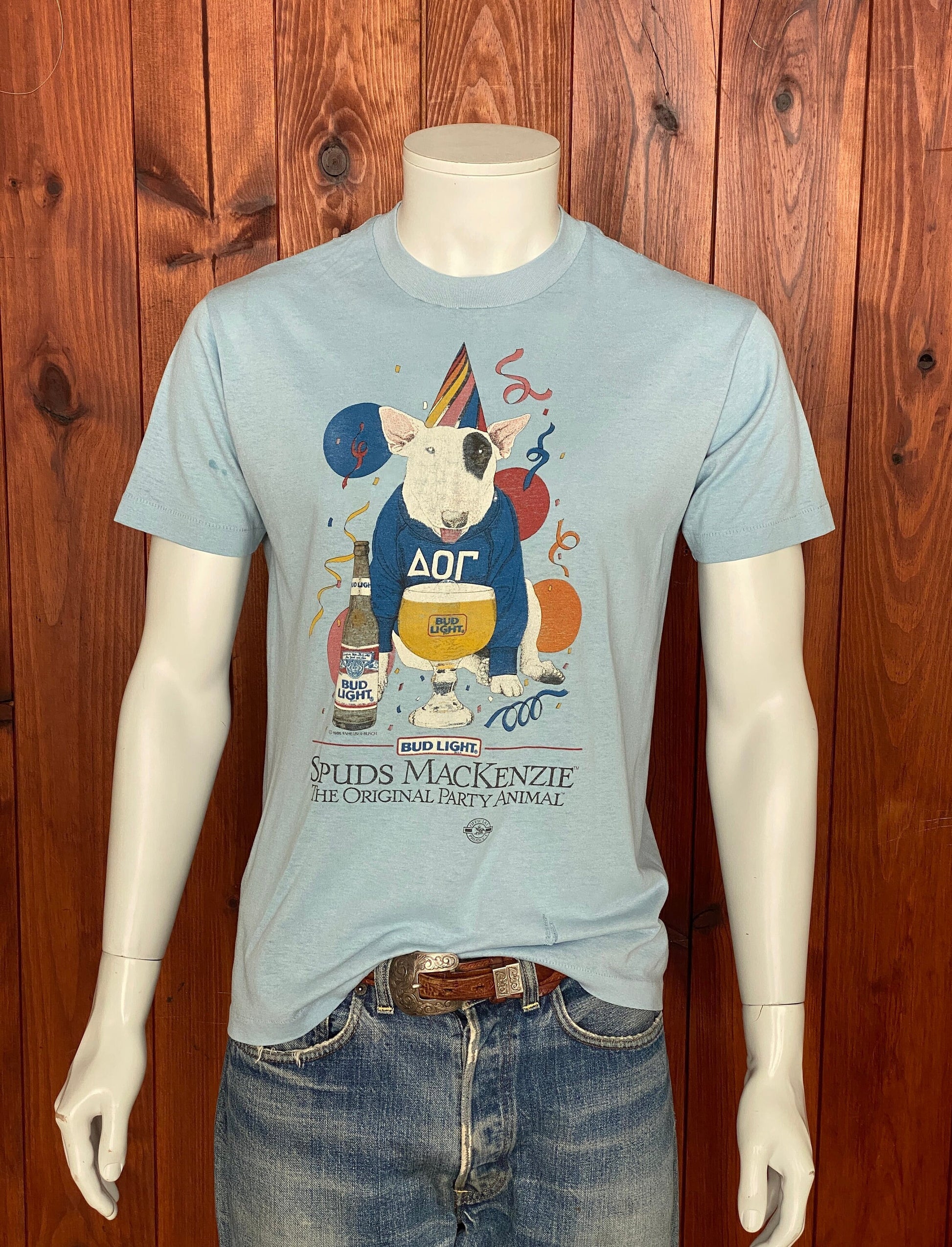 Large. Vintage 50/50 cotton Vintage 1986 Spud Mackenzie t shirt Made In USA