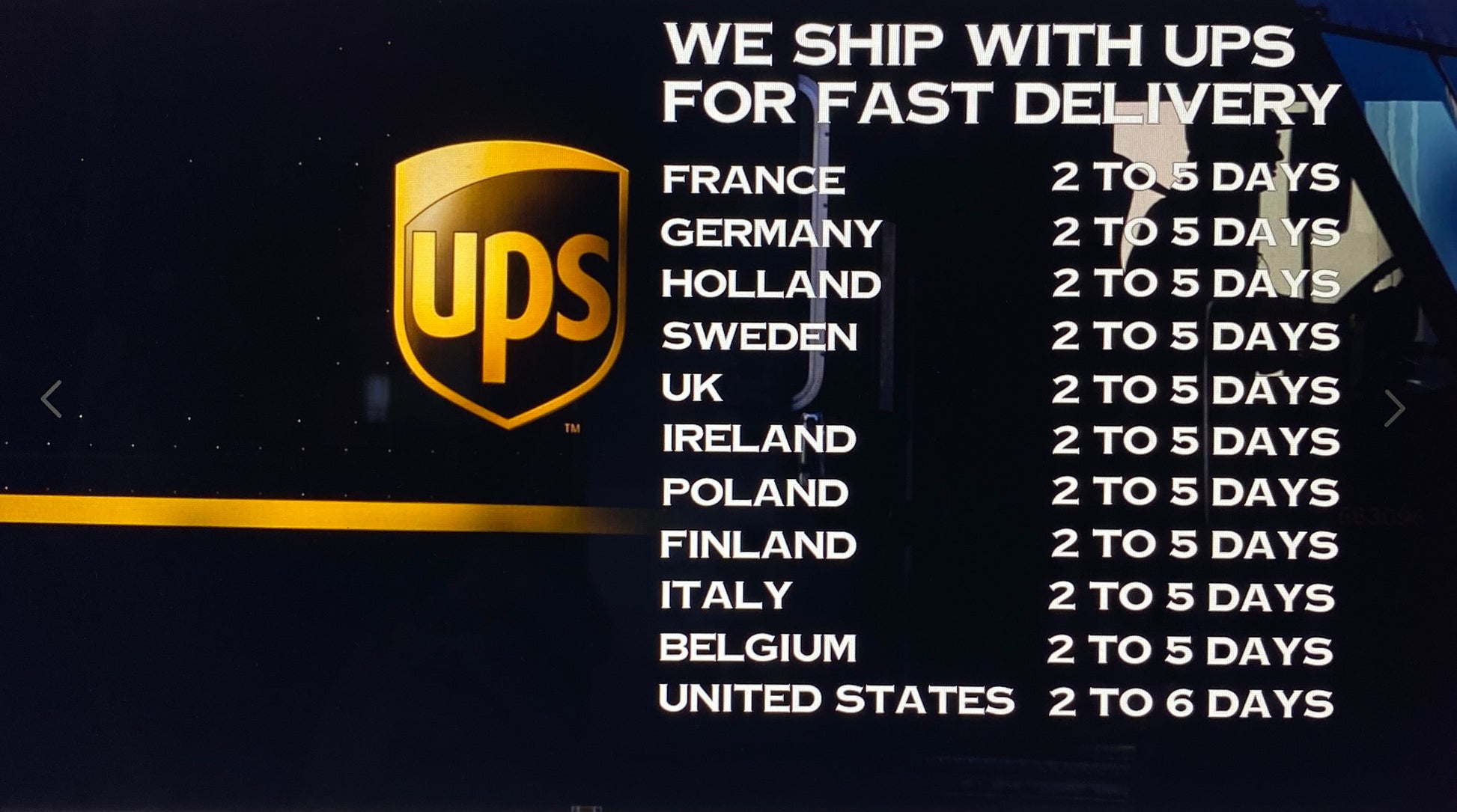 SHIPPING WITH UPS. Easy Tracking and Fast Delivery.