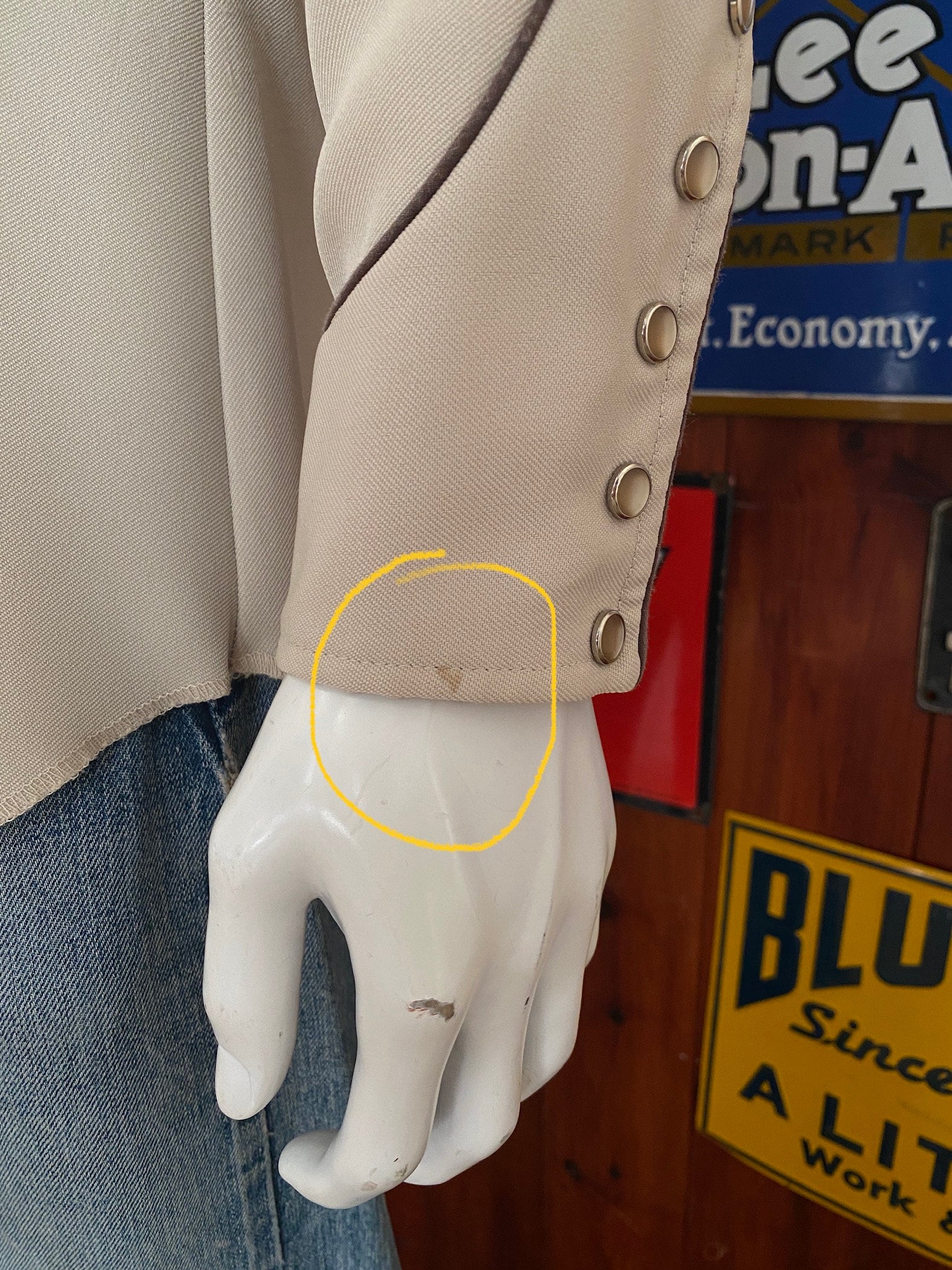 Condition: Very good, small stain on the sleeve shown in pictures.