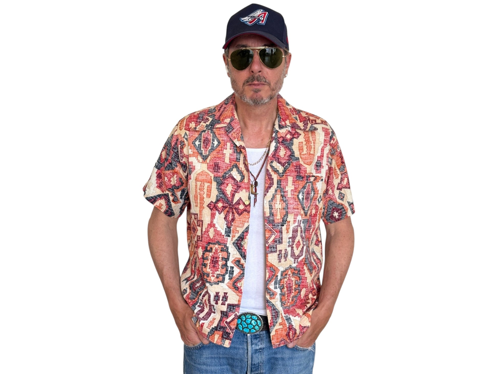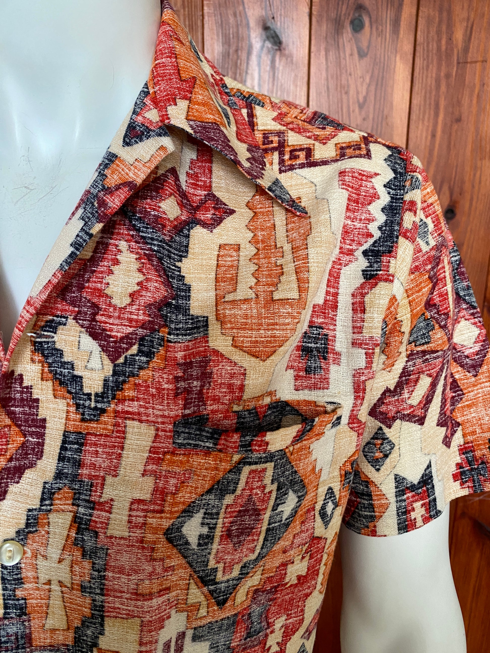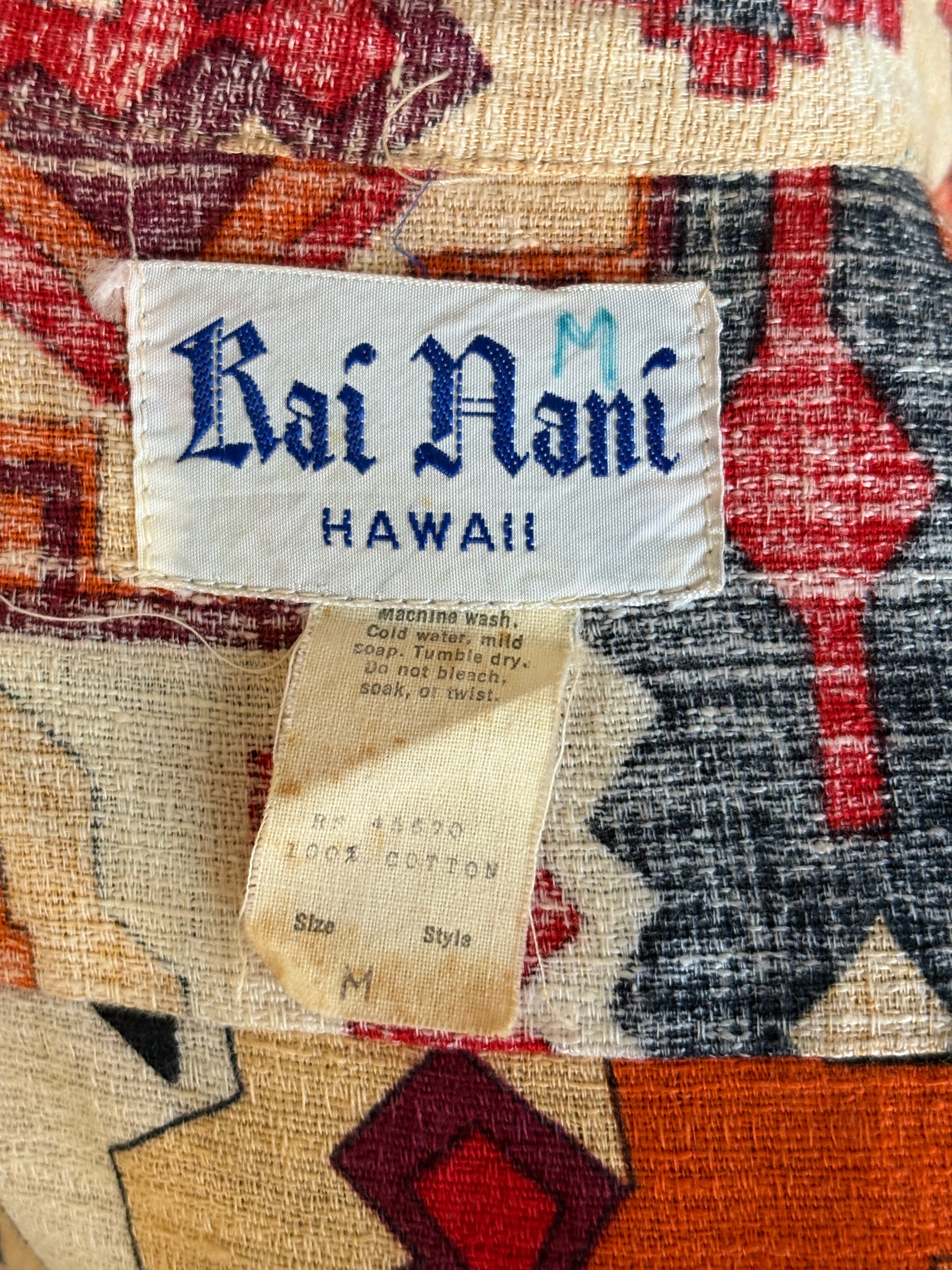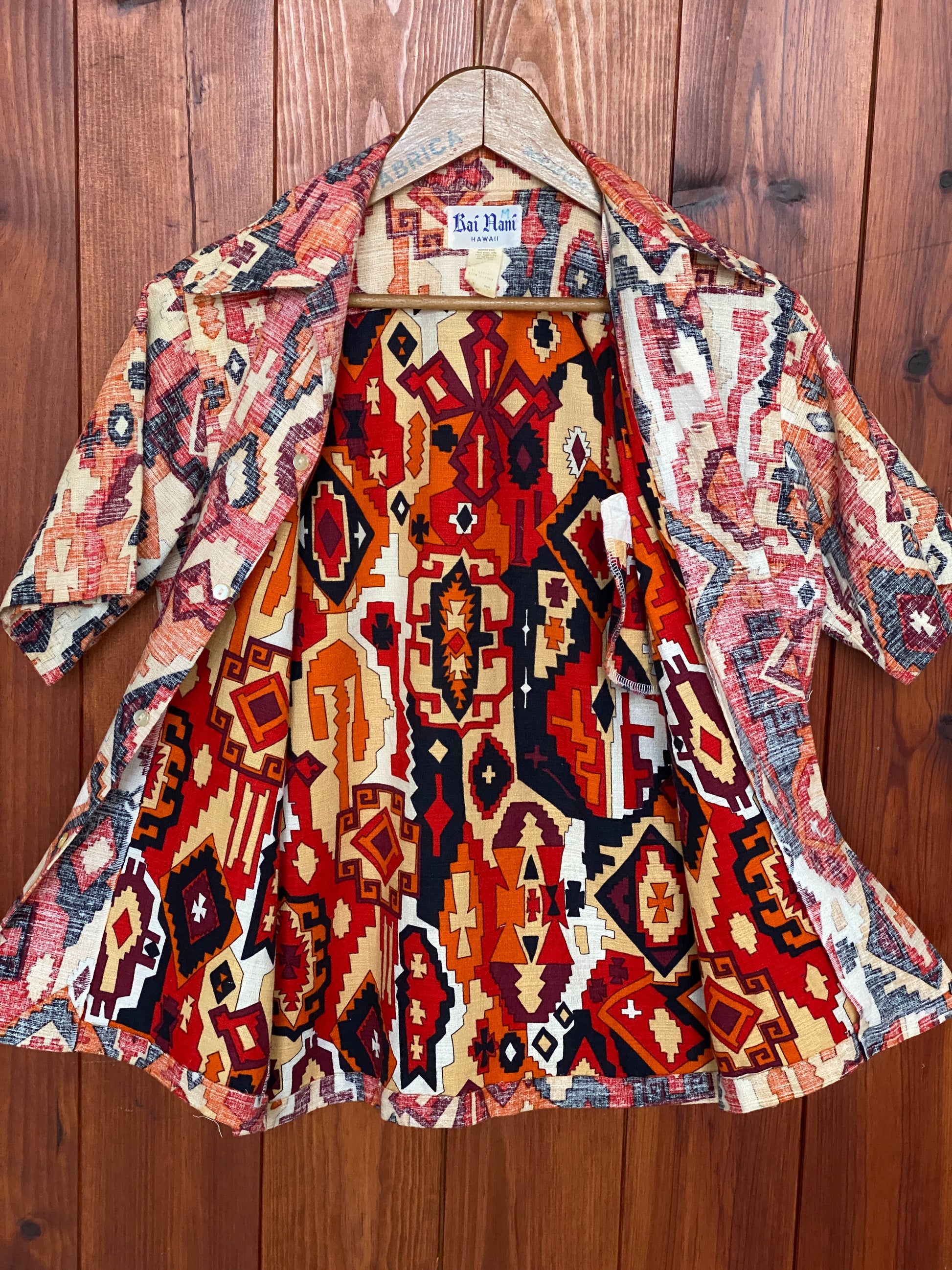 Description: Beautiful Vintage 70s Hawaiian Barkcloth cotton shirt.