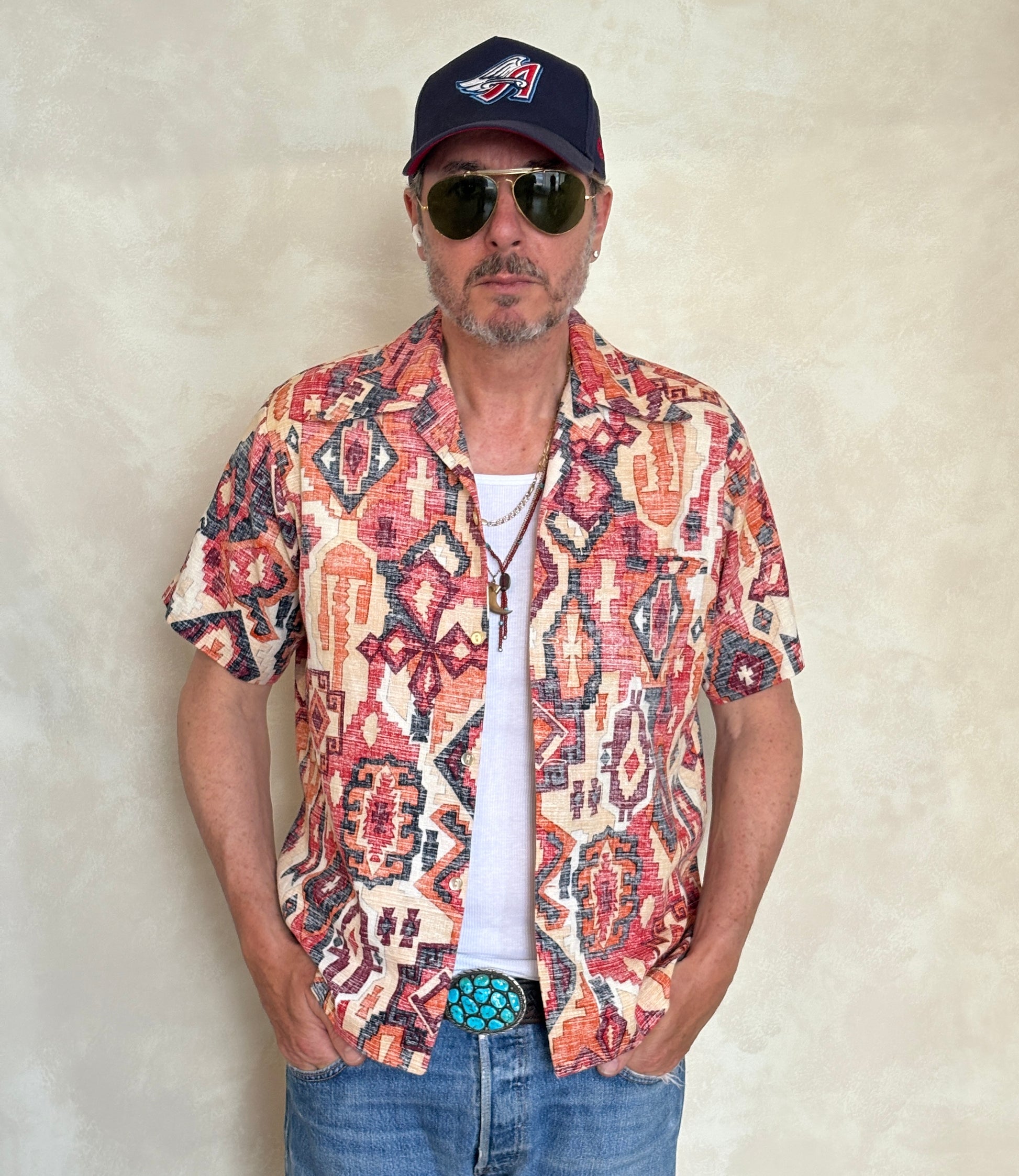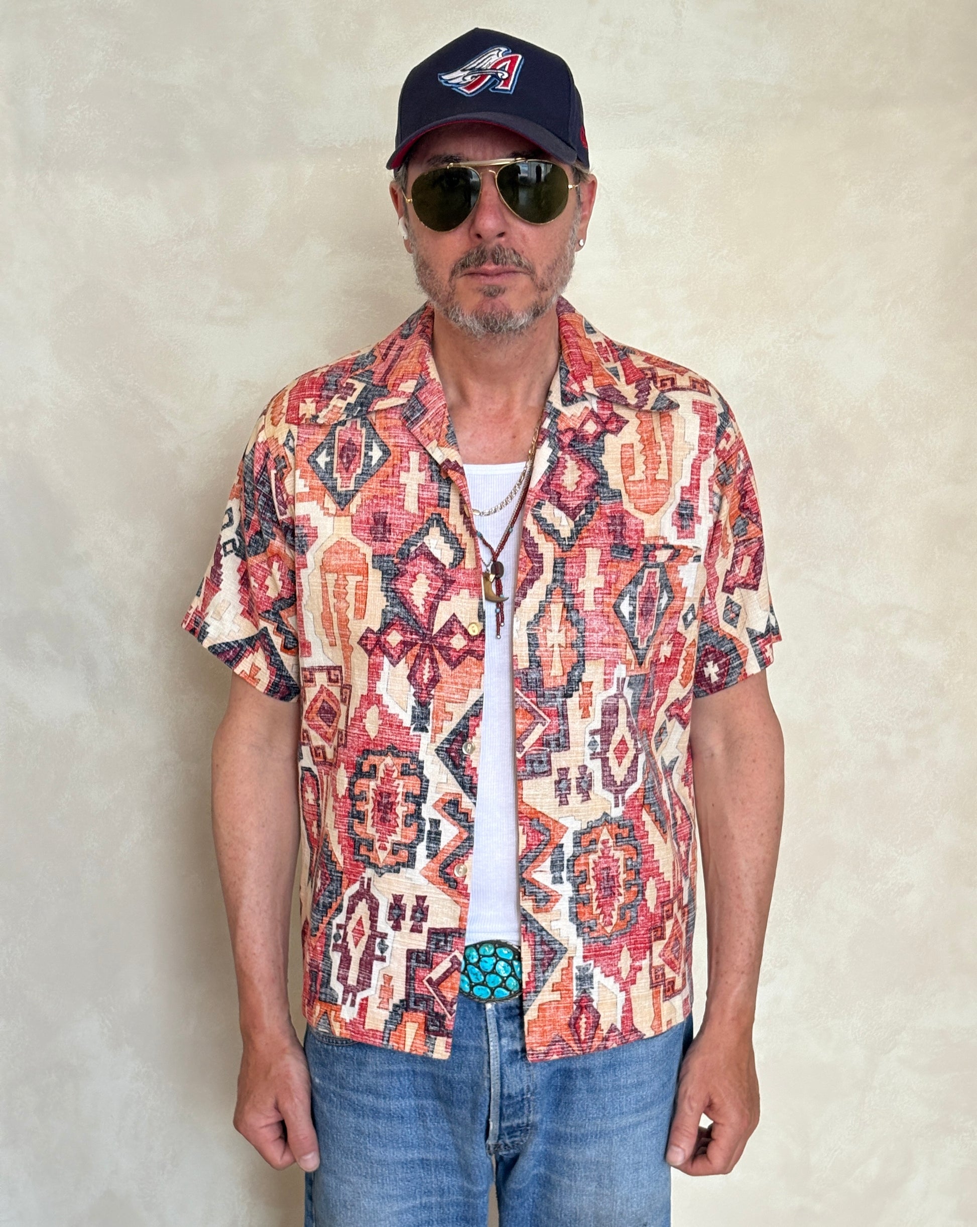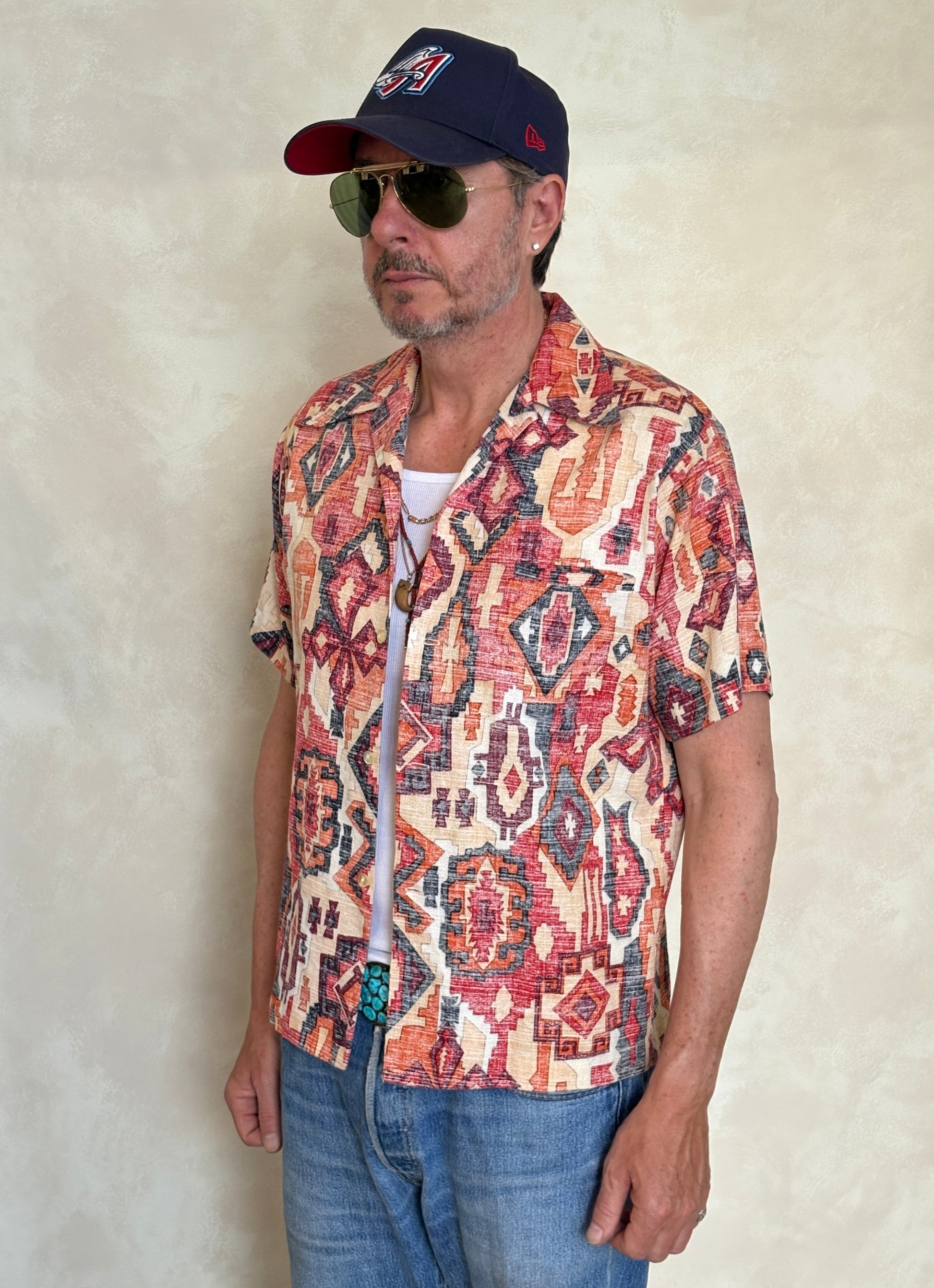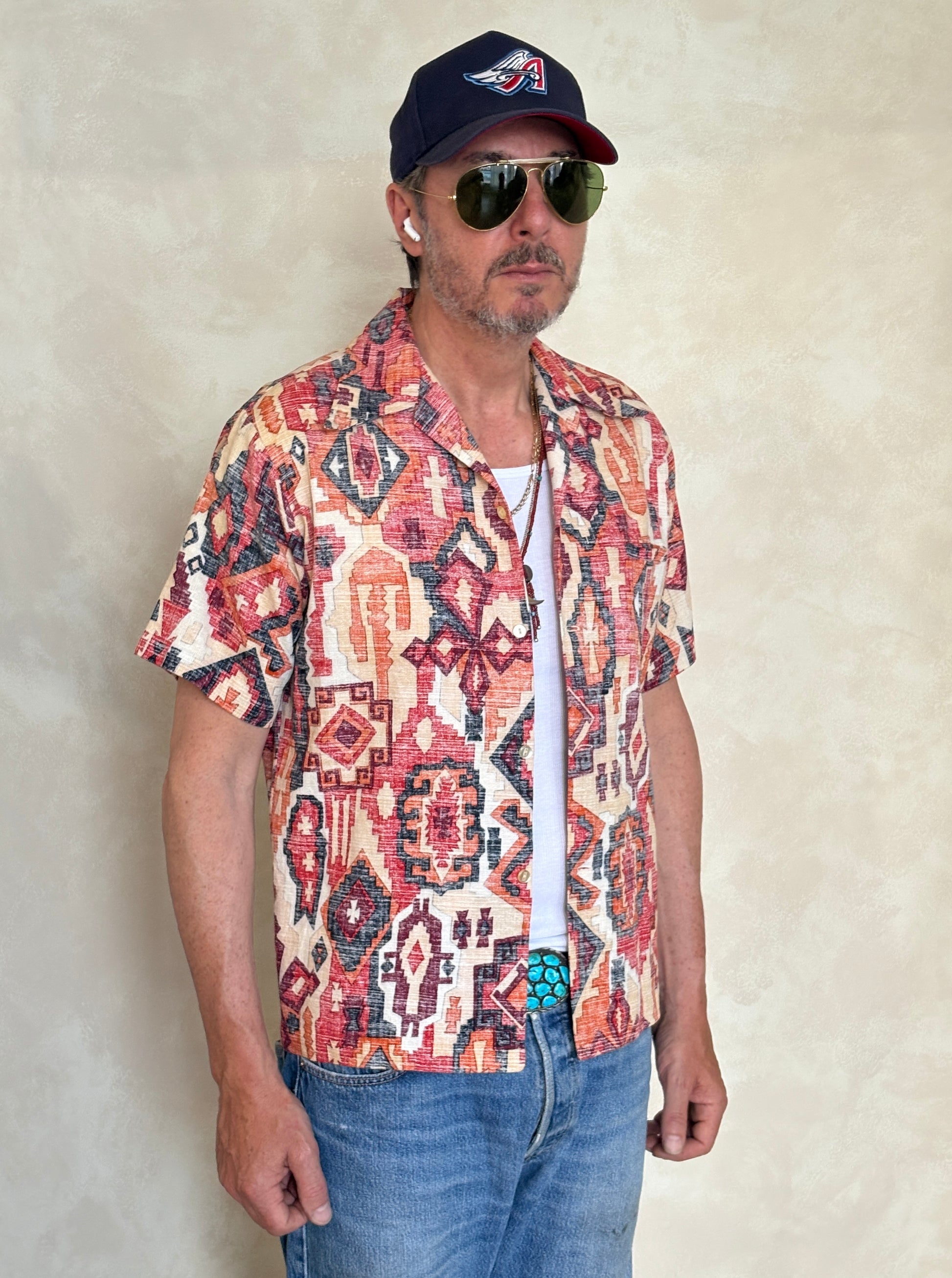 Description: Beautiful Vintage 70s Hawaiian Barkcloth cotton shirt.