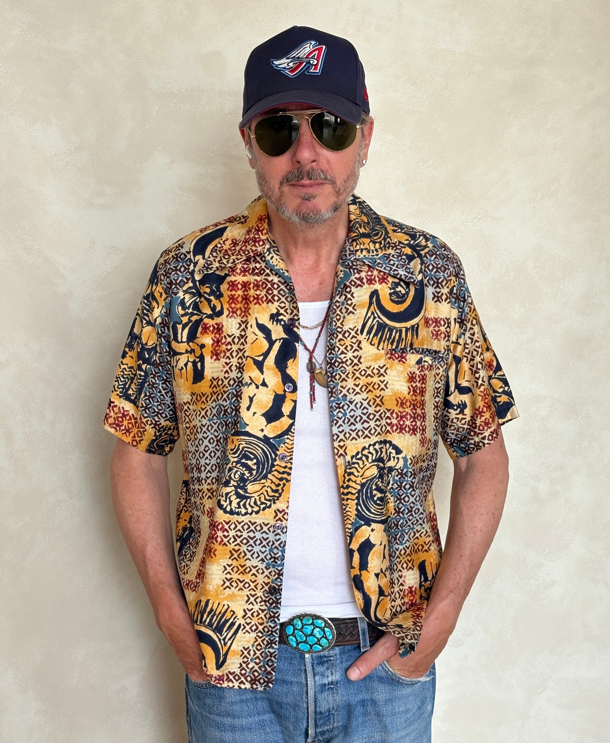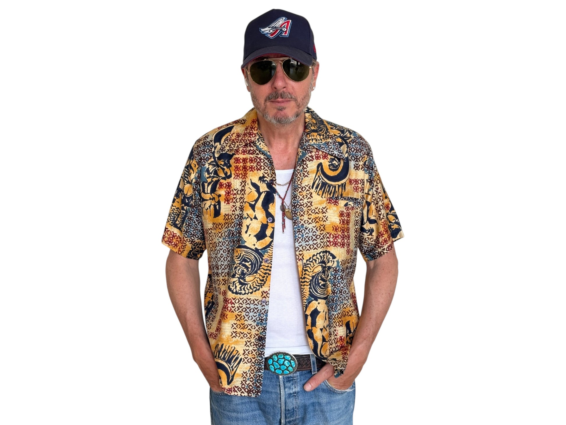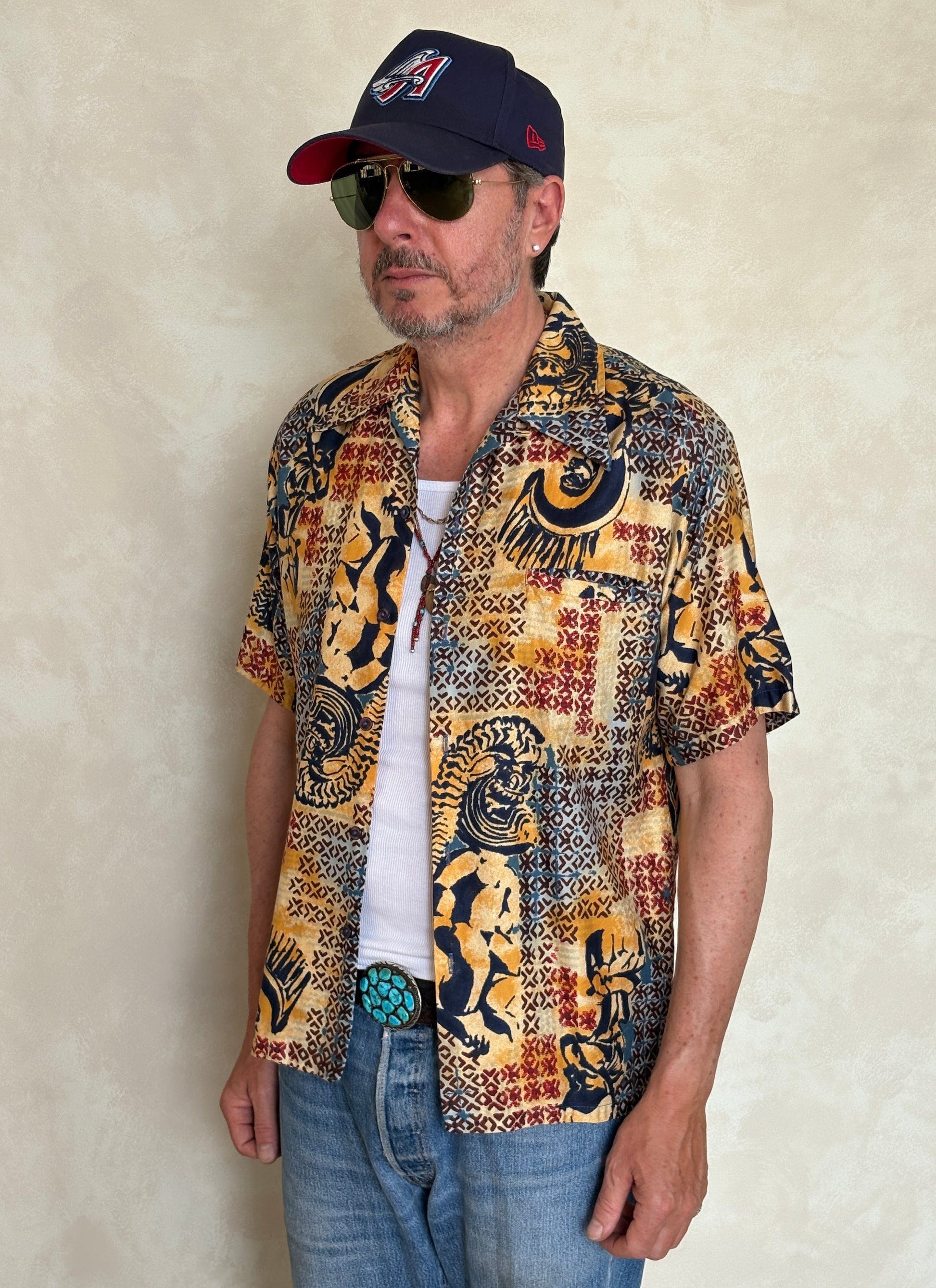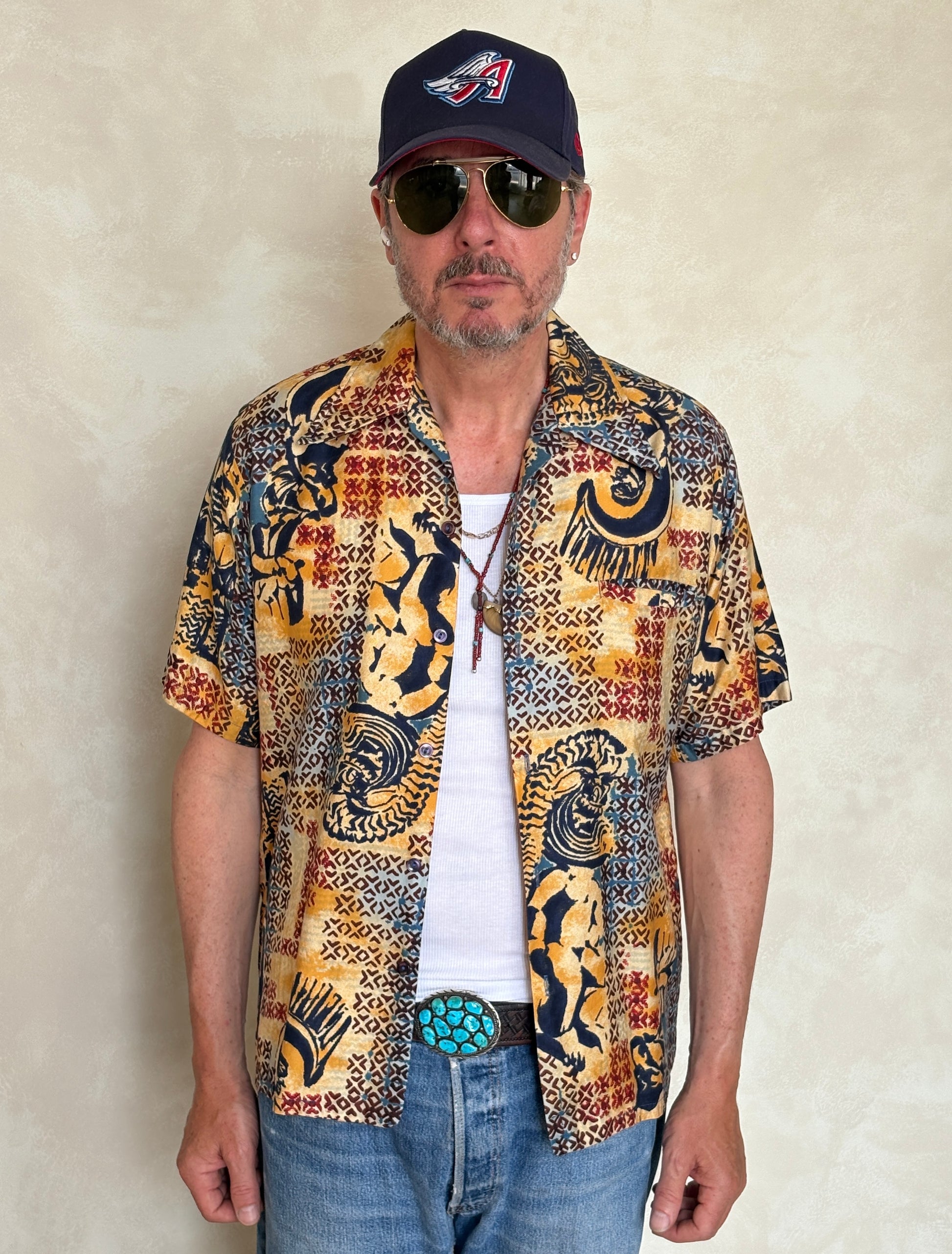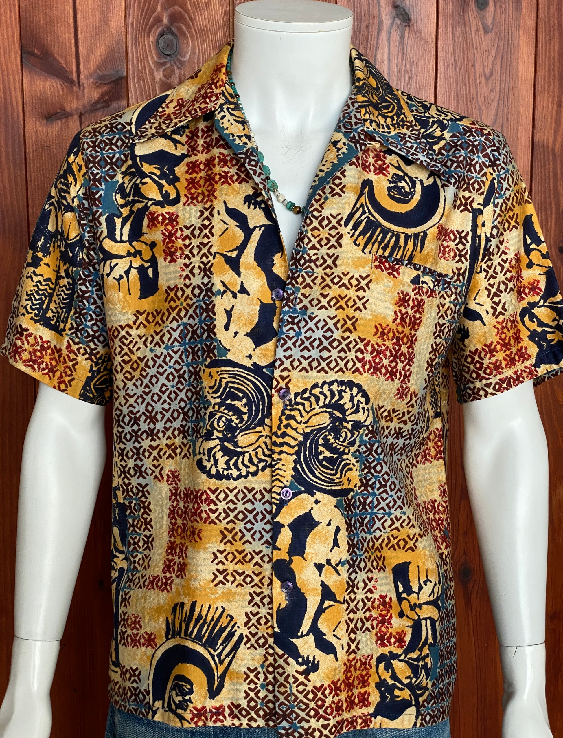 Med. Vintage 70s Hawaiian satin cotton shirt
