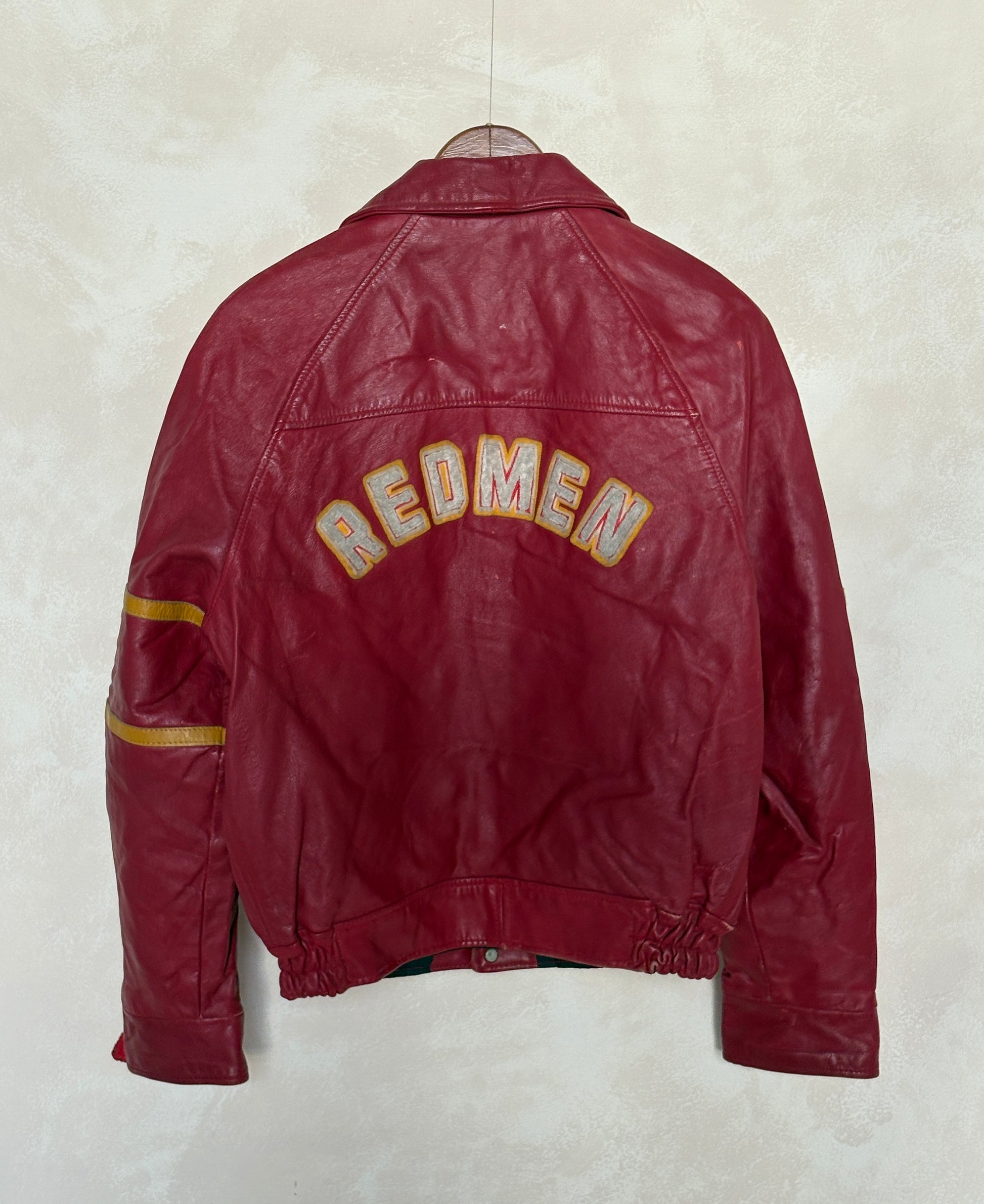 🧥 Vintage 1970s Redmen Leather Varsity Jacket — Canadian College Sports Style