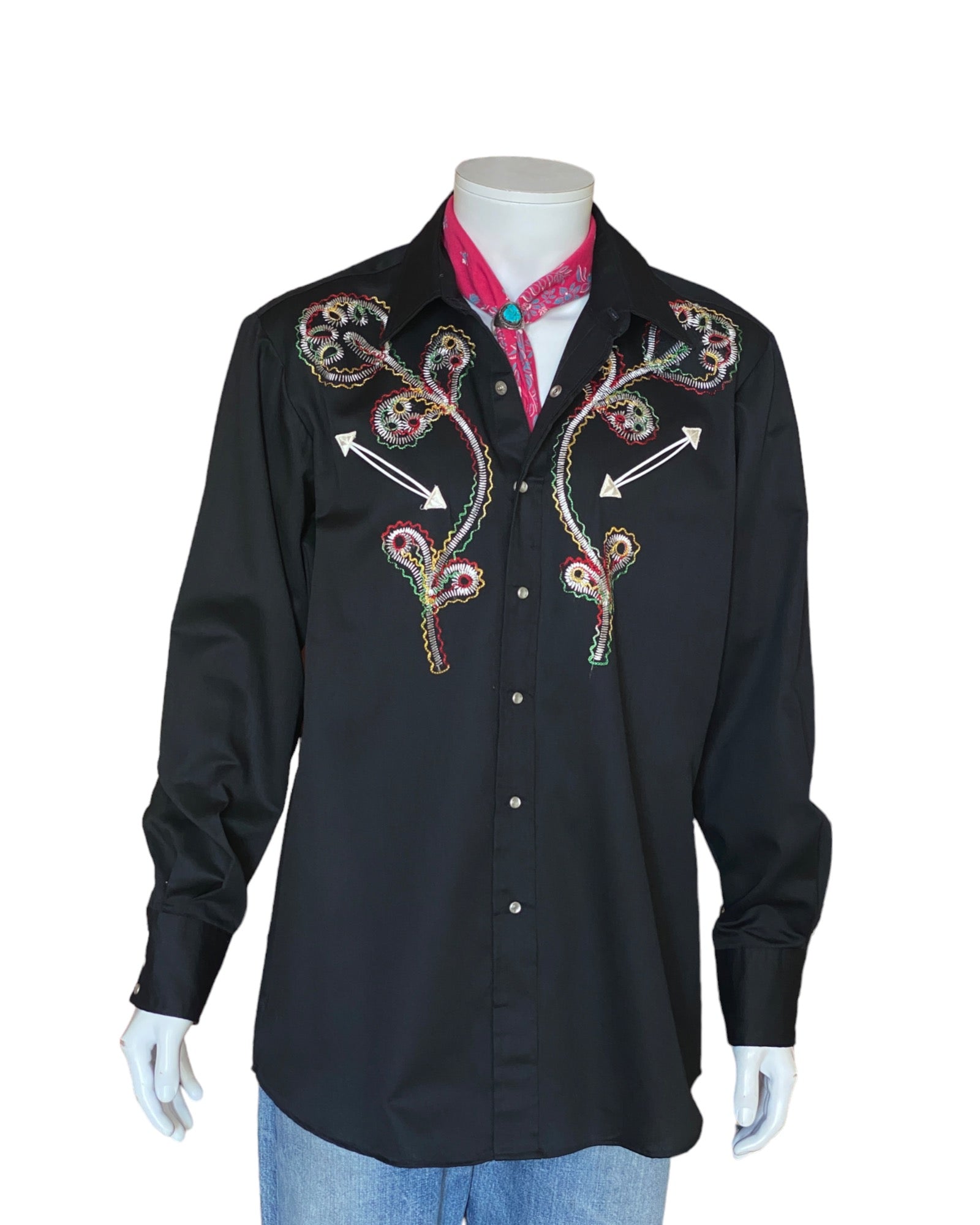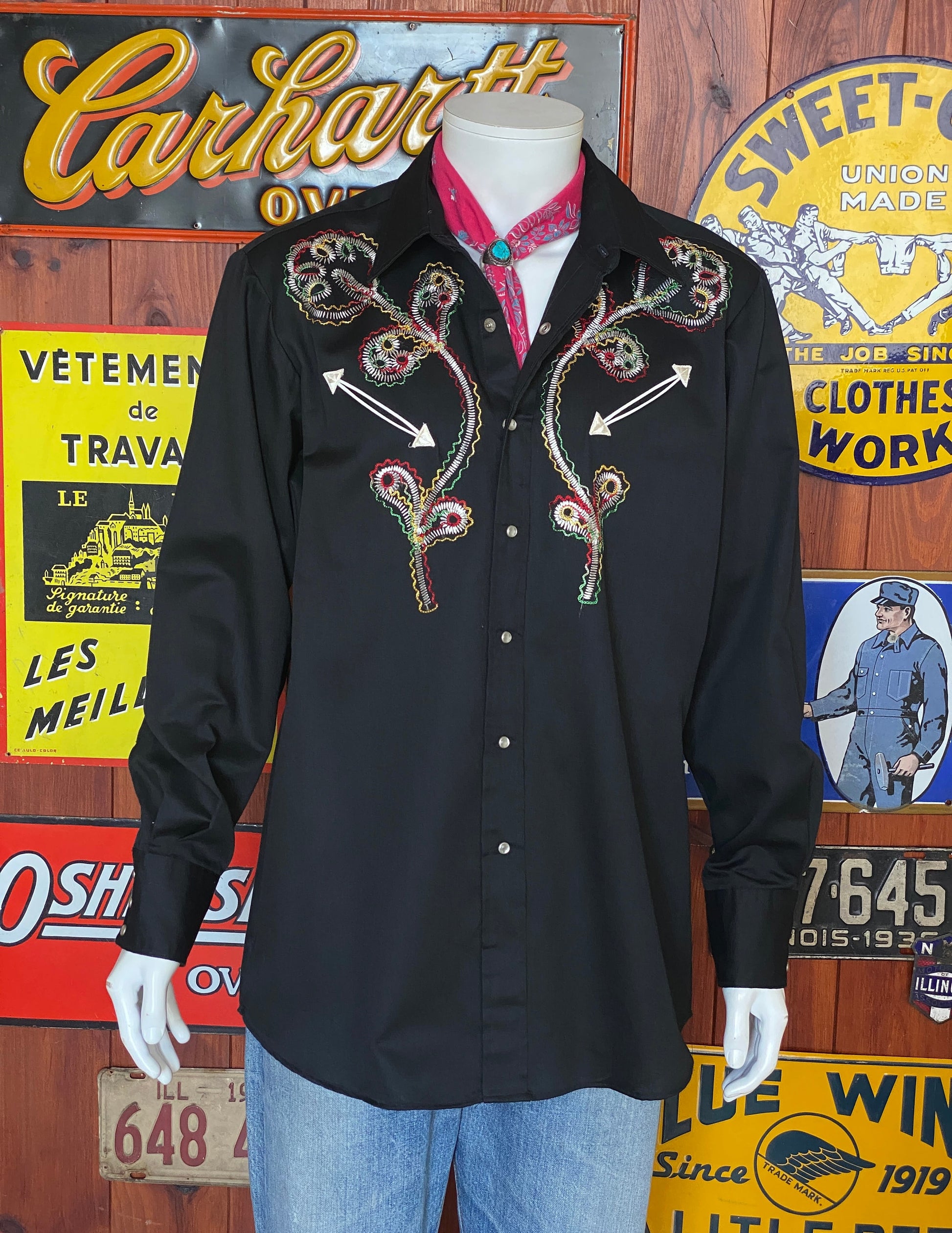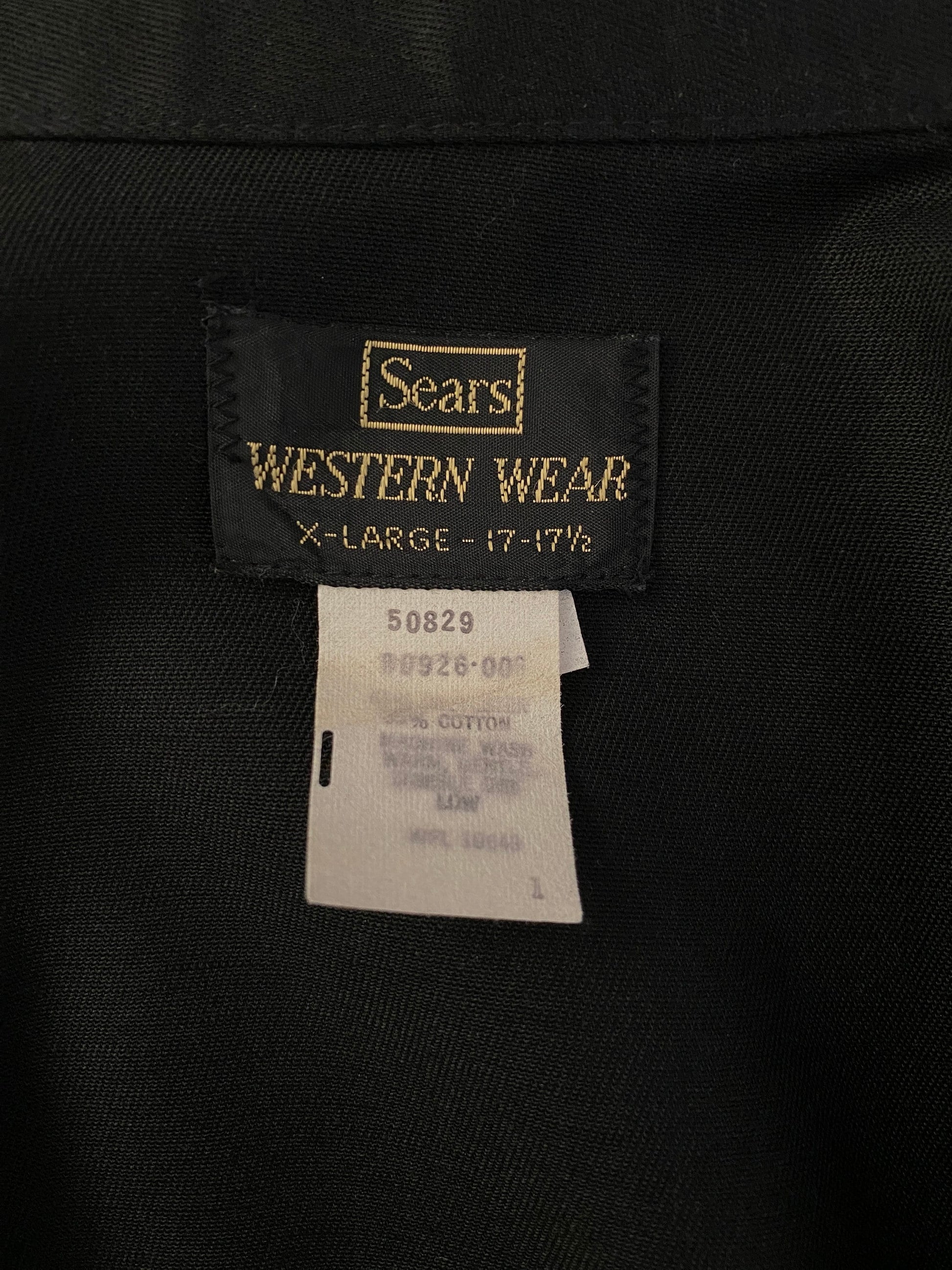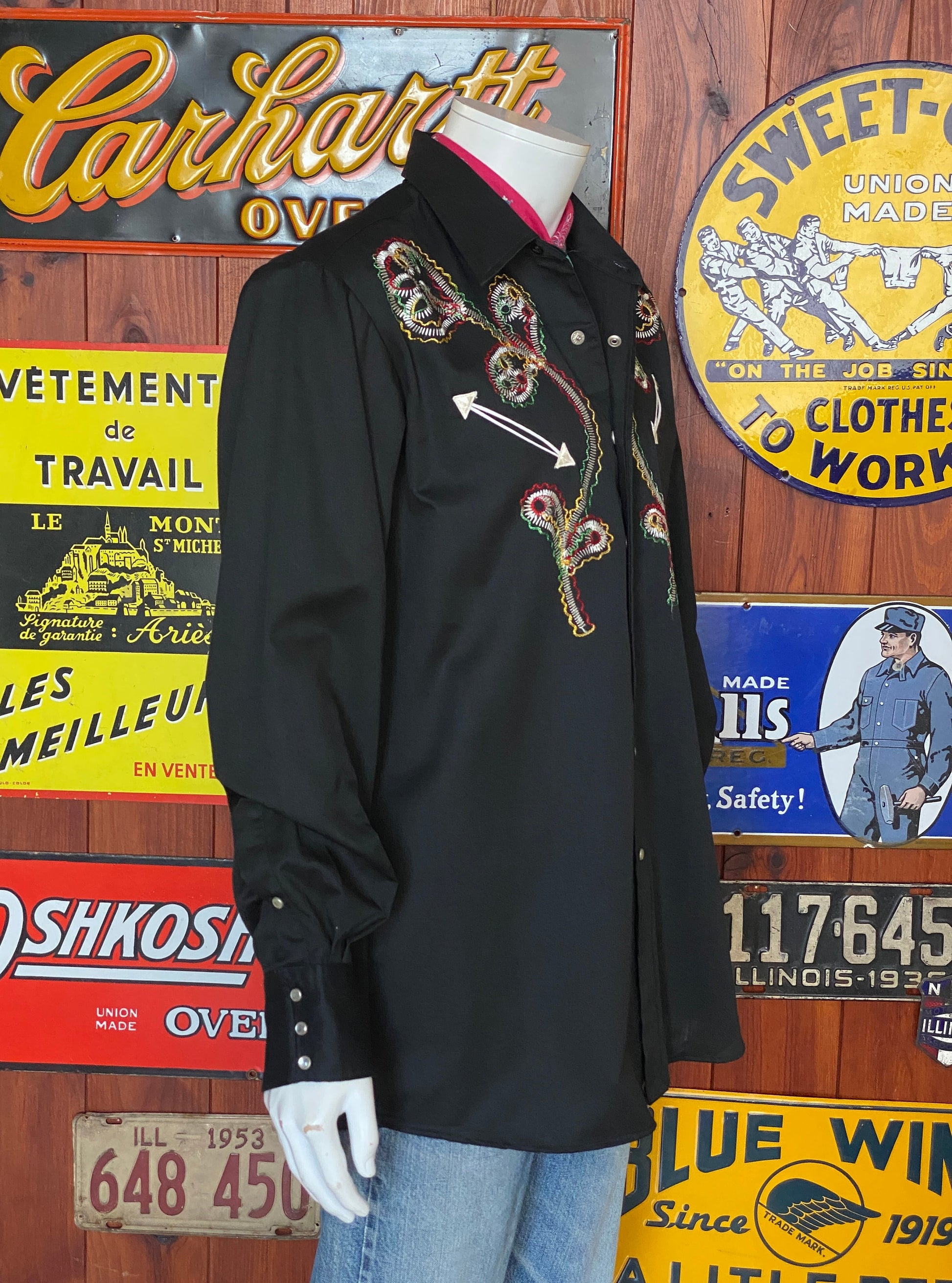 Description: Superb 70s Vintage embroidered western Cotton polyester shirt made by Sears, Made in USA.
