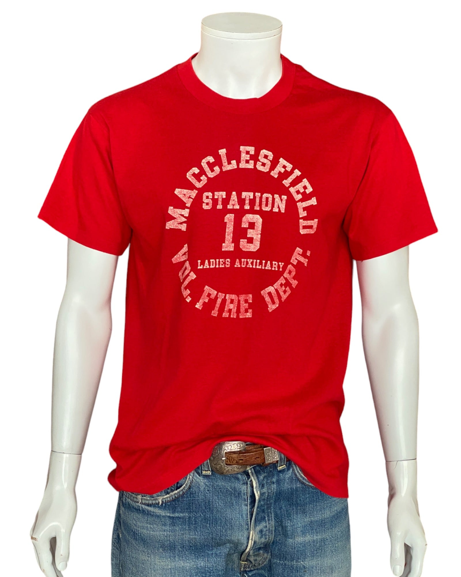 Description: Vintage 50/50 cotton 80s Fire Dept T-shirt. Made in USA.