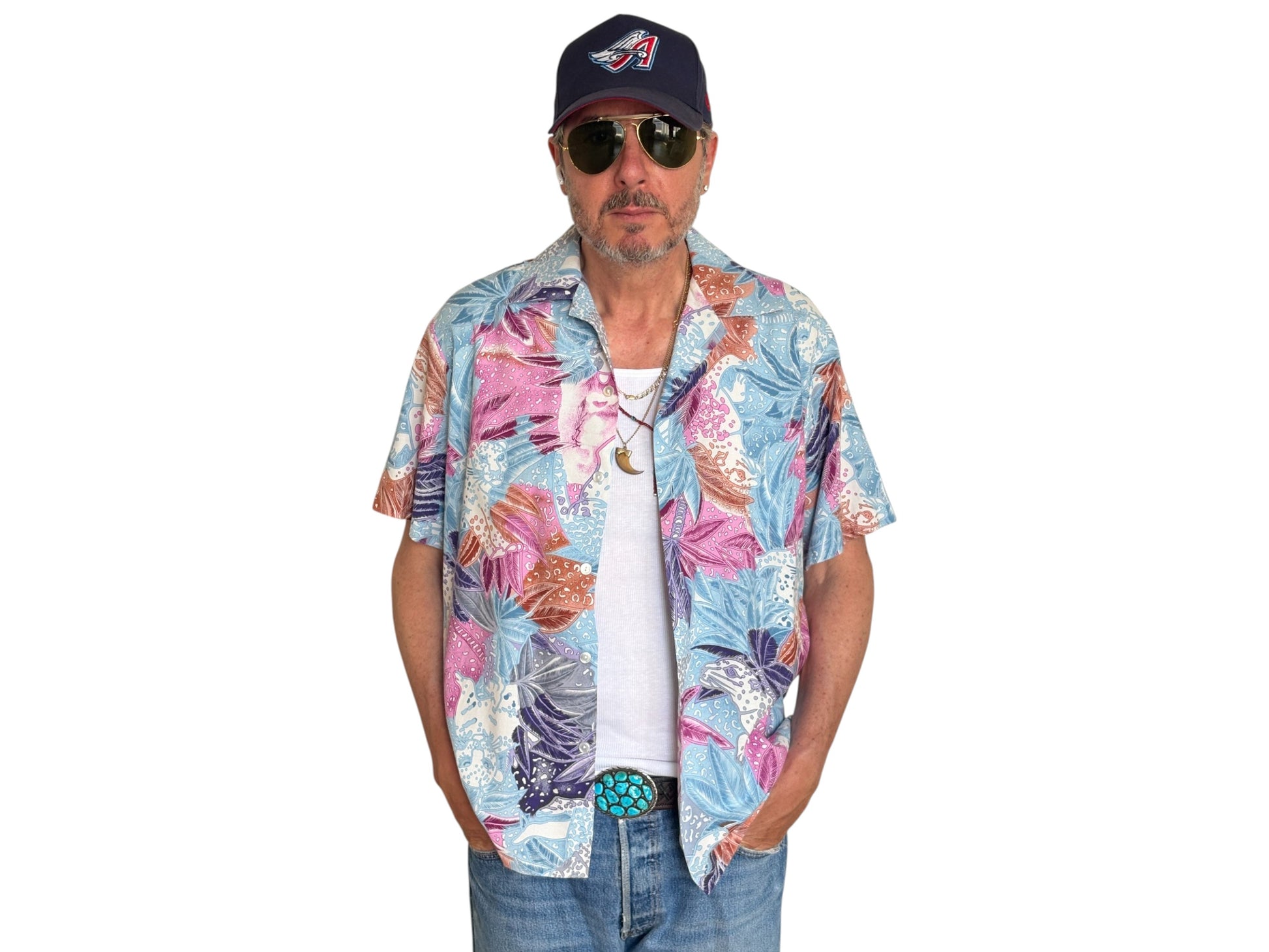 Description: Beautiful Vintage 80s Hawaiian cotton shirt Made by Hilo Hattie in Hawaii
