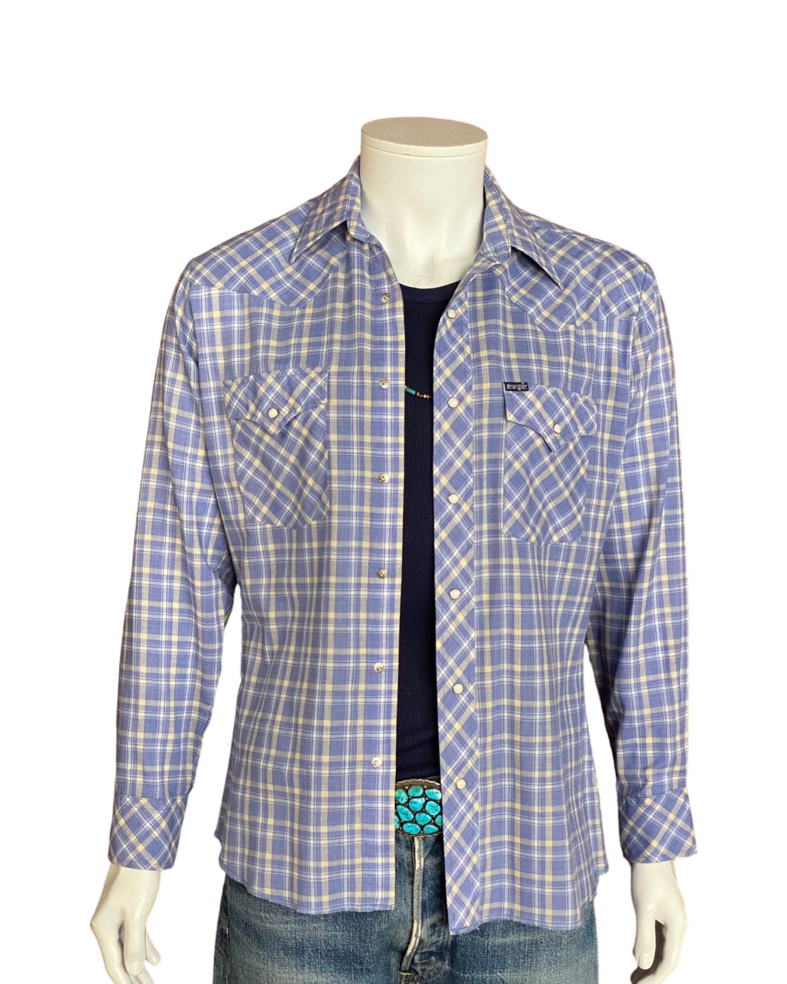 Size Medium. Vintage Wrangler 80s plaid western shirt.