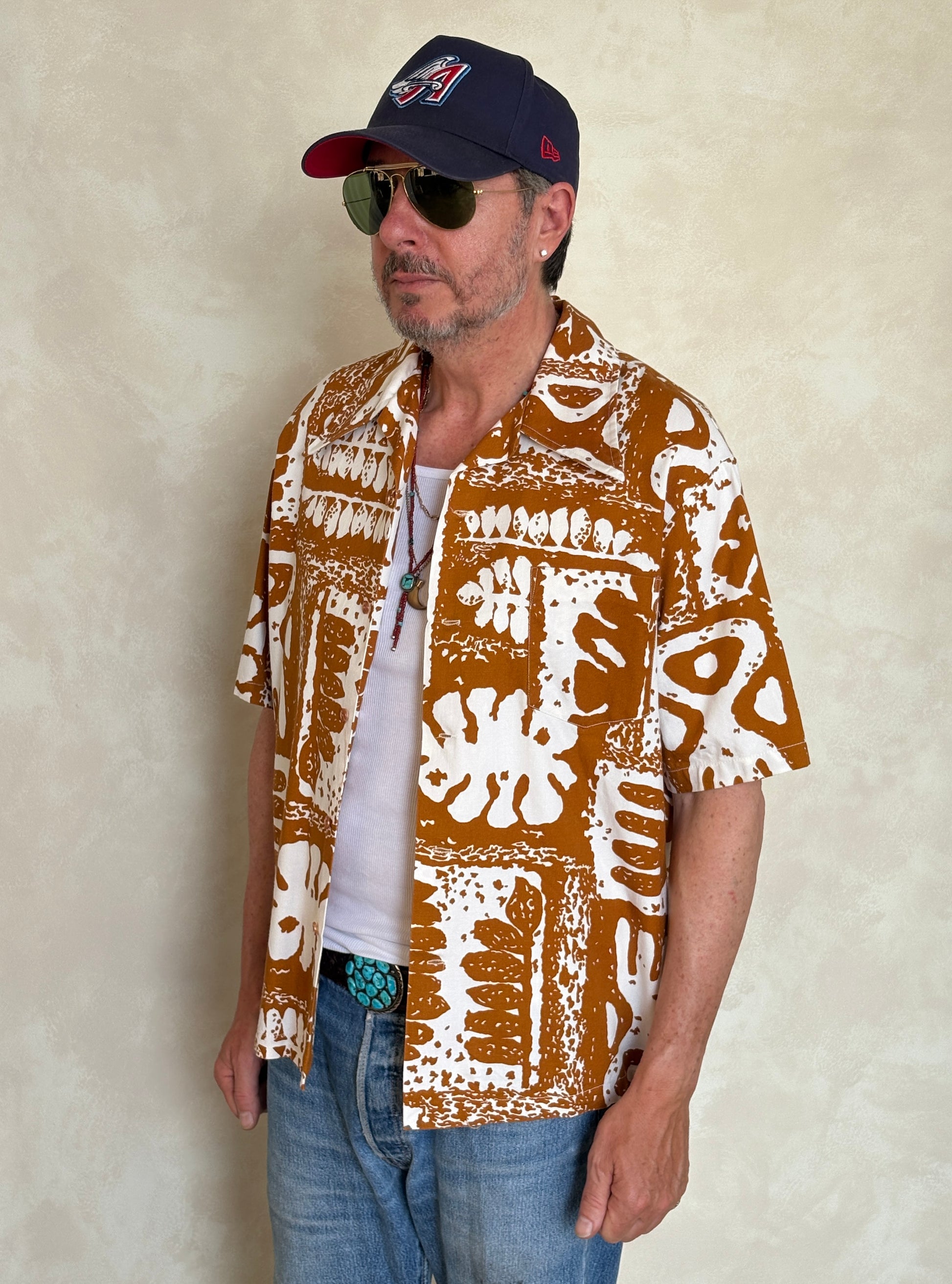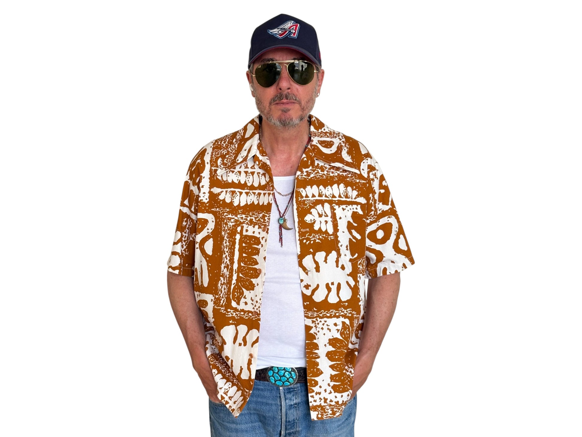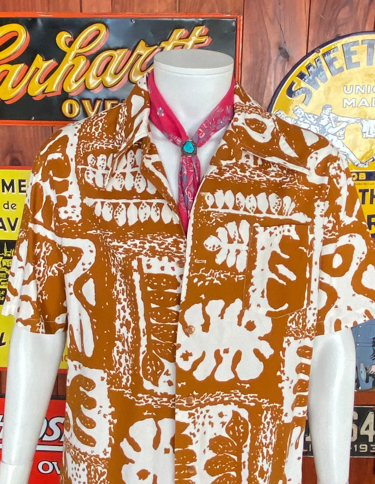 Description: Beautiful Vintage 70s Hawaiian satin cotton shirt made by Jantzen