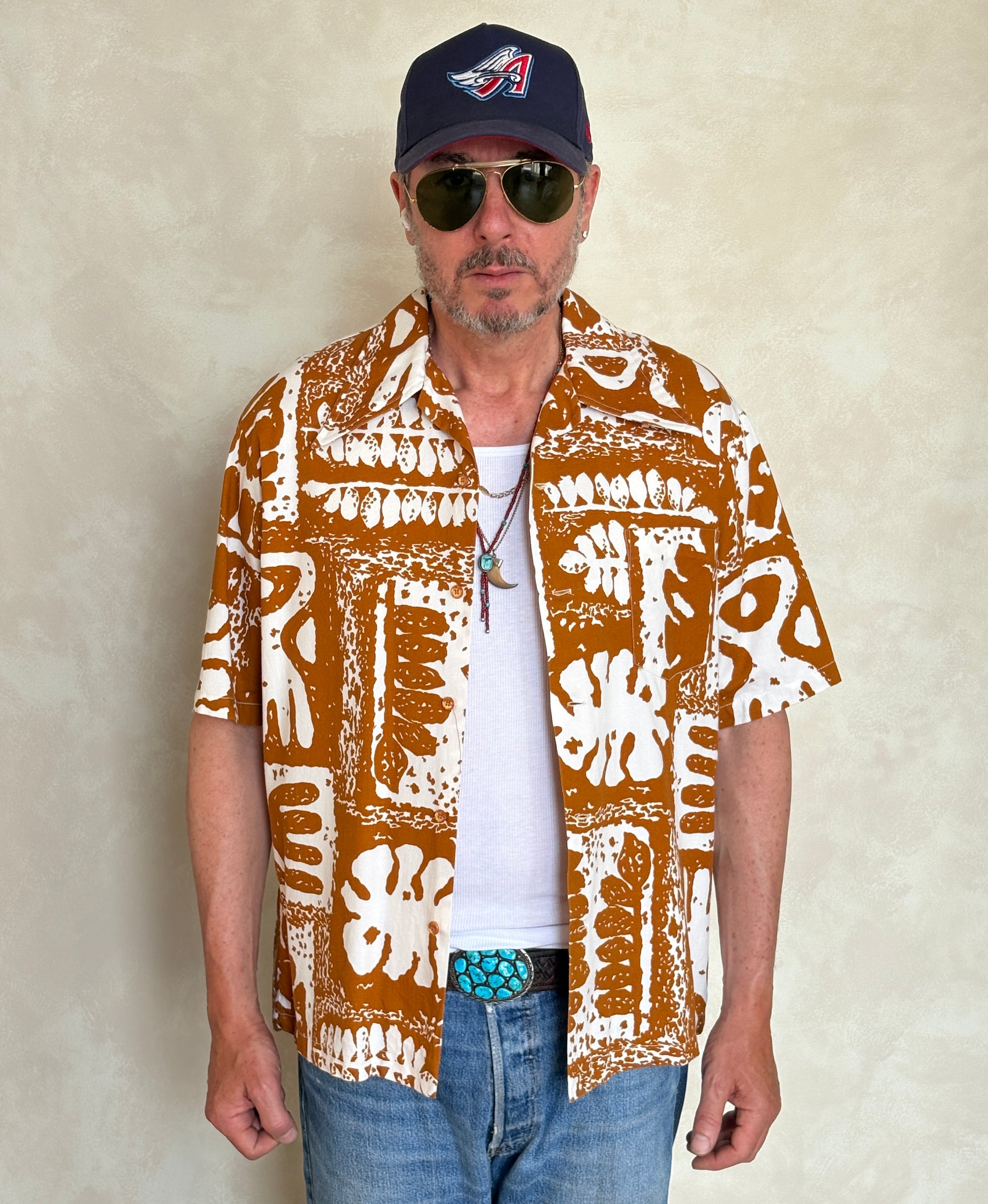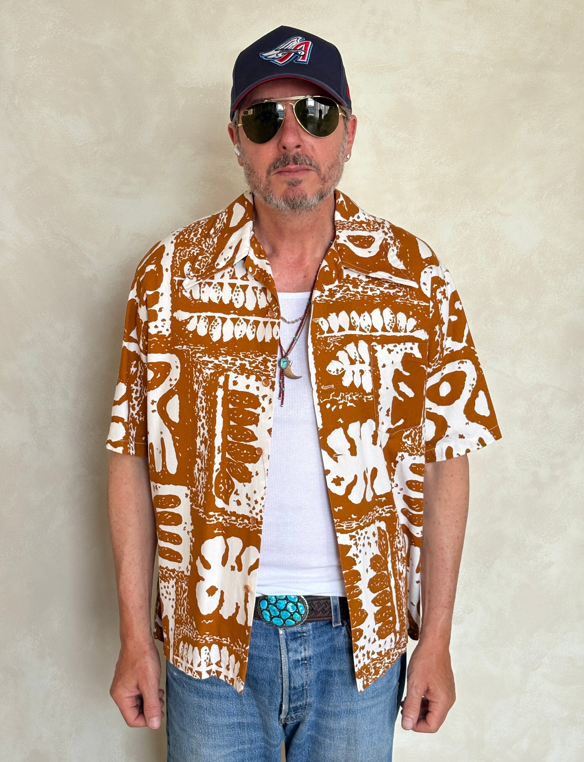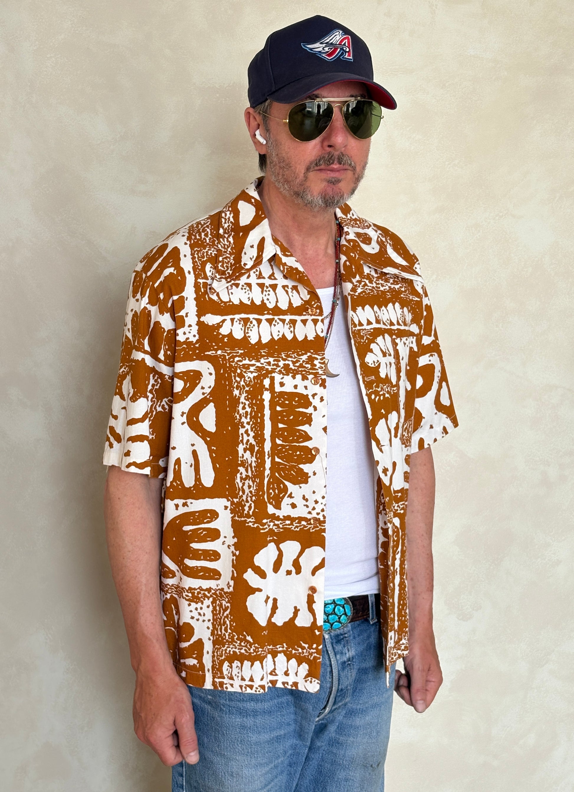 Description: Beautiful Vintage 70s Hawaiian satin cotton shirt made by Jantzen