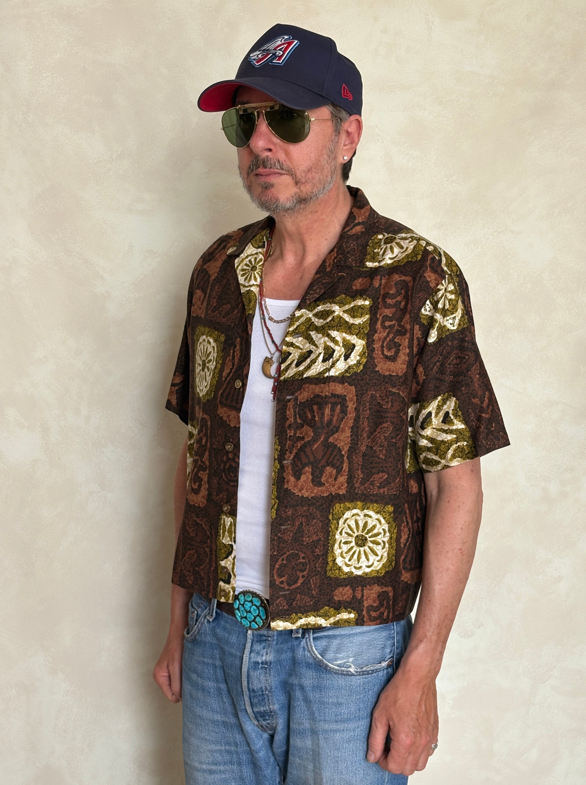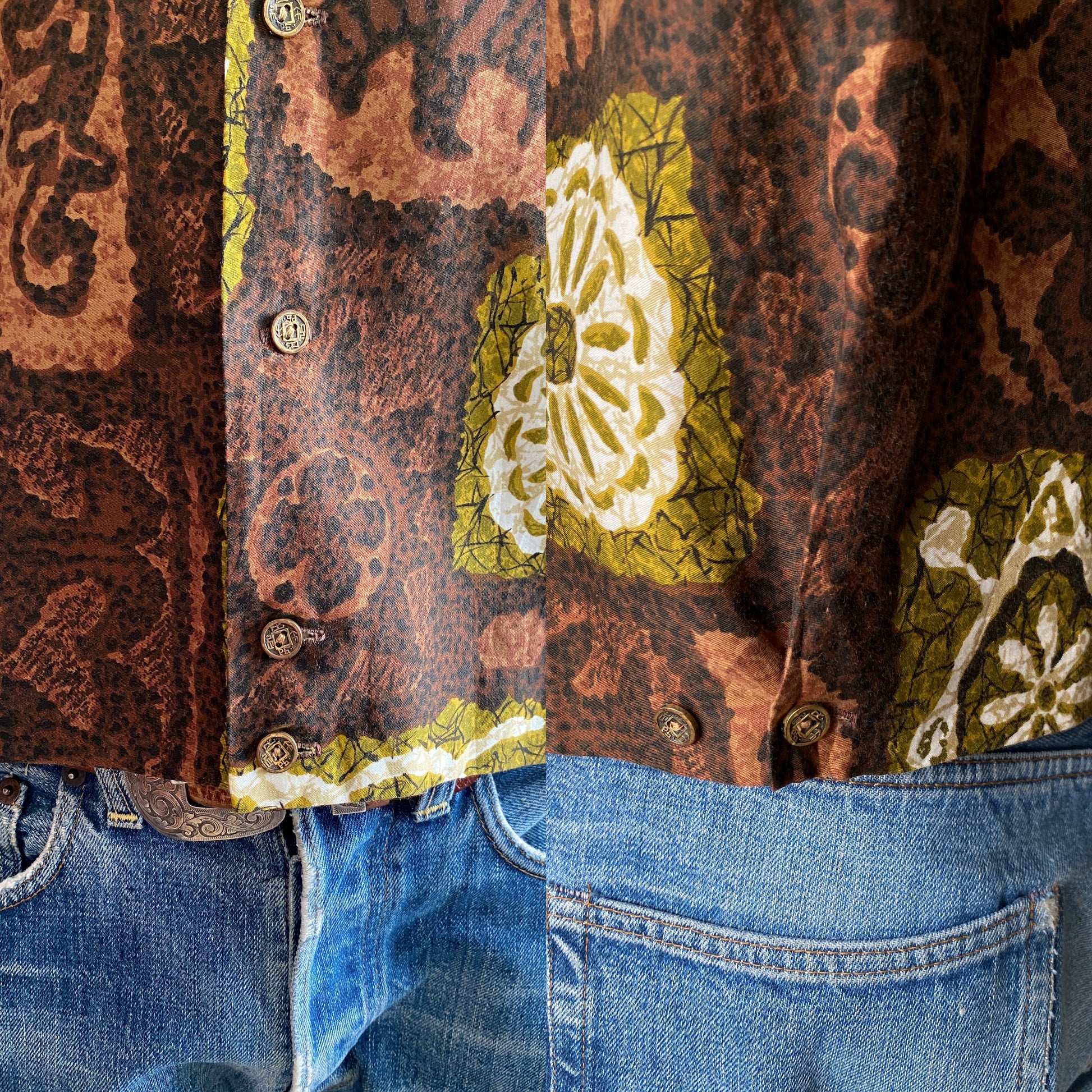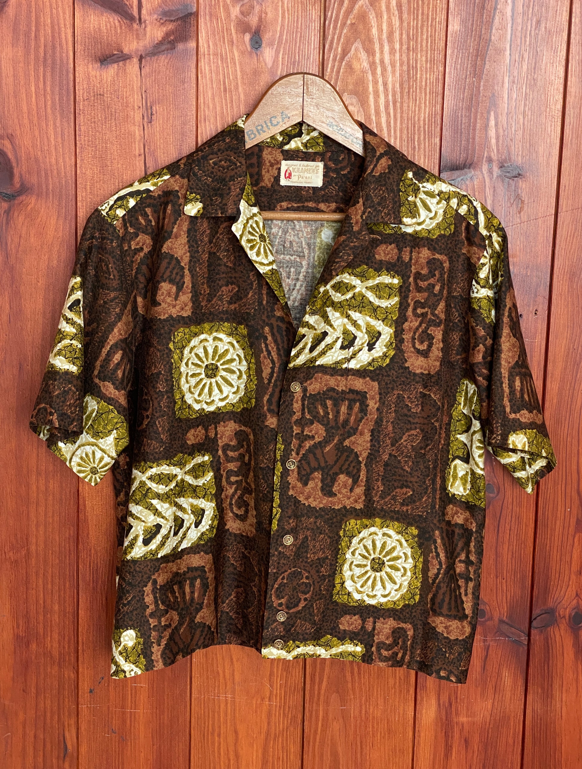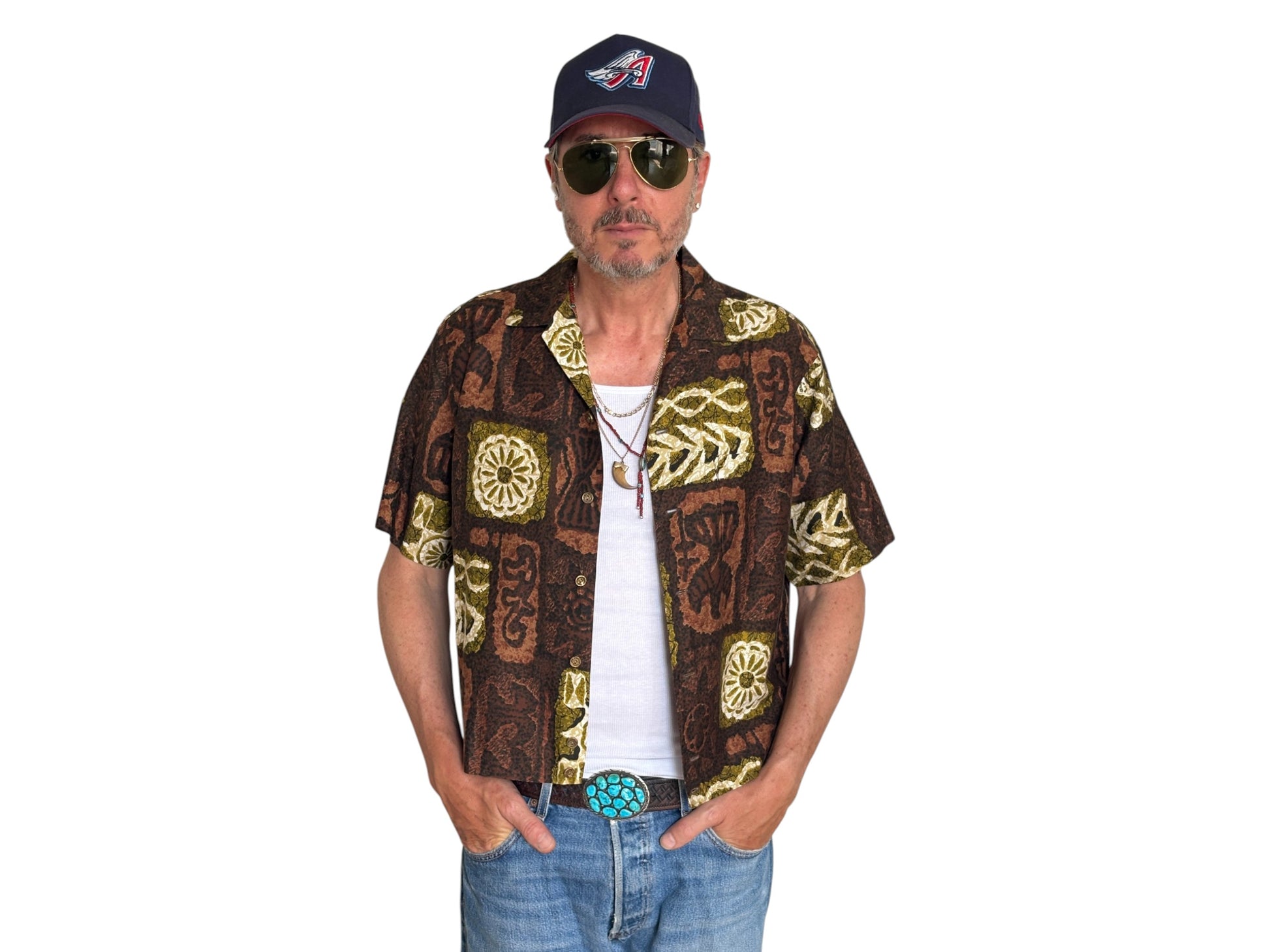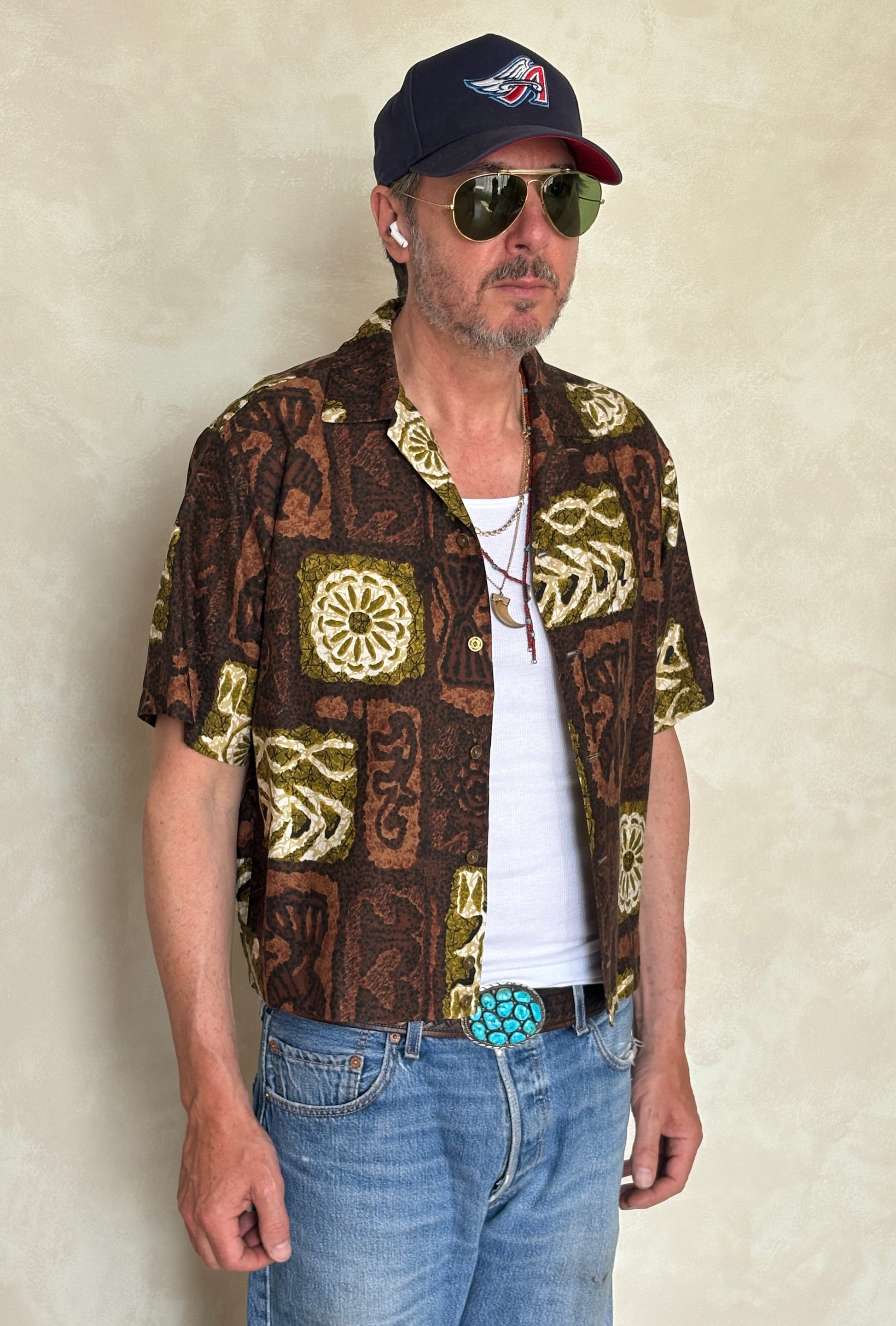 Large . Vintage 60s Hawaiian satin cotton shirt Made in Hawaii