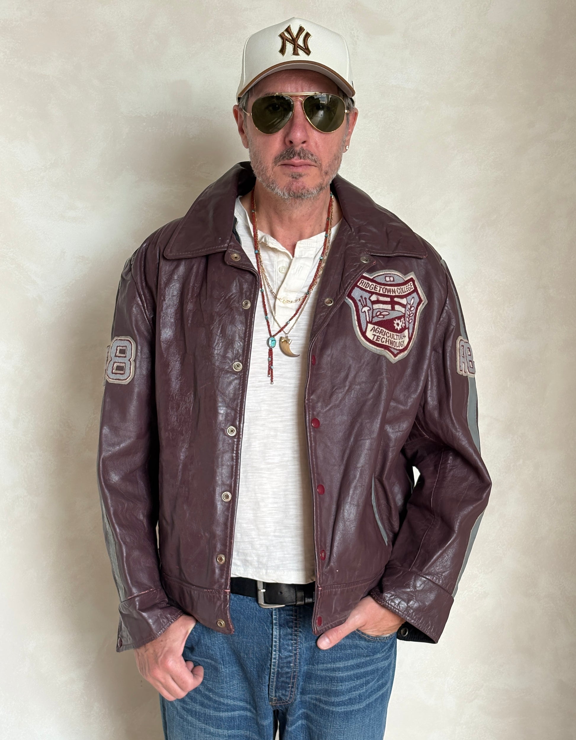 This vintage leather hockey jacket captures the true spirit of Canadian craftsmanship. Made in Canada from soft, genuine leather, it embodies authentic quality, timeless style, and the heritage of classic hockey culture.