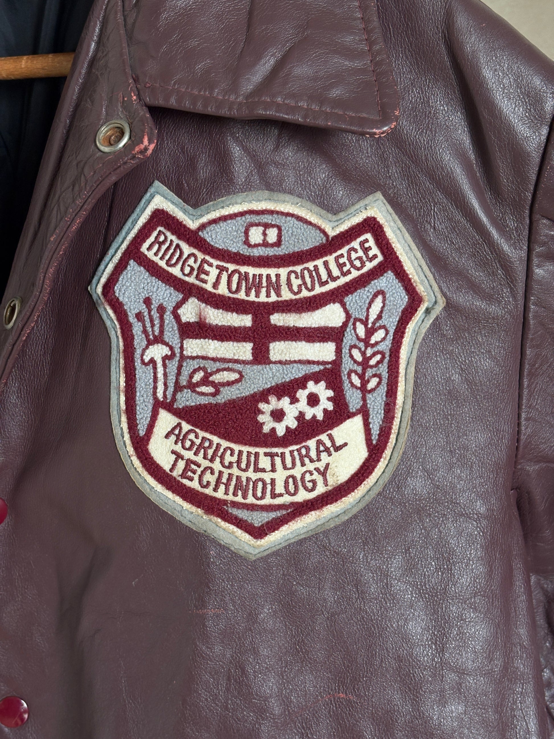 Size XL. Vintage 90s Varsity Leather Jacket – Canadian Made – College Style – Soft Leather –