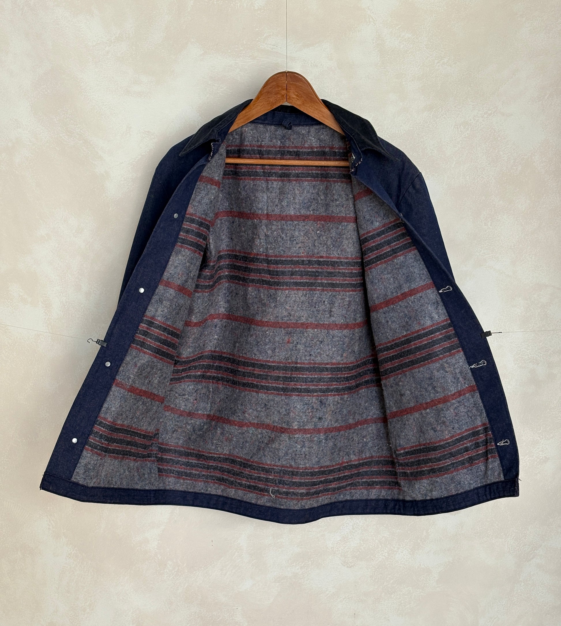 👉 Description: Vintage Denim Chore Jacket – Lined –