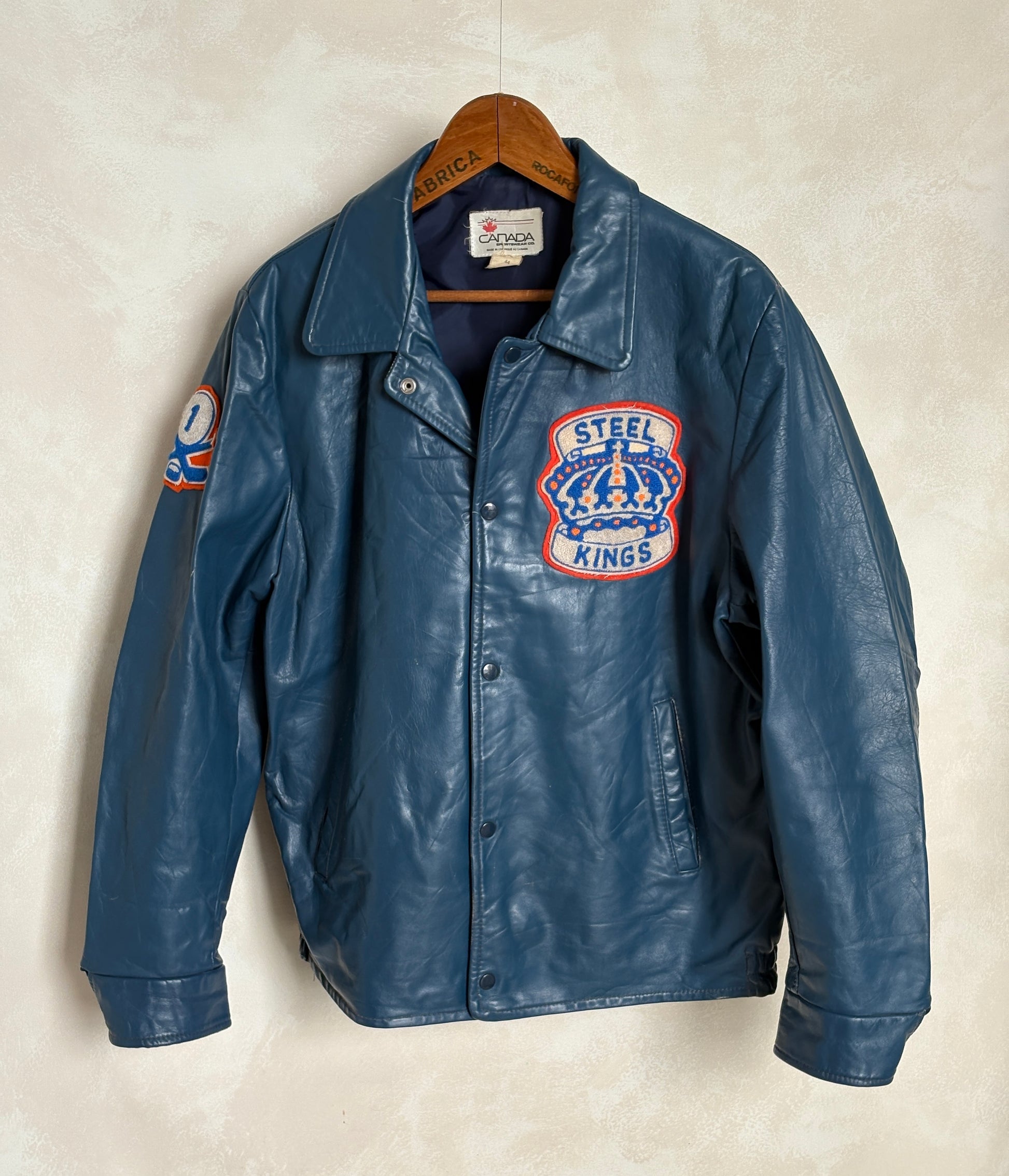 This vintage leather hockey jacket captures the true spirit of Canadian craftsmanship. Made in Canada from soft, genuine leather, it embodies authentic quality, timeless style, and the heritage of classic hockey culture.