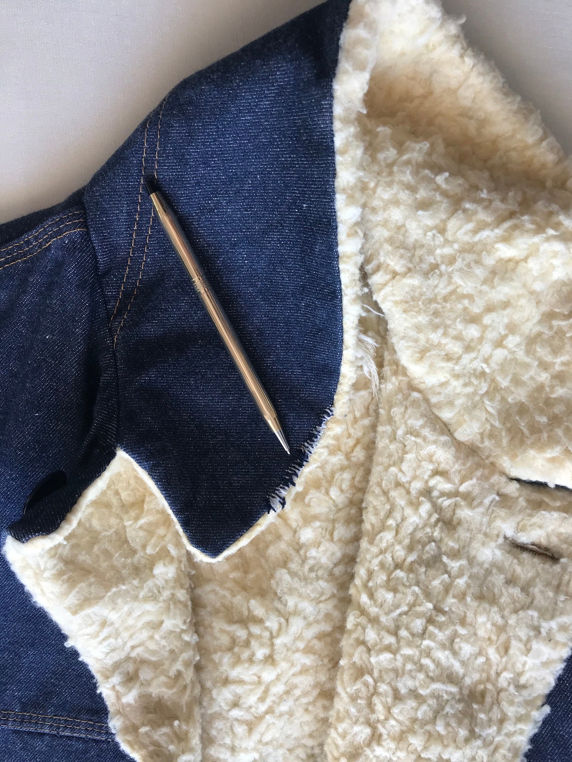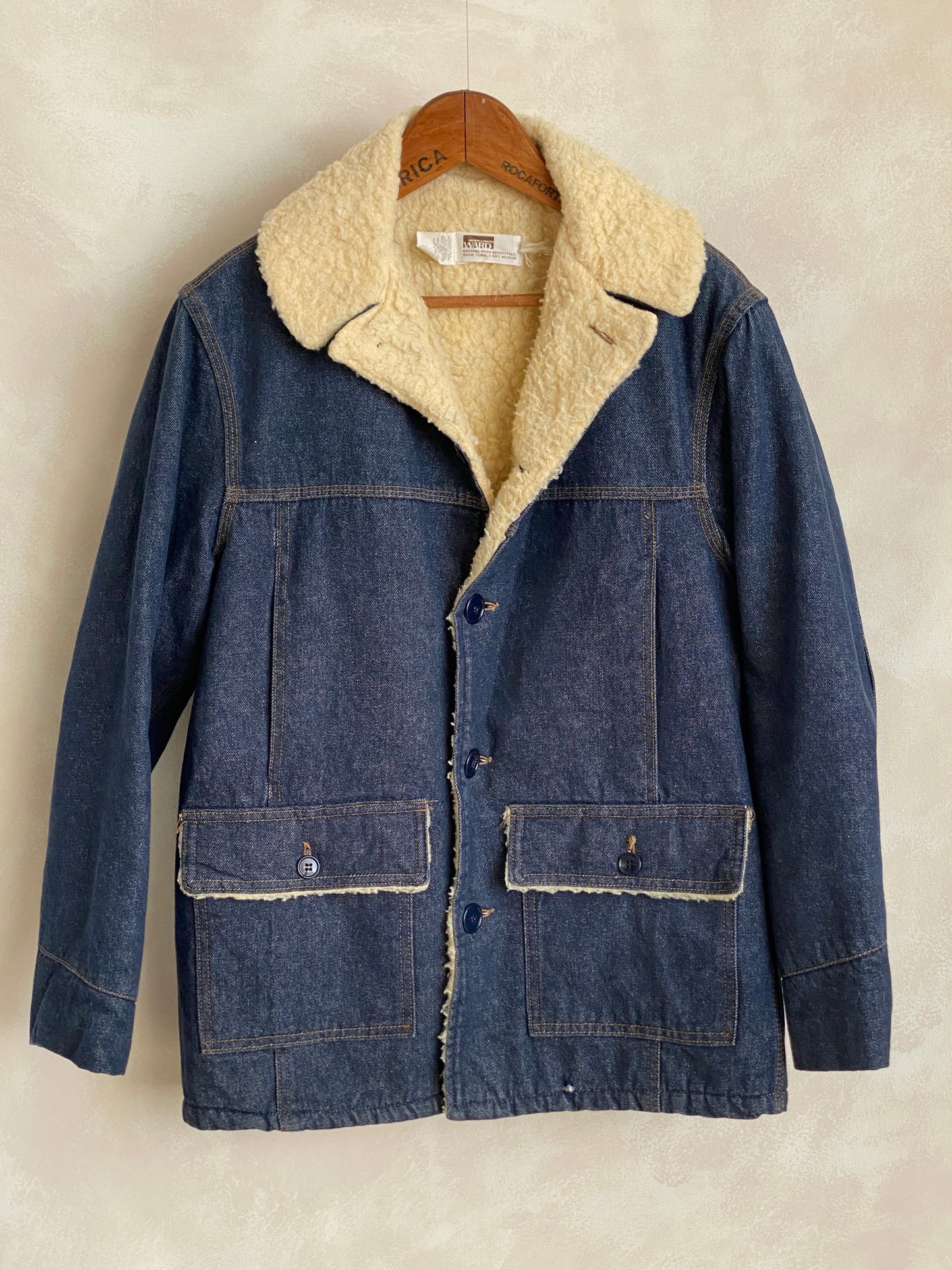 Description: Great Vintage 70s Montgomery Ward faux sherpa lined denim jacket, in a great vintage condition, Ready to wear.