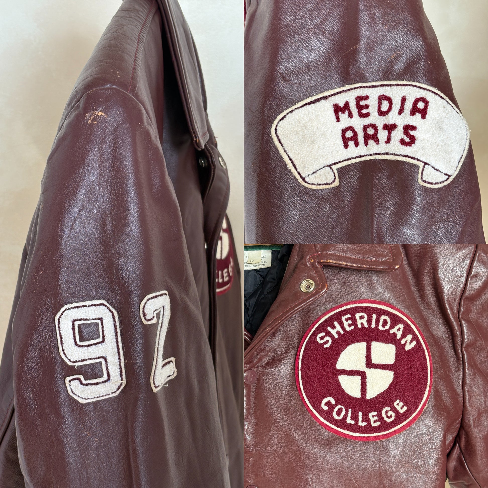 Size 44US / 54EU Vintage Varsity Leather Jacket – Canadian Made – College Style